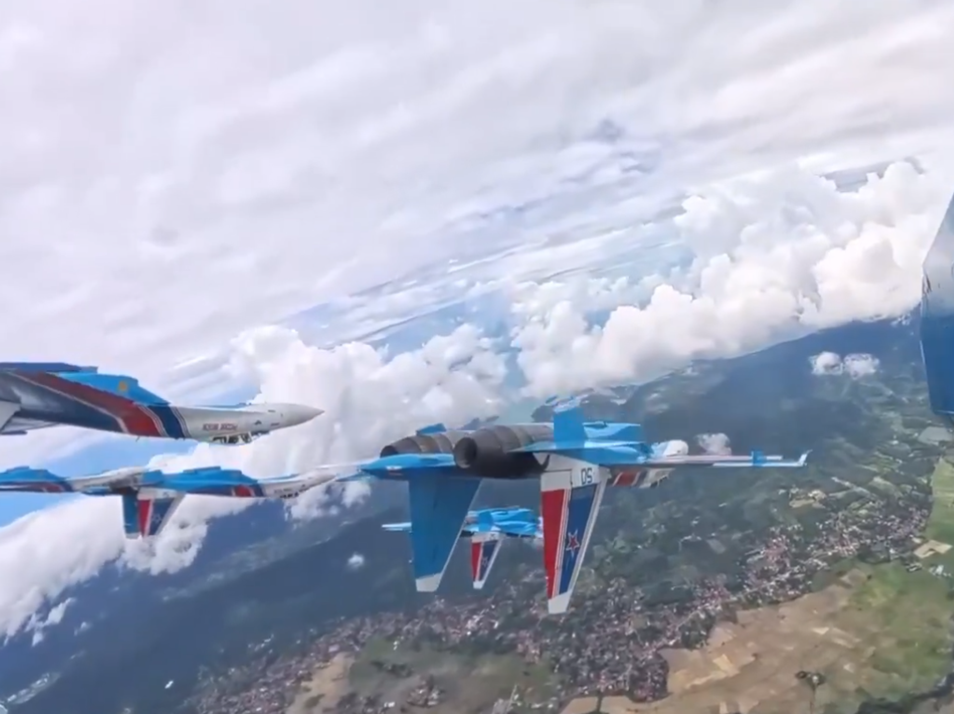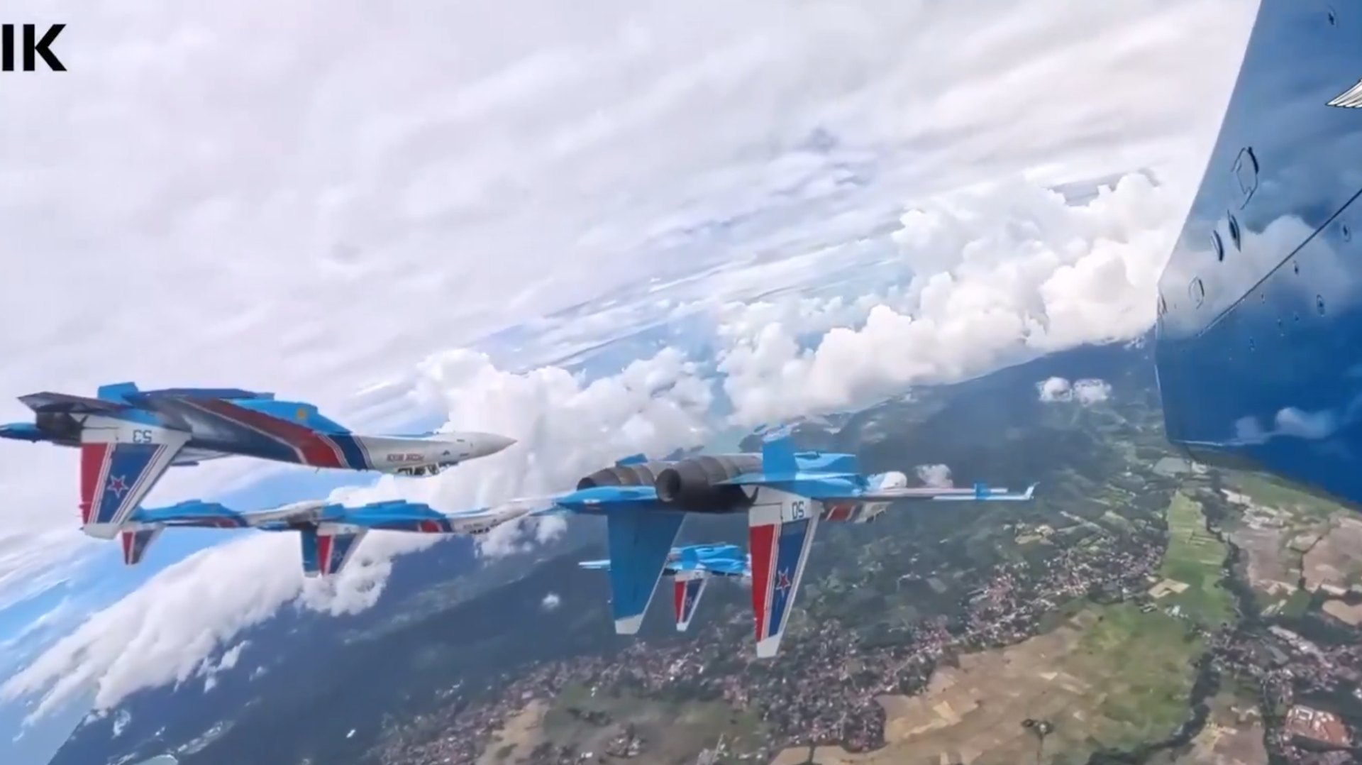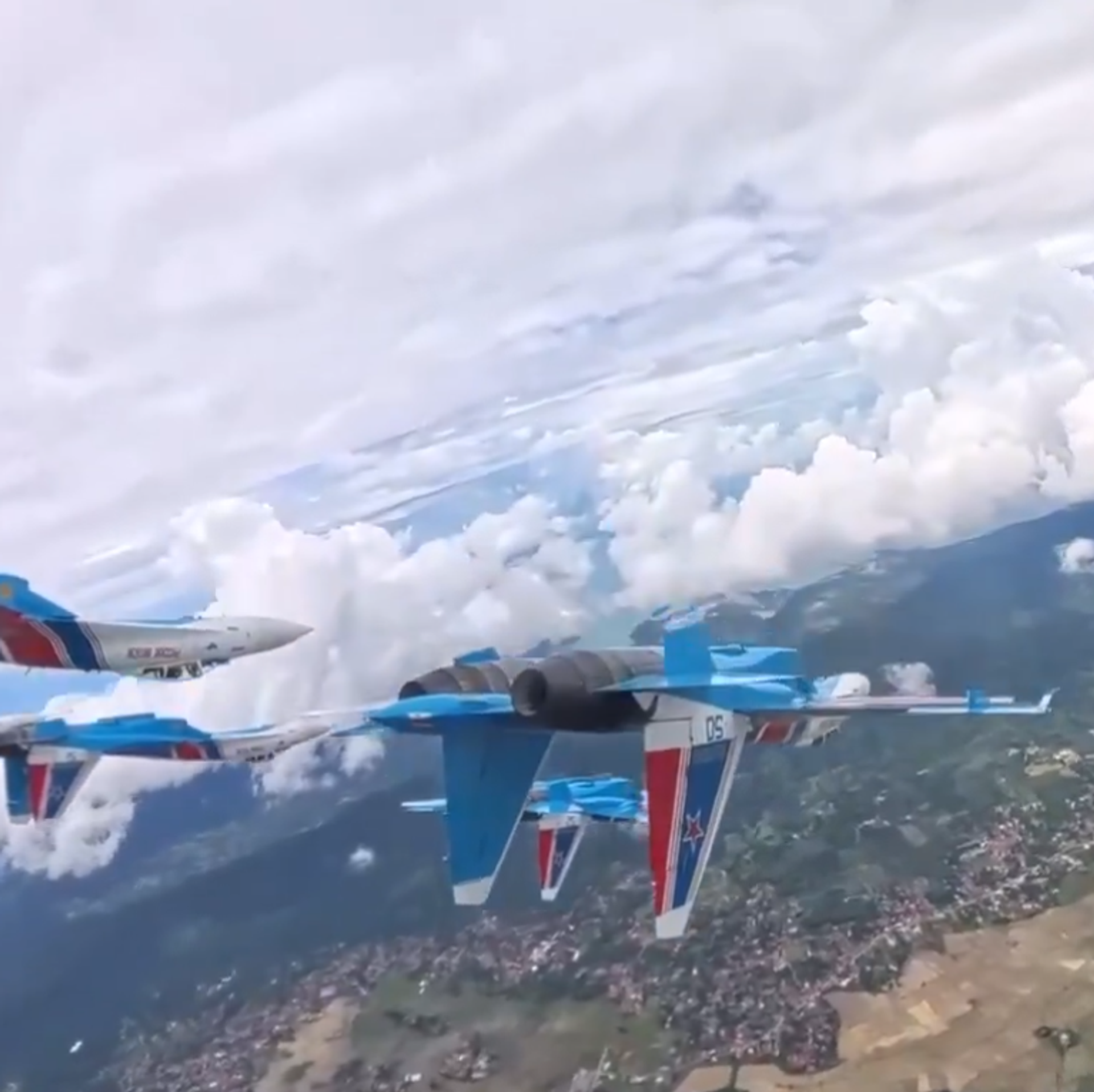 ويظهر في الفيديو كيف قام الطيارون بمناورات بهلوانية جماعية مثل حلقة "نيستيروف"، والتدحرج البرميلي، والانعطاف، بالإضافة إلى المناورات البهلوانية المزدوجة والفردية والمواجهة.