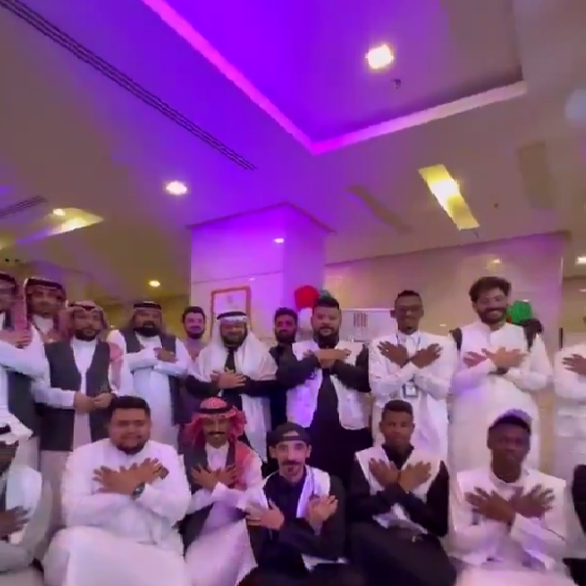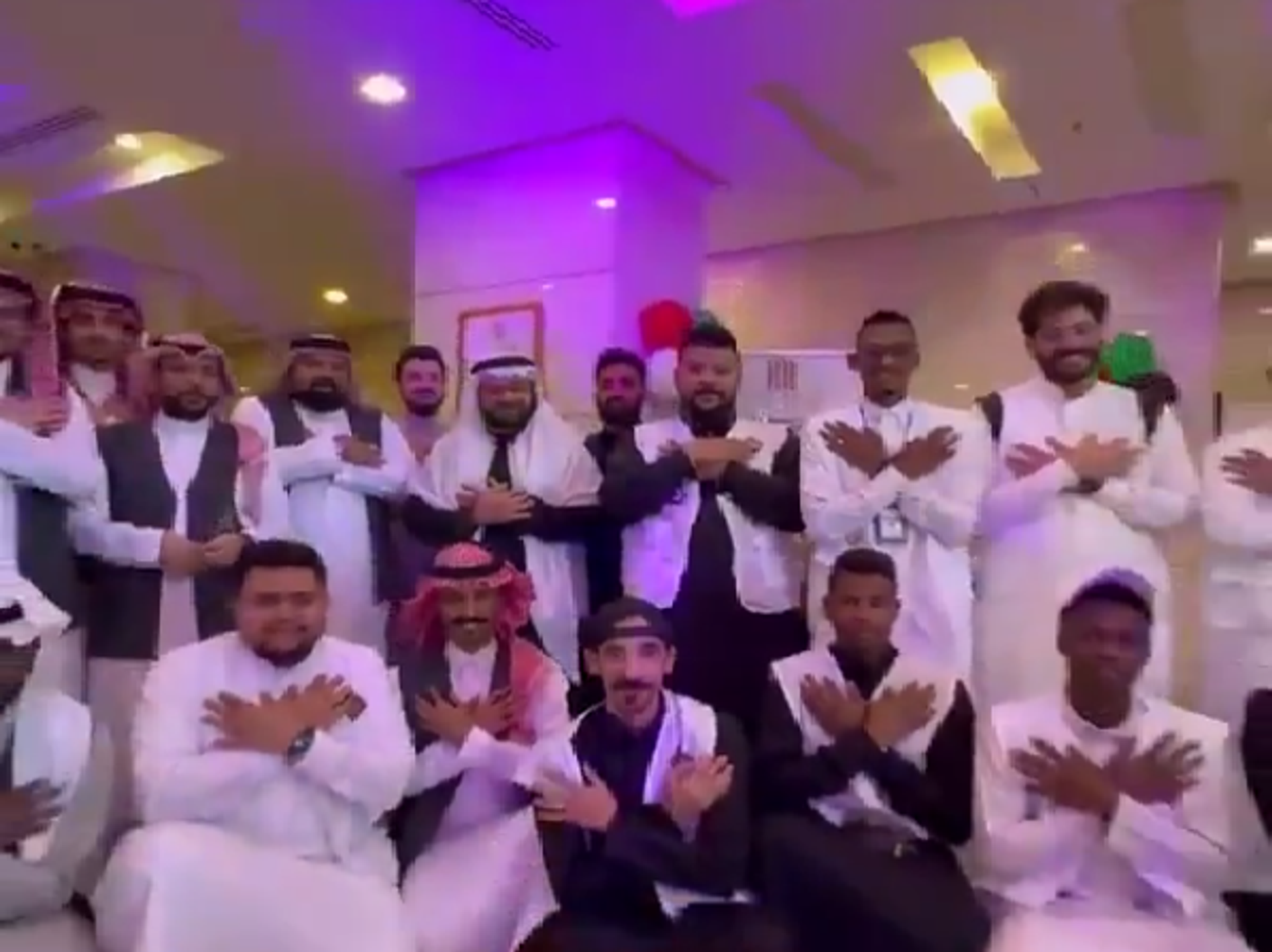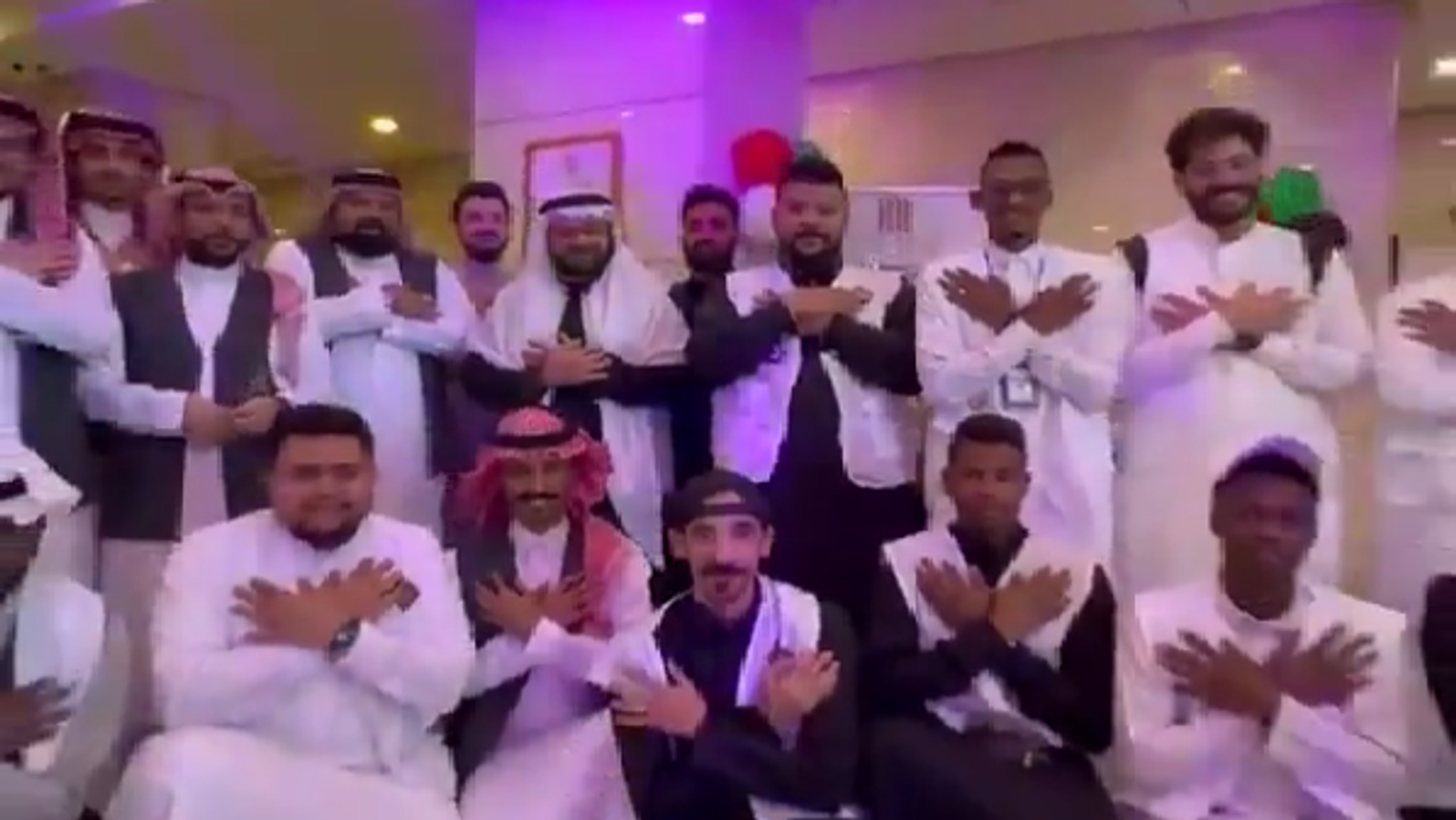 وظهر السعوديون في الفيديو المتداول واضعين أيديهم على صدورهم فور وصول أولى رحلات الحجاج القادمين من سوريا إلى مطار الملك عبد العزيز الدولي في جدة، حيث استقبلوهم بالأهازيج والورود.