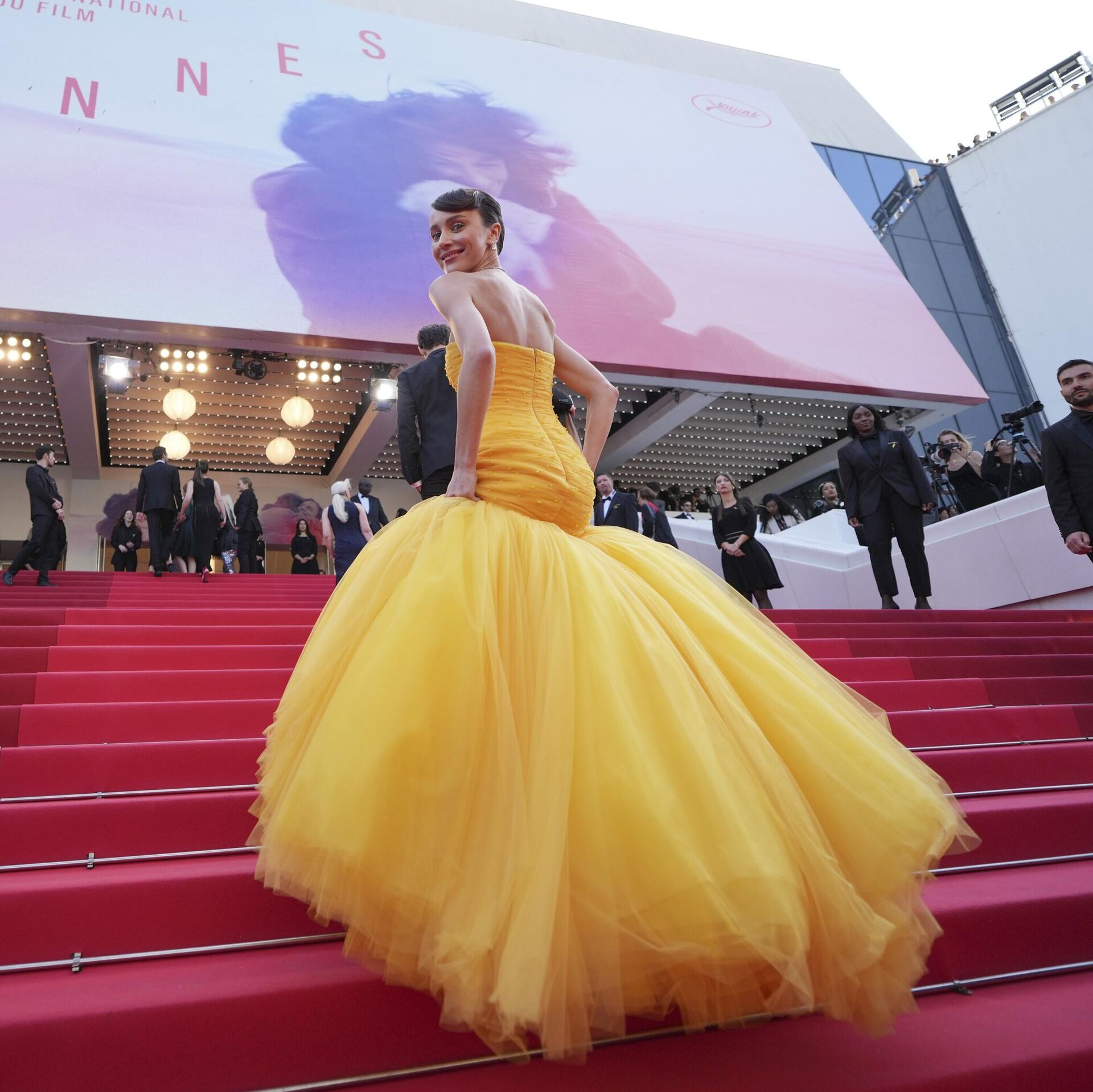 الممثلة ماري ليست تقف أمام المصورين عند وصولها إلى العرض الأول لفيلم "المخطط الفينيقي" في مهرجان كان السينمائي الدولي 78، فرنسا. - سبوتنيك عربي