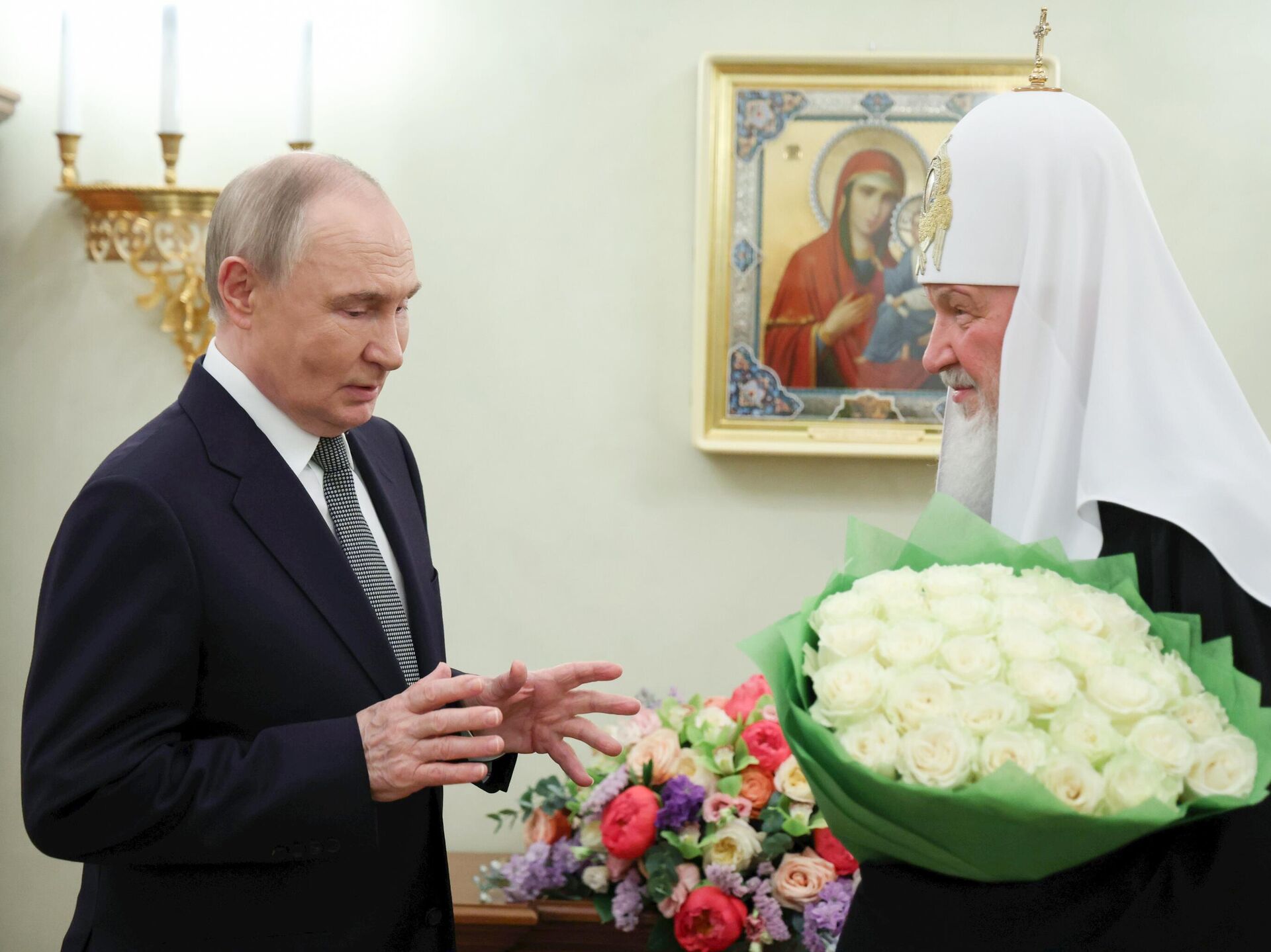 وتابع: "لكن في ظل هذه الظروف، فإن الحفاظ على الثقافة الروسية واللغة الروسية له أهمية خاصة، ومساهمتكم في هذا العمل لا تقدر بثمن بالطبع (مخاطبا البطريرك كيريل)".