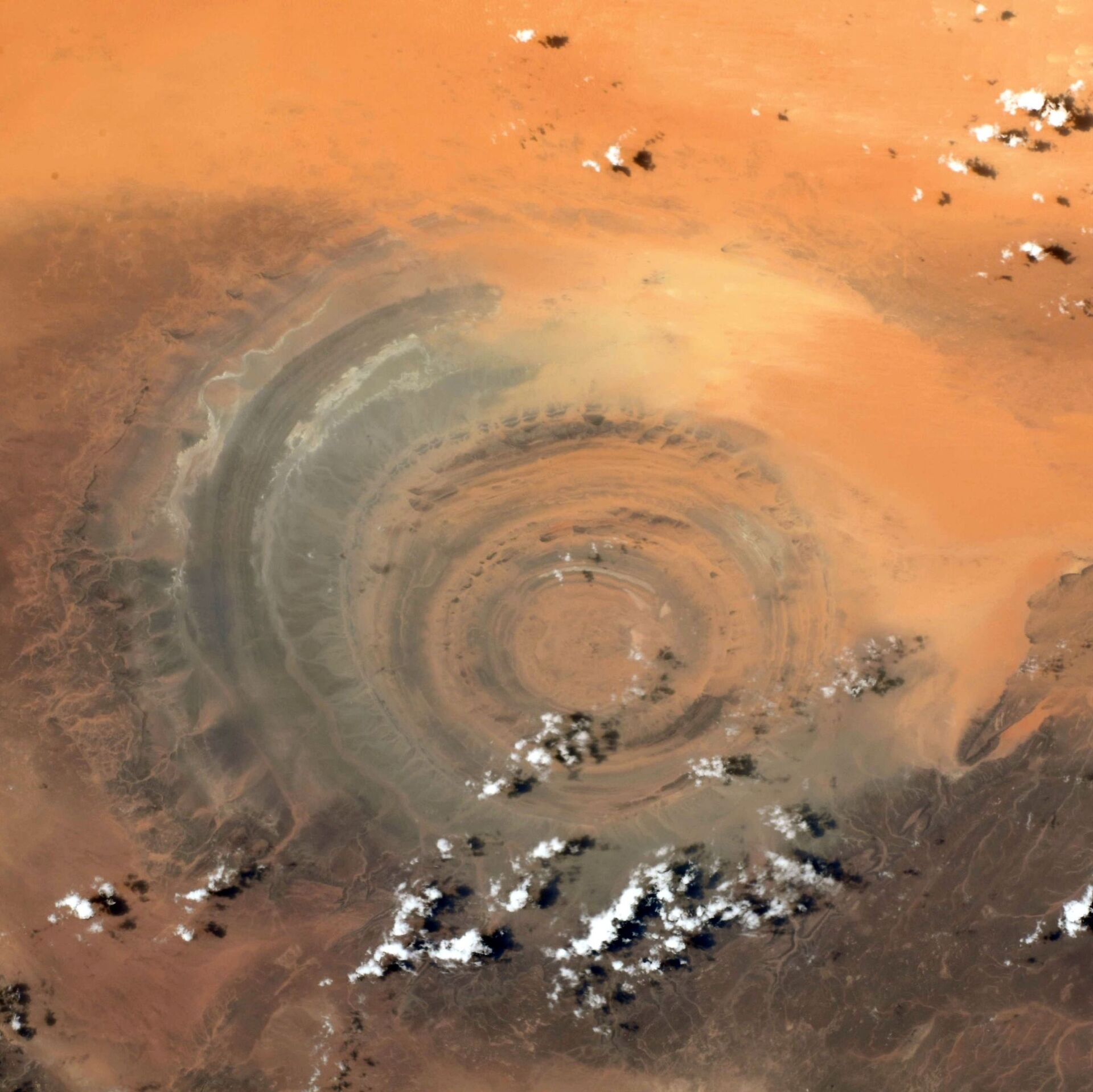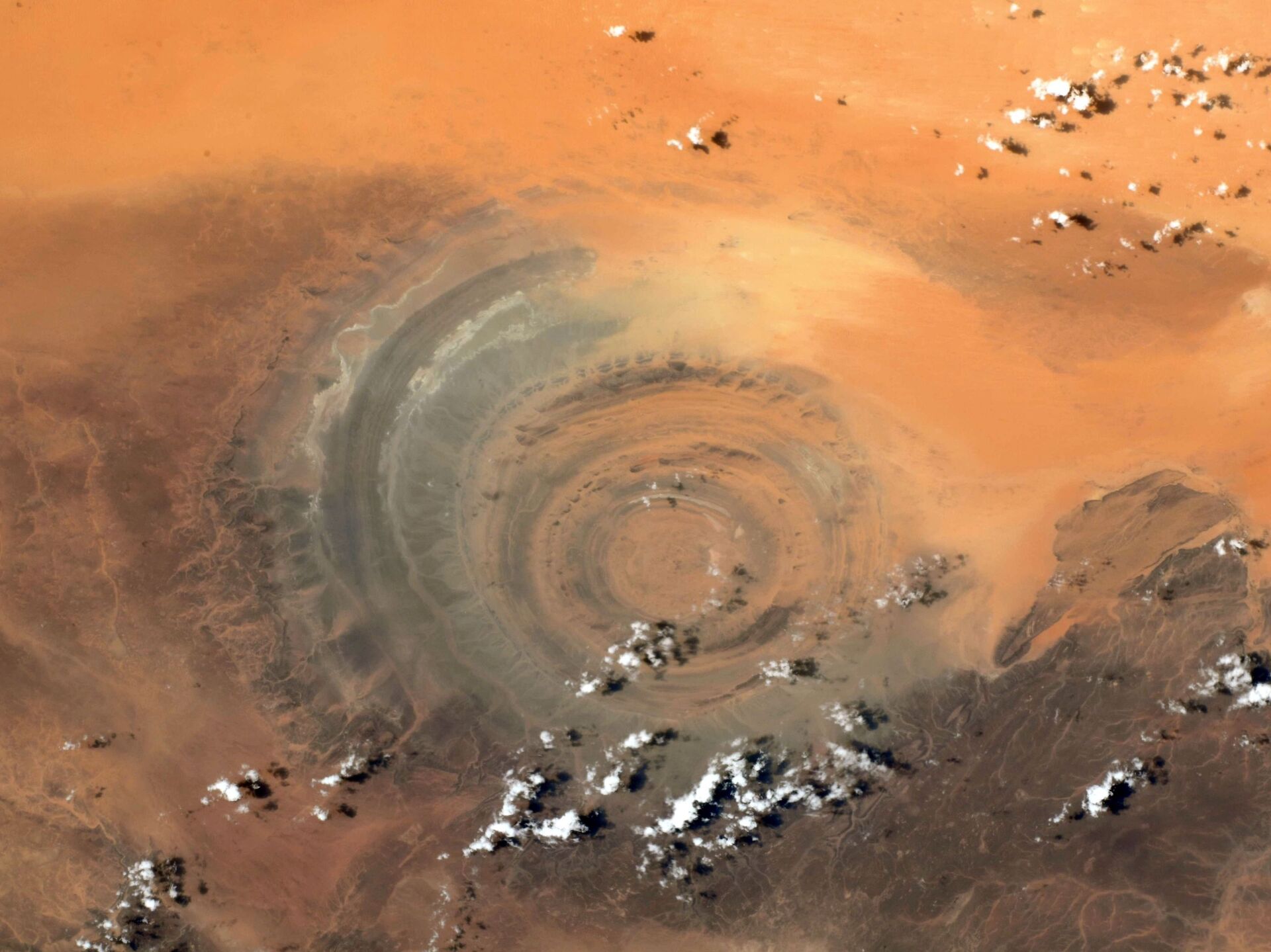 © Photo / Twitter account of Thomas Pesquetصورة لتكوين الريشات (أو عين الصحراء) من أبرز المعالم الجيولوجية في موريتانيا، التقطها رائد فضاء وكالة الفضاء الأوروبية ​توماس بيسكيه