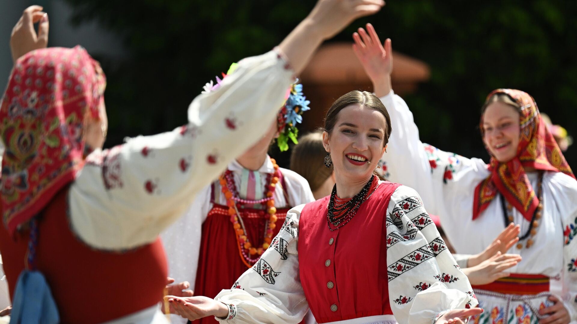 فتيات مشاركات في المهرجان يرقصن وهن يرتدين الأزياء التقليدية. - سبوتنيك عربي