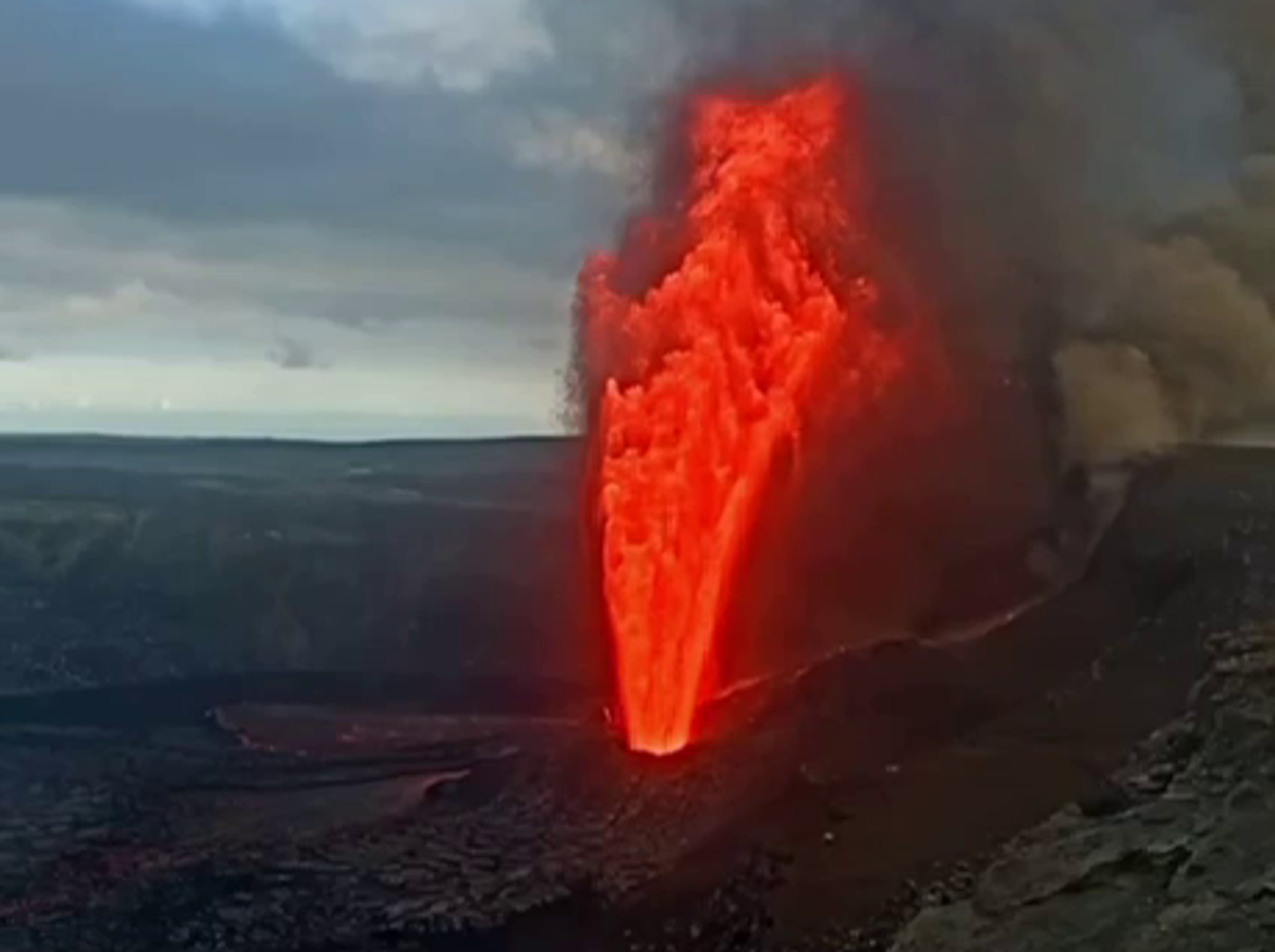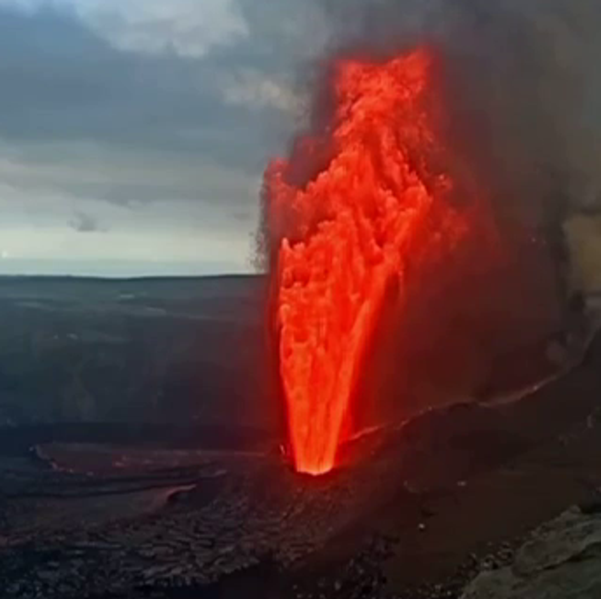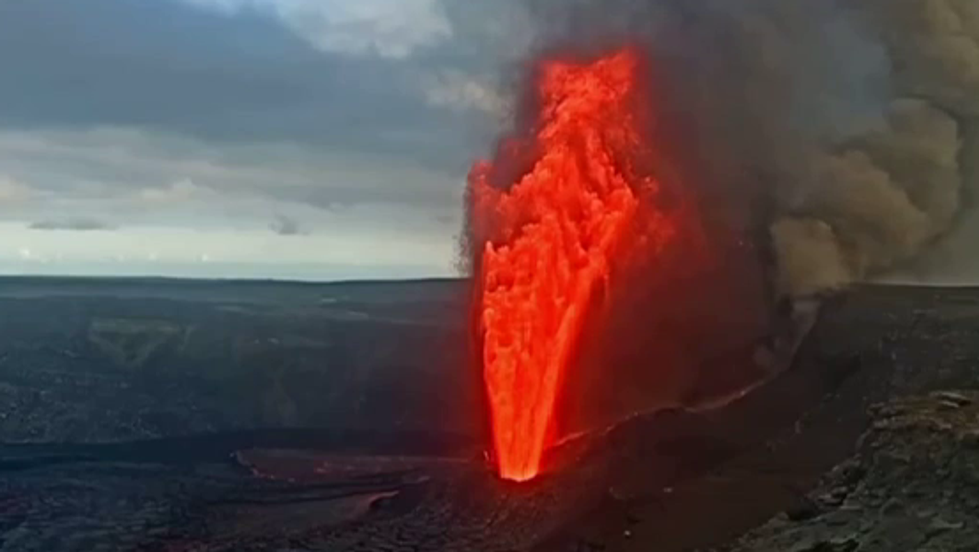 انتشر على مواقع التواصل الاجتماعي مقطع فيديو لثوران بركان في هاواي وهو يطلق نافورة من الحمم البركانية وصلت إلى 300 متر.