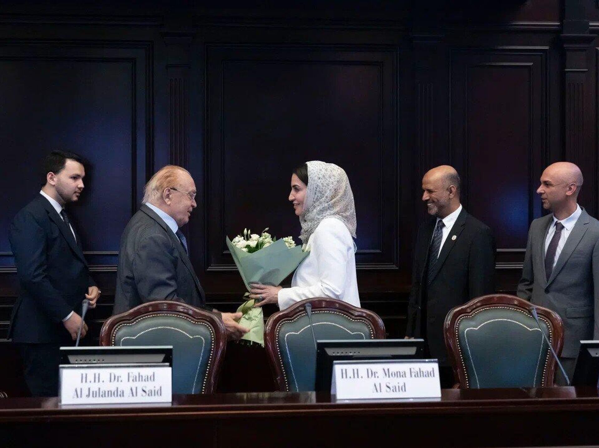 وشاركت في الاجتماع أيضا، ممثلةً عن الأسرة الحاكمة، نائبة رئيس جامعة السلطان قابوس للتعاون الدولي، صاحبة السمو الدكتورة منى بنت فهد آل سعيد.