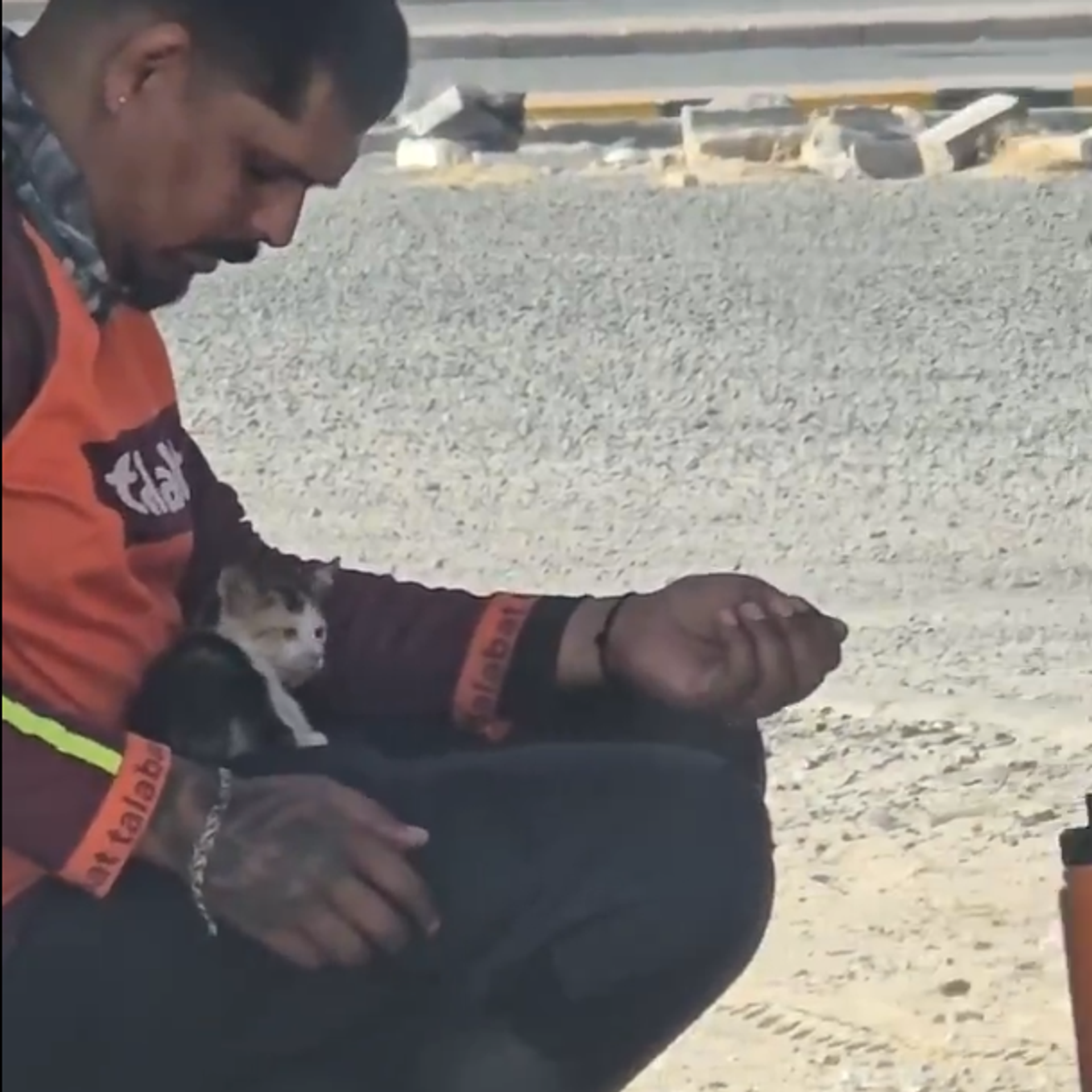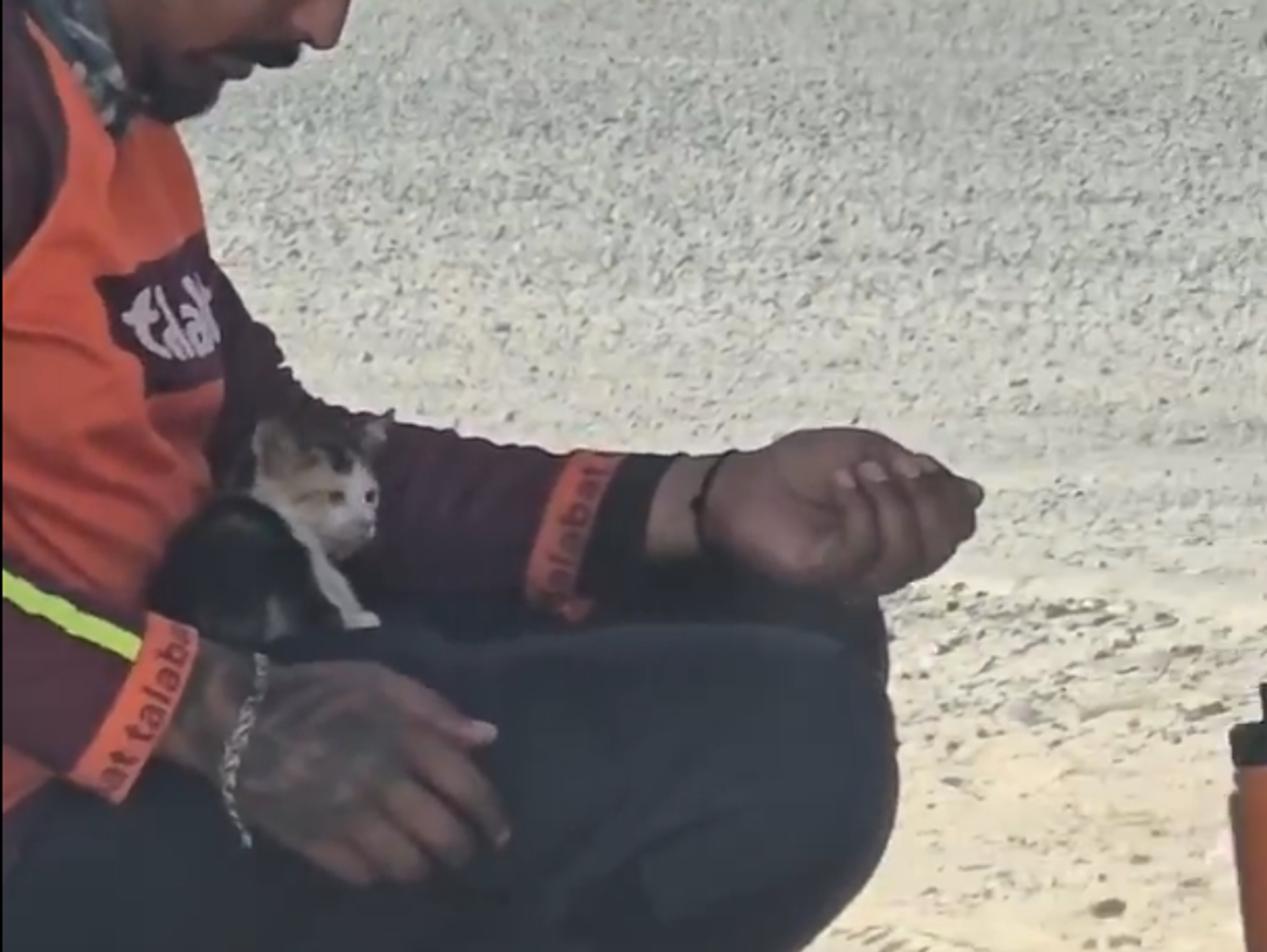 © Photo / xمشهد مؤثر لسائق توصيل ينقذ قطة من العطش الشديد