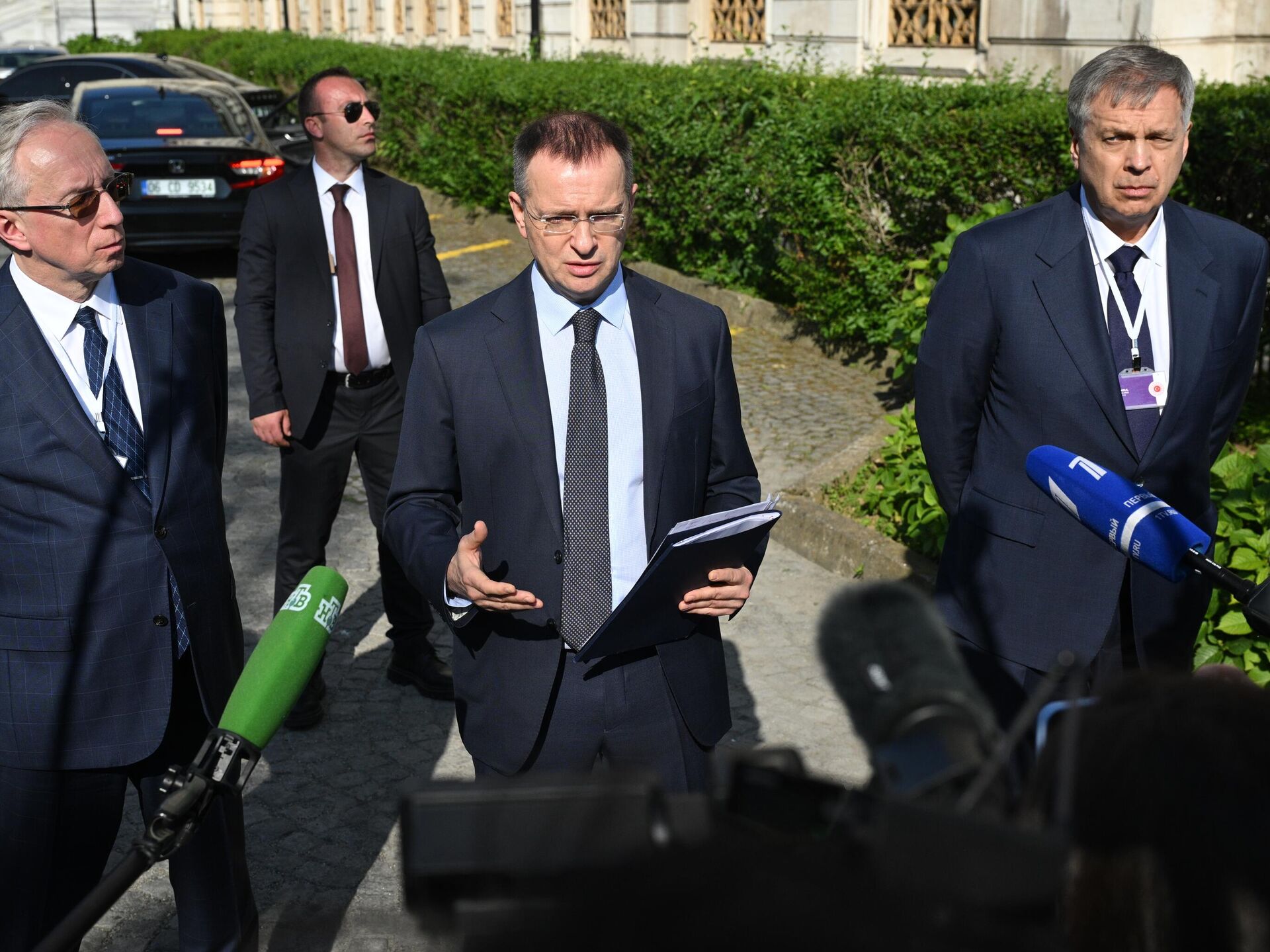 قال ميدينسكي للصحفيين عقب انتهاء الجولة الثانية من المفاوضات الروسية الأوكرانية في إسطنبول: "لقد قدمنا مذكرة التفاهم الروسية إلى الجانب التركي. المذكرة مفصلة للغاية، وقد أعددناها من جانبنا، لذا قرر الجانب الأوكراني دراستها. سيدرسونها، وسيردون عليها، وسنرى".