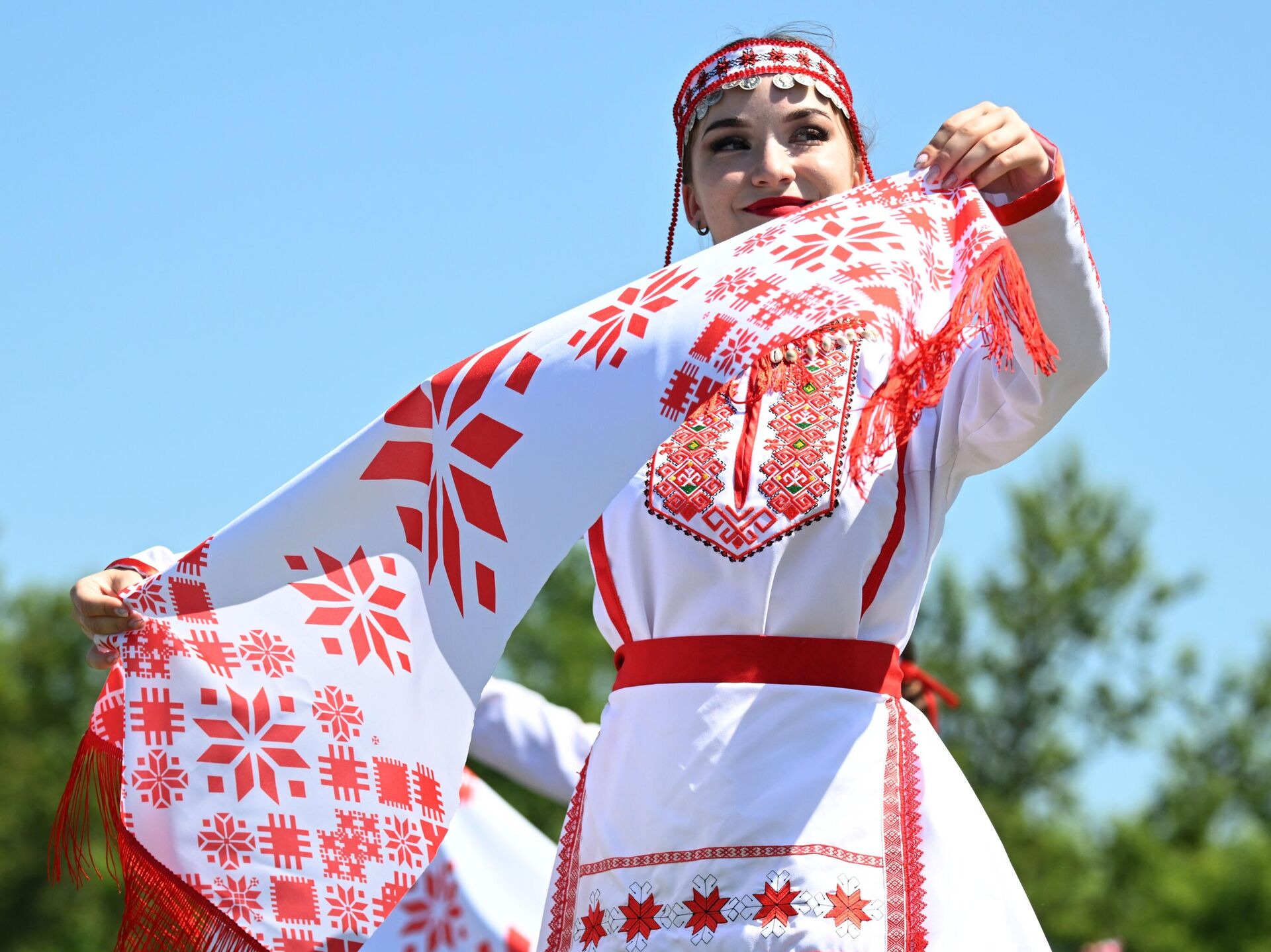 فتاة تؤدي رقصة تراثية خلال احتفالات مهرجان الثقافة "ماري سيميك" في قرية بوتشينوك كوتشوك، في تتارستان.
