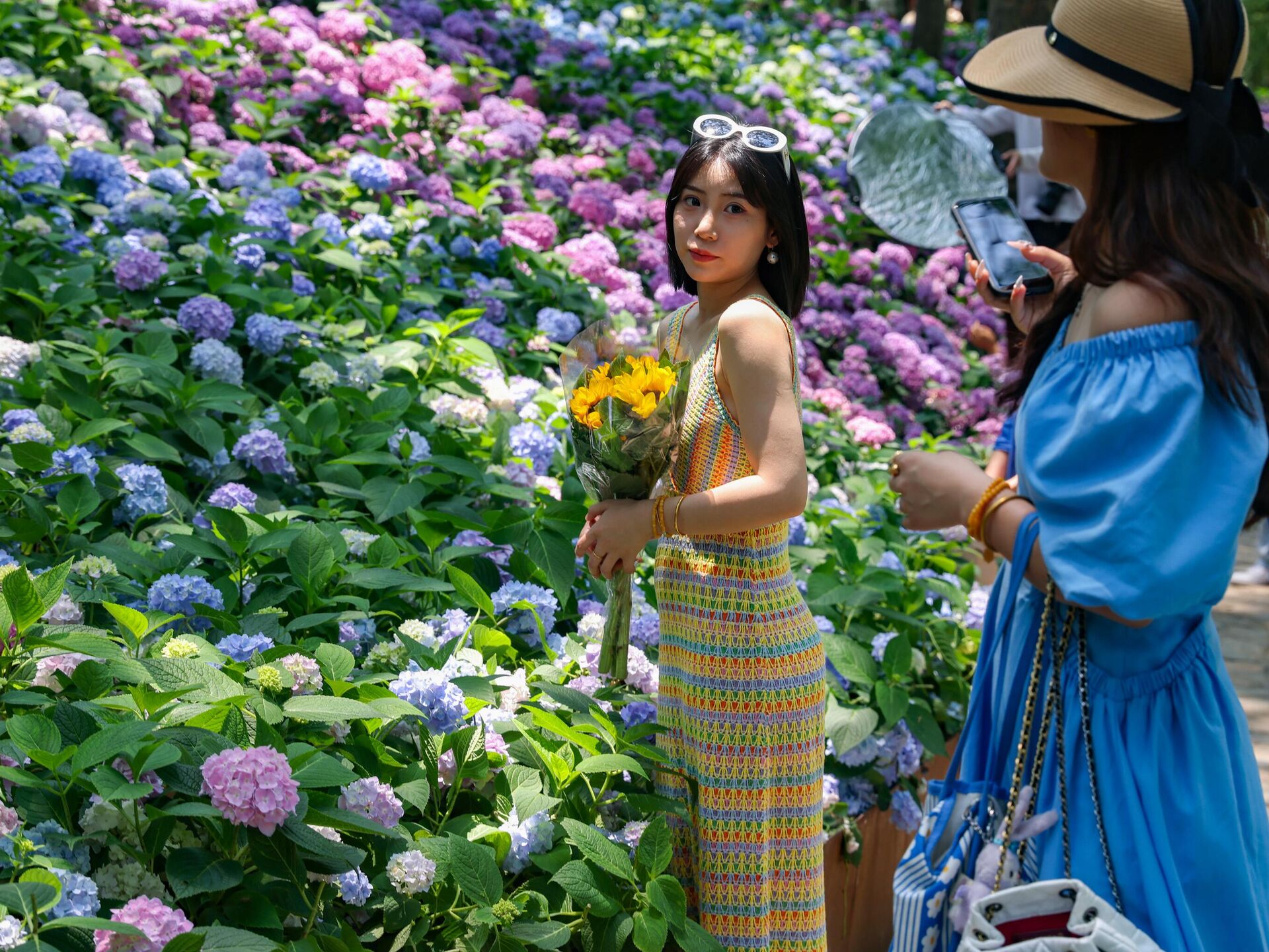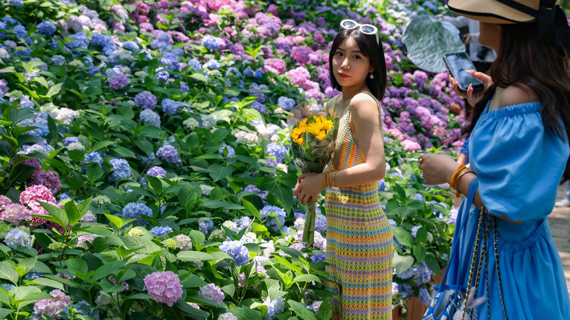 © Getty Images / Yang Bo/China News Service/VCG فتاة تجع باقة من الزهور الكوبية ذات الرائحة العطرة في نانجينغ، مقاطعة جيانغسو، الصين.