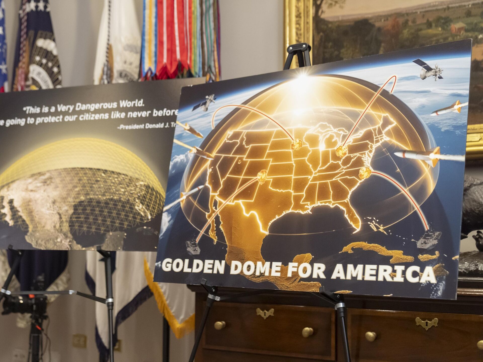 © AP Photoنموذج للقبة الذهبية الصاروخية التي يسعى ترامب لإنشائها