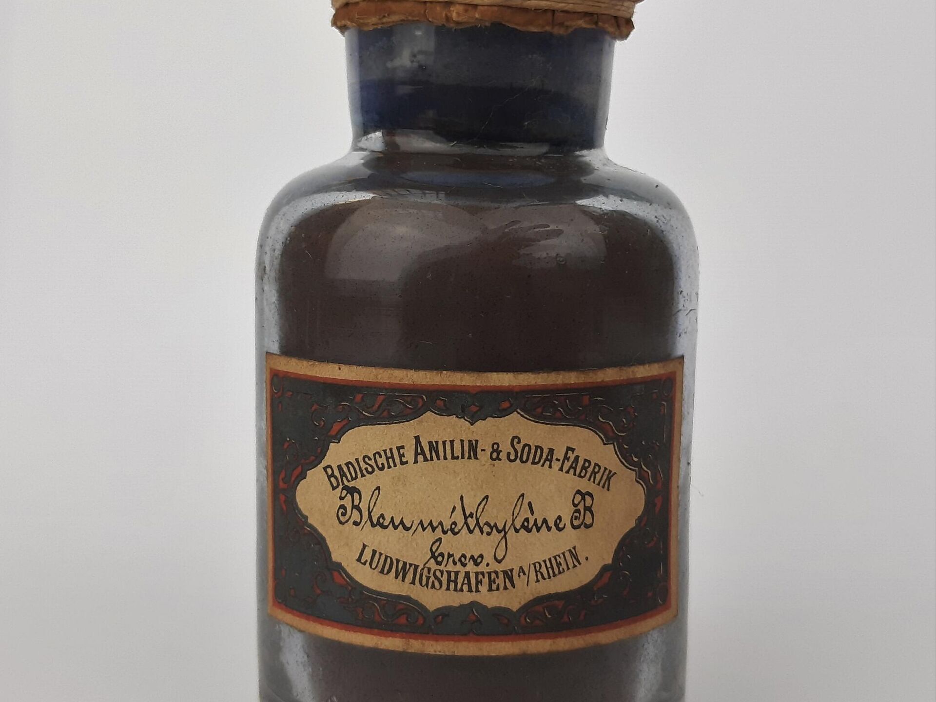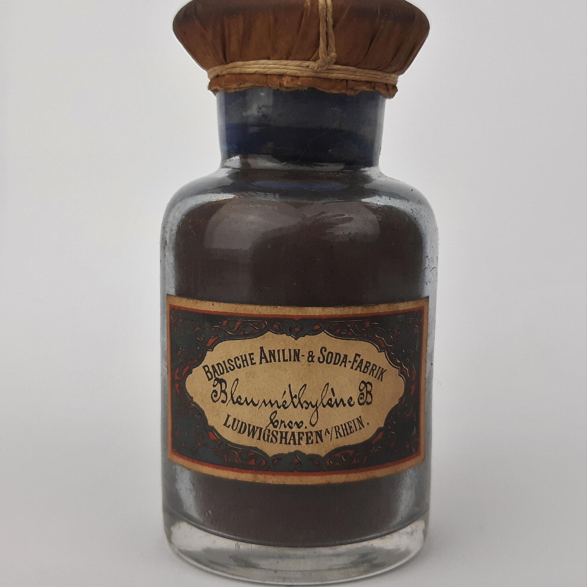 تم تصنيع أزرق الميثيلين لأول مرة عام ١٨٧٦ كصبغة للمنسوجات، وكان يُقدر بلونه الكثيف وقدرته على الالتصاق بالأقمشة. بعد ذلك بوقت قصير، اكتشف الطبيب الألماني بول إيرليخ قدرته على تلطيخ الأنسجة البيولوجية وقتل الطفيلي المسبب للملاريا - مما جعله من أوائل الأدوية الصناعية المستخدمة في الطب.