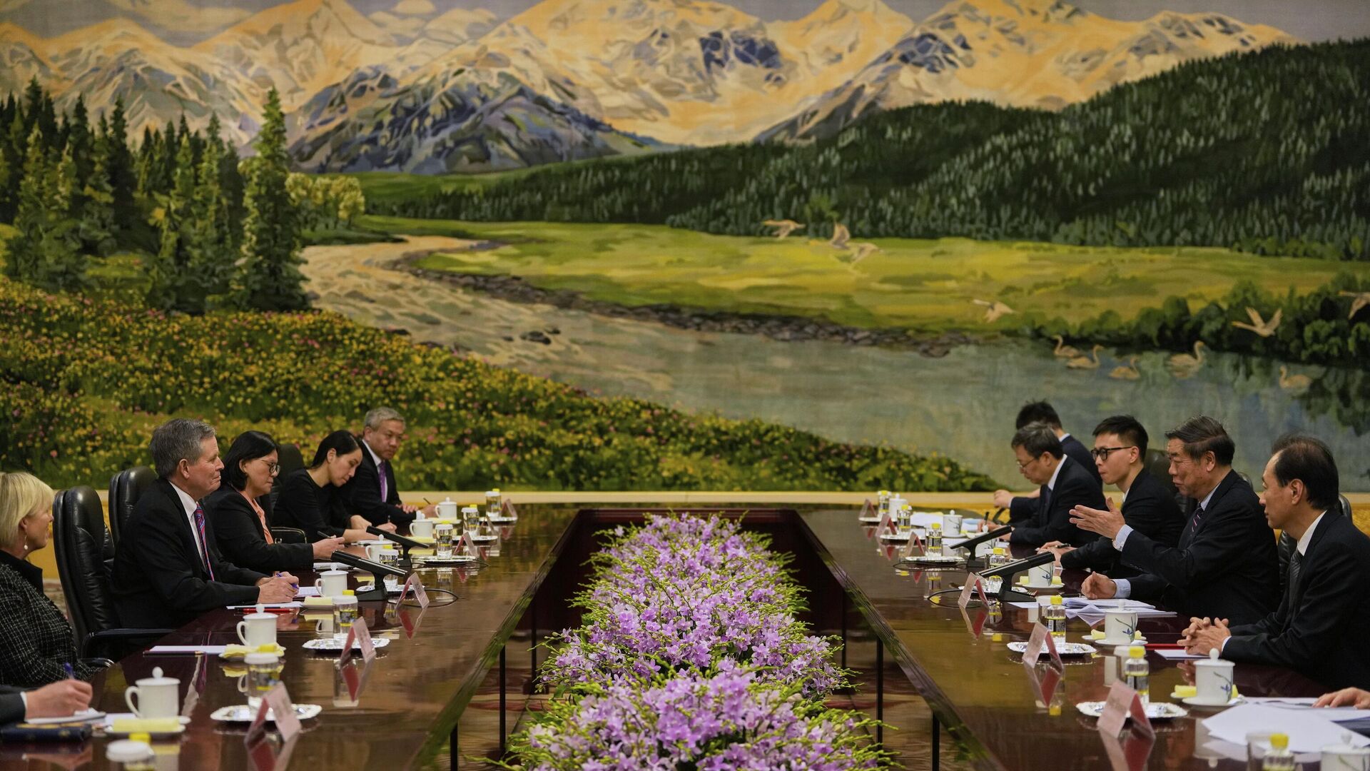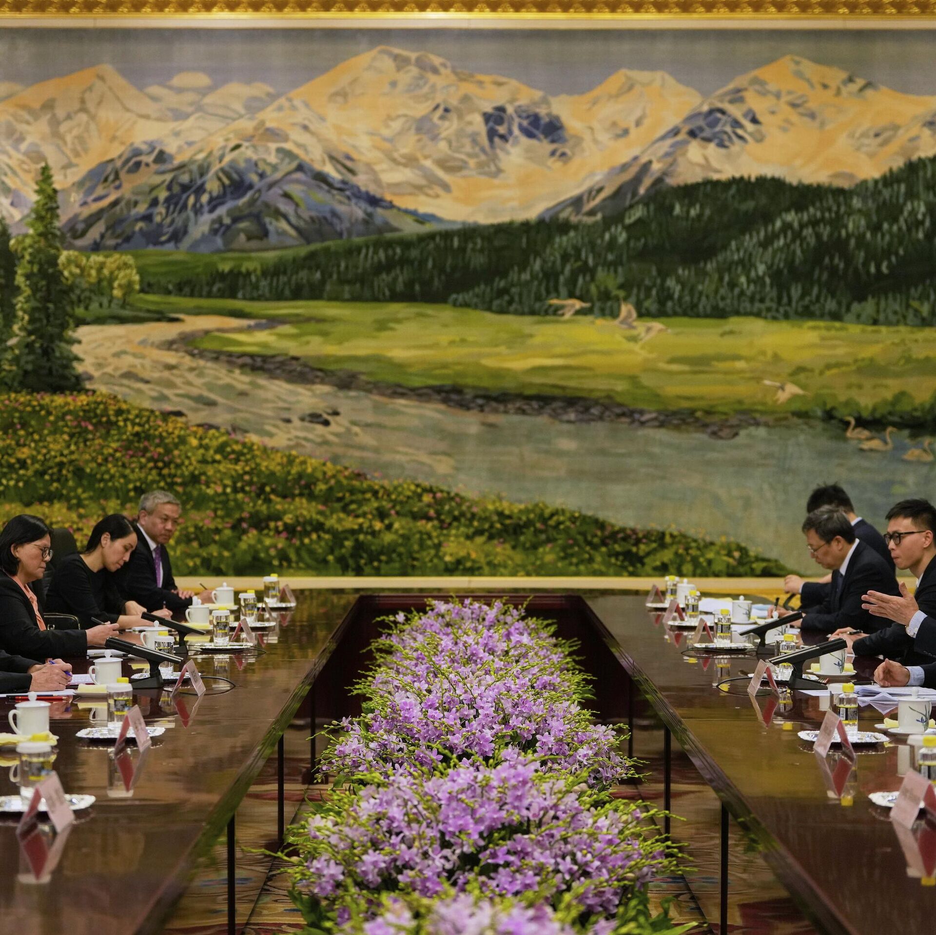 © AP Photo / Ng Han Guanنائب رئيس مجلس الدولة الصيني هي ليفينغ، الثاني من اليمين، يعقد محادثات مع الجانب الأمريكي