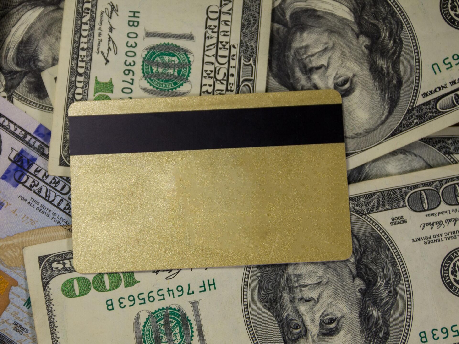© Photo / Muhammad Farhadتصميم بطاقة ذهبية مع علم الولايات المتحدة الأمريكية في الخلفية. شراء الجنسية الأمريكية، الشراء، الهجرة، الخلفية.