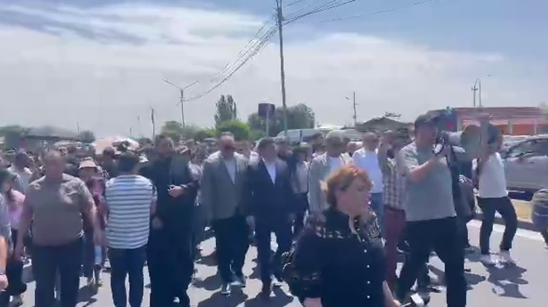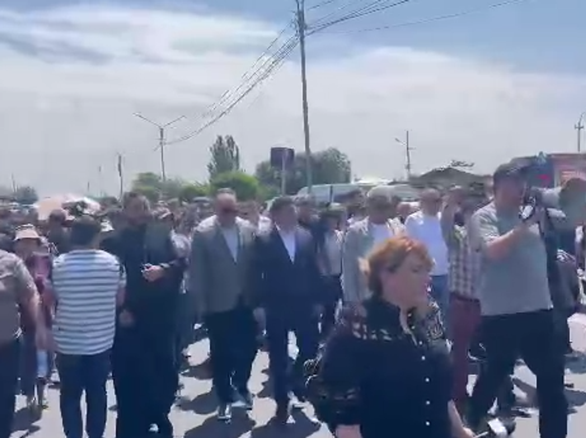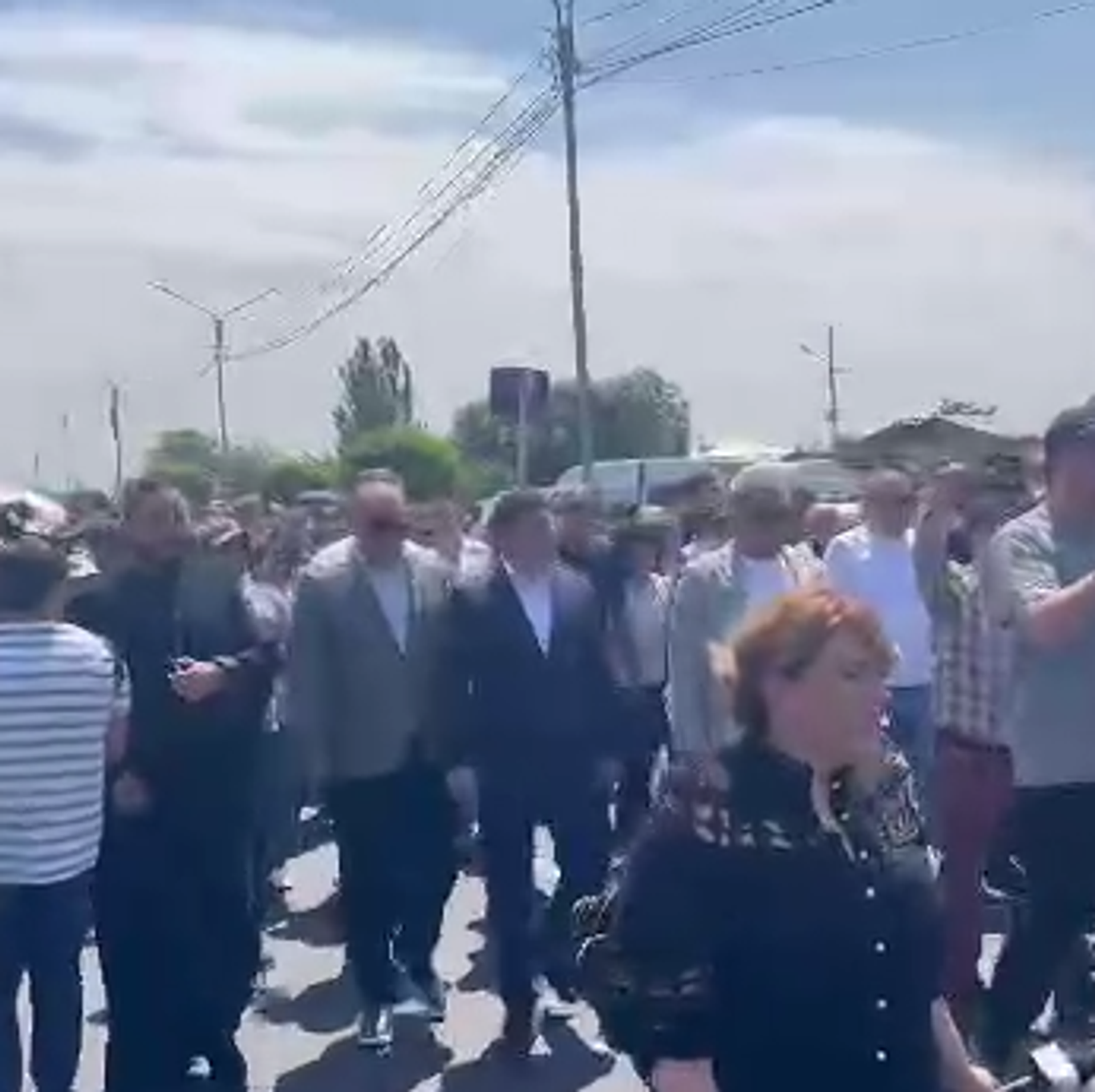 ويحمل بعض المشاركين ملصقات عليها صورة رجل الأعمال والمحسن الأرميني الكبير، سامفيل كارابيتيان، الذي هو قيد الاعتقال.