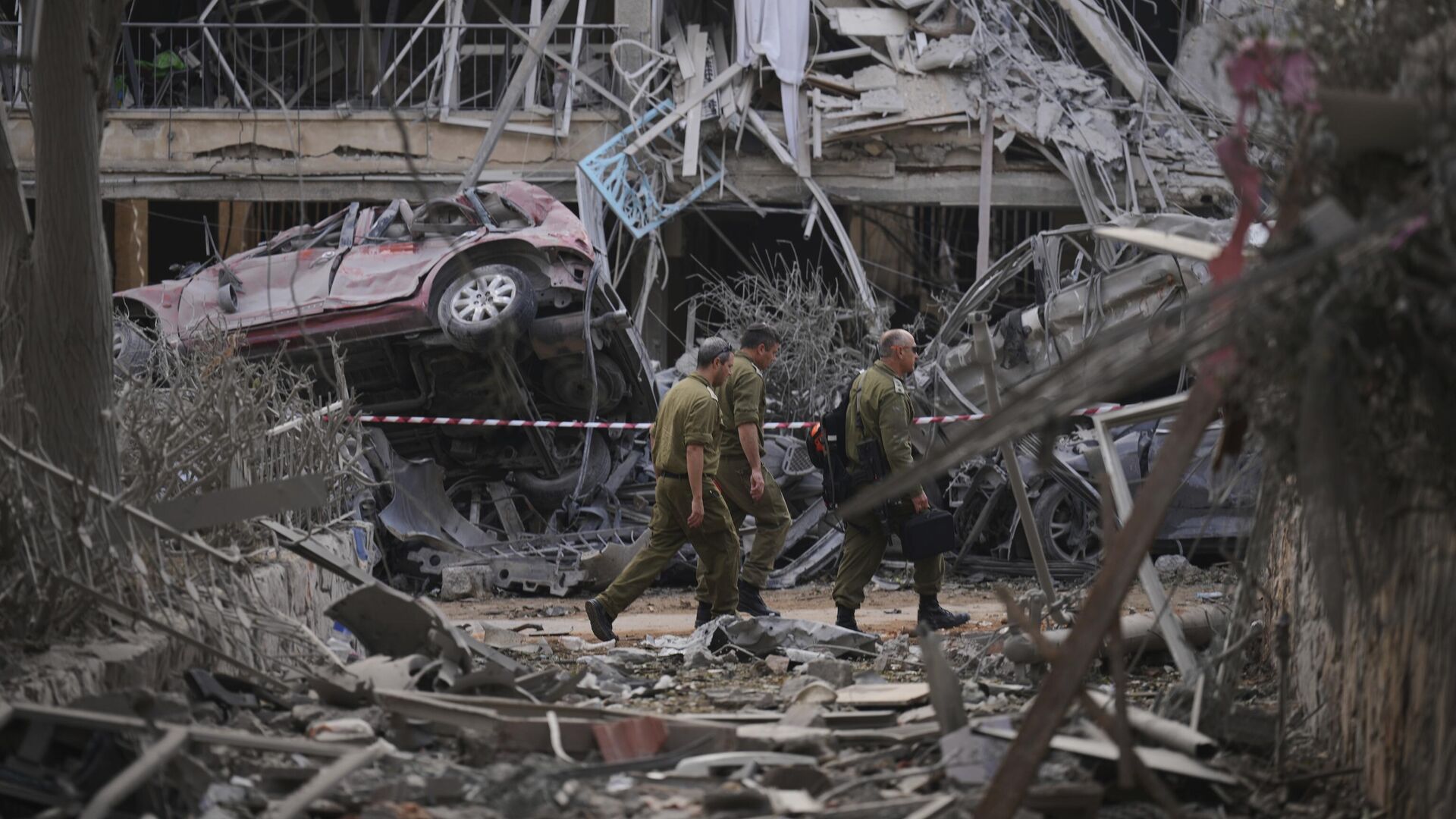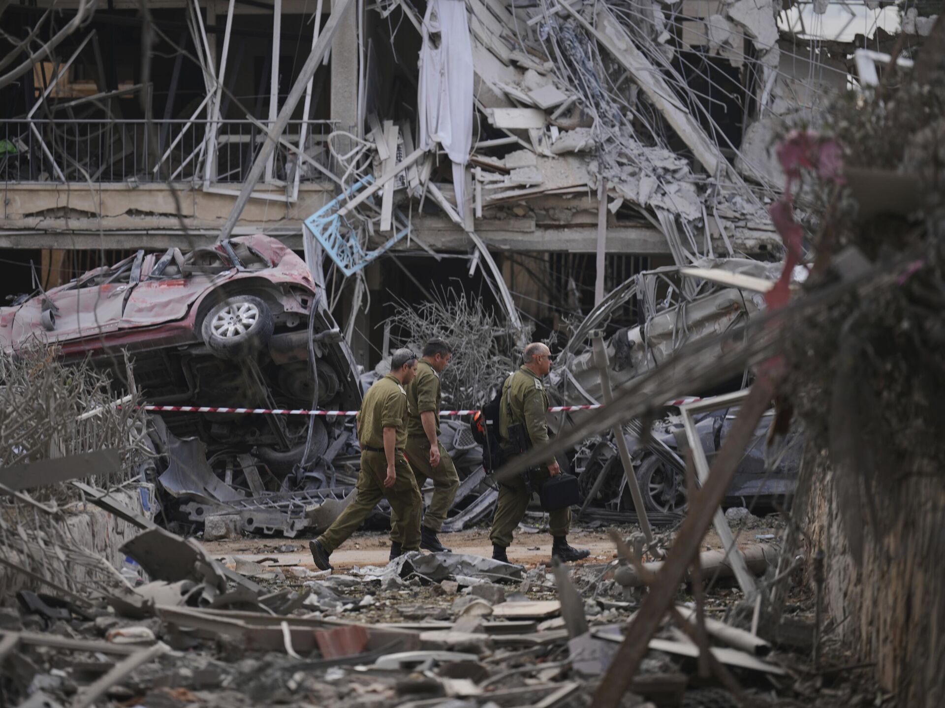 © AP Photo / Ariel Schalitقوات الأمن الإسرائيلية تتفقد المباني السكنية المدمرة التي أصابتها صاروخ أطلق من إيران، في رامات جان، بالقرب من تل أبيب، إسرائيل، يوم السبت 14 يونيو 2025.