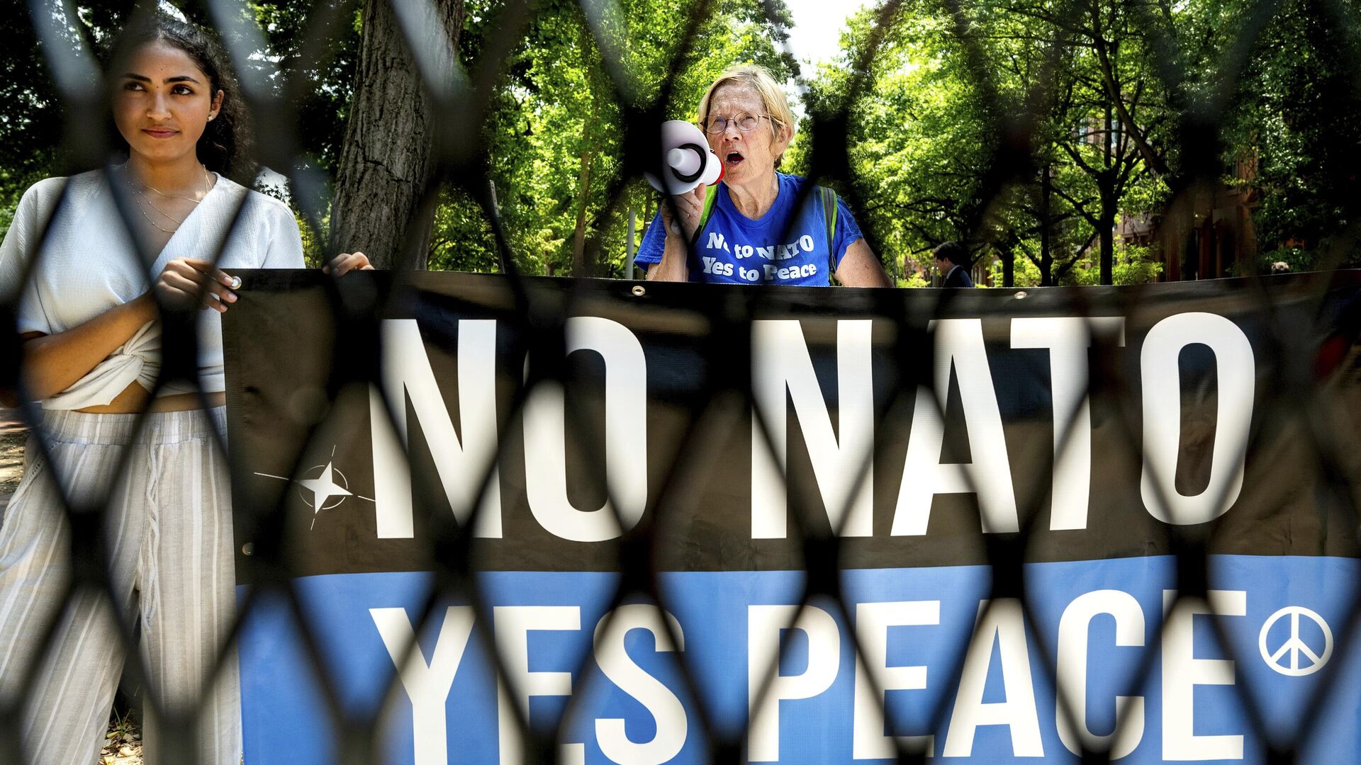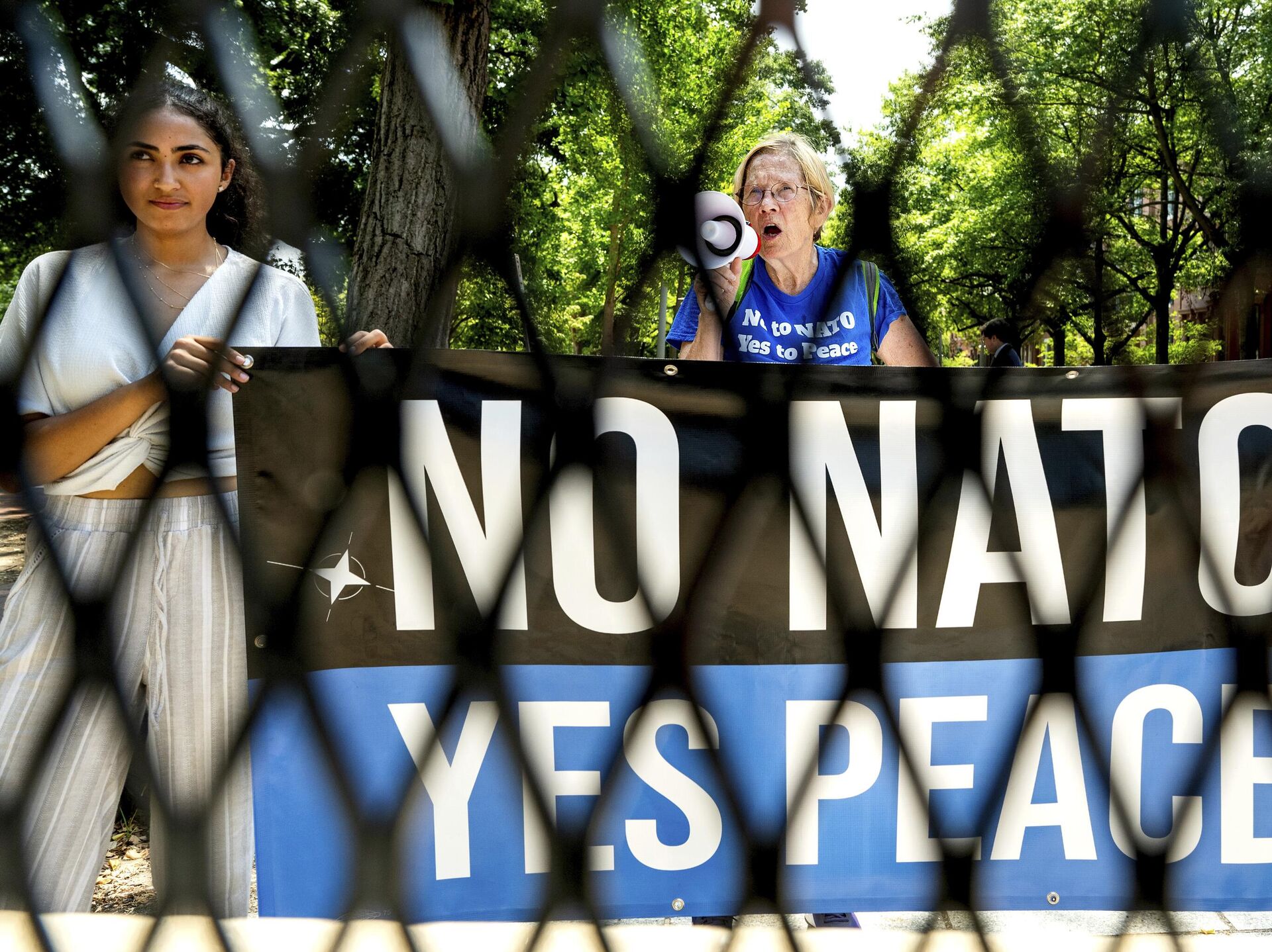 © AP Photo / Noah Bergerاحتجاجات ضد قمة الناتو في واشنطن، الولايات المتحدة الأمريكية 9 يوليو 2024