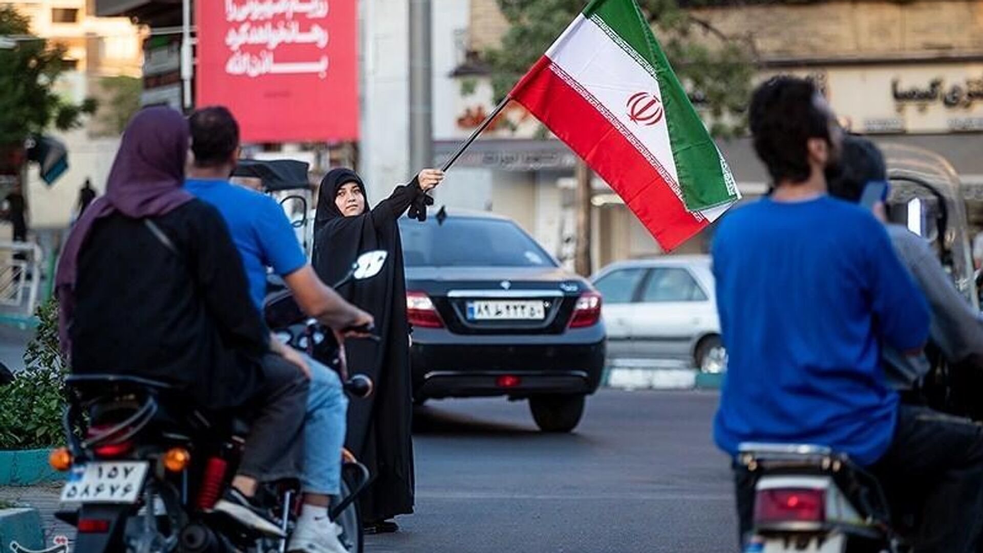 سيدة إيرانية تلوح بعلم إيران وسط الشارع في طهران   - سبوتنيك عربي, 1920, 25.06.2025