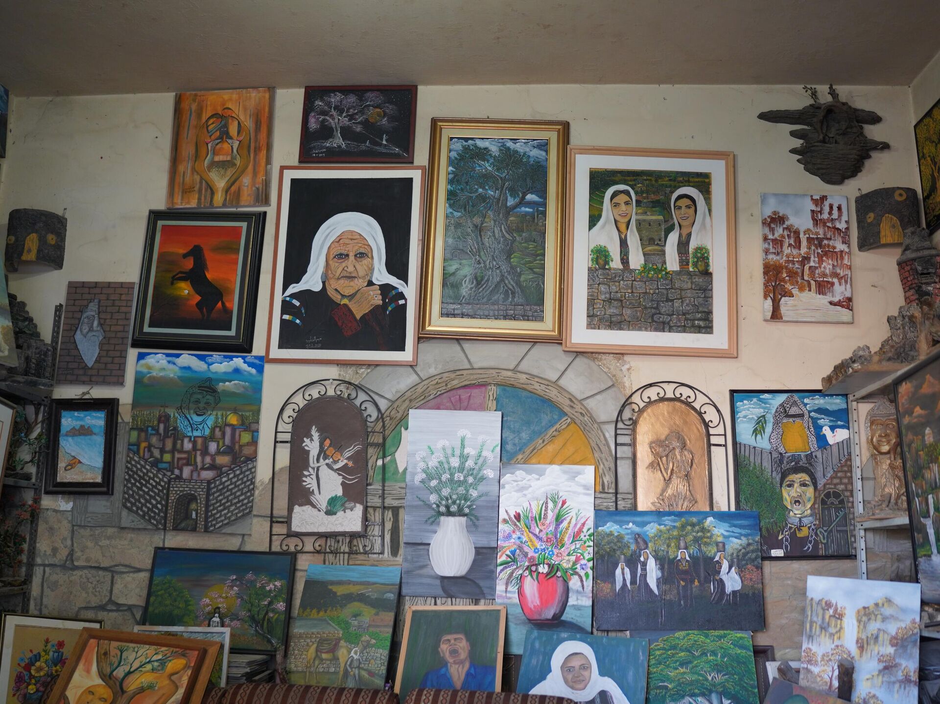 وفي "مشغله" وسط مدينة الخليل جنوبي الضفة الغربية تنتشر اللوحات التي جسّد فيها واقع غزة بلوحة فيها شلال دماء على طريق القدس والحرية، كما جسّد الحواجز العسكرية والثوب الفلسطيني، والكوفية، ومعاناة الأطفال في ظل الحصار، ومقاومة المرأة الفلسطينية، والحياة الريفية والأزياء المرتبطة بالتراث الفلسطيني.