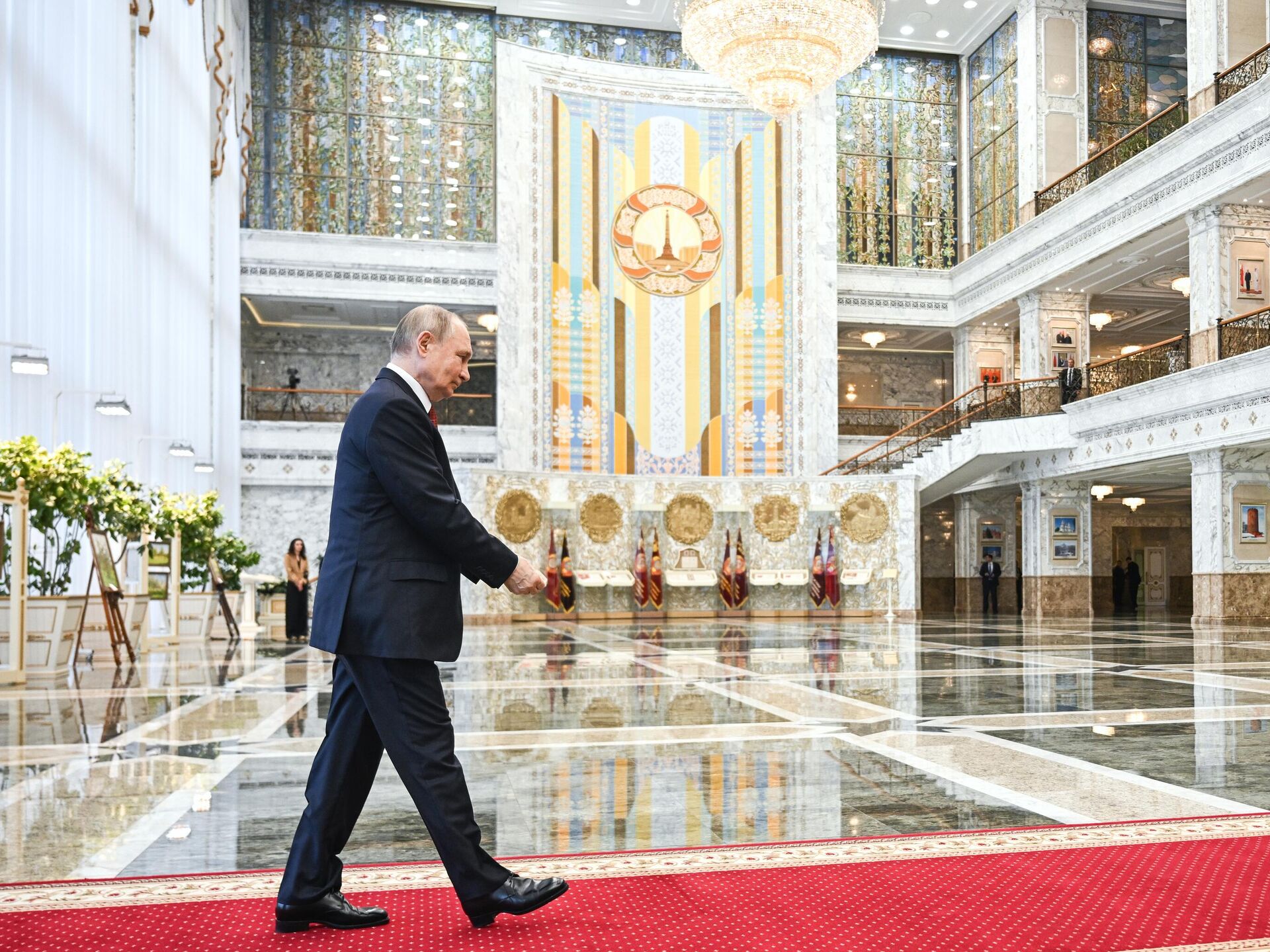 ويتواجد بوتين في مينسك، في إطار زيارة تستغرق يومين، وشارك بوتين، اليوم الجمعة، في اجتماع المجلس الاقتصادي الأوراسي الأعلى.