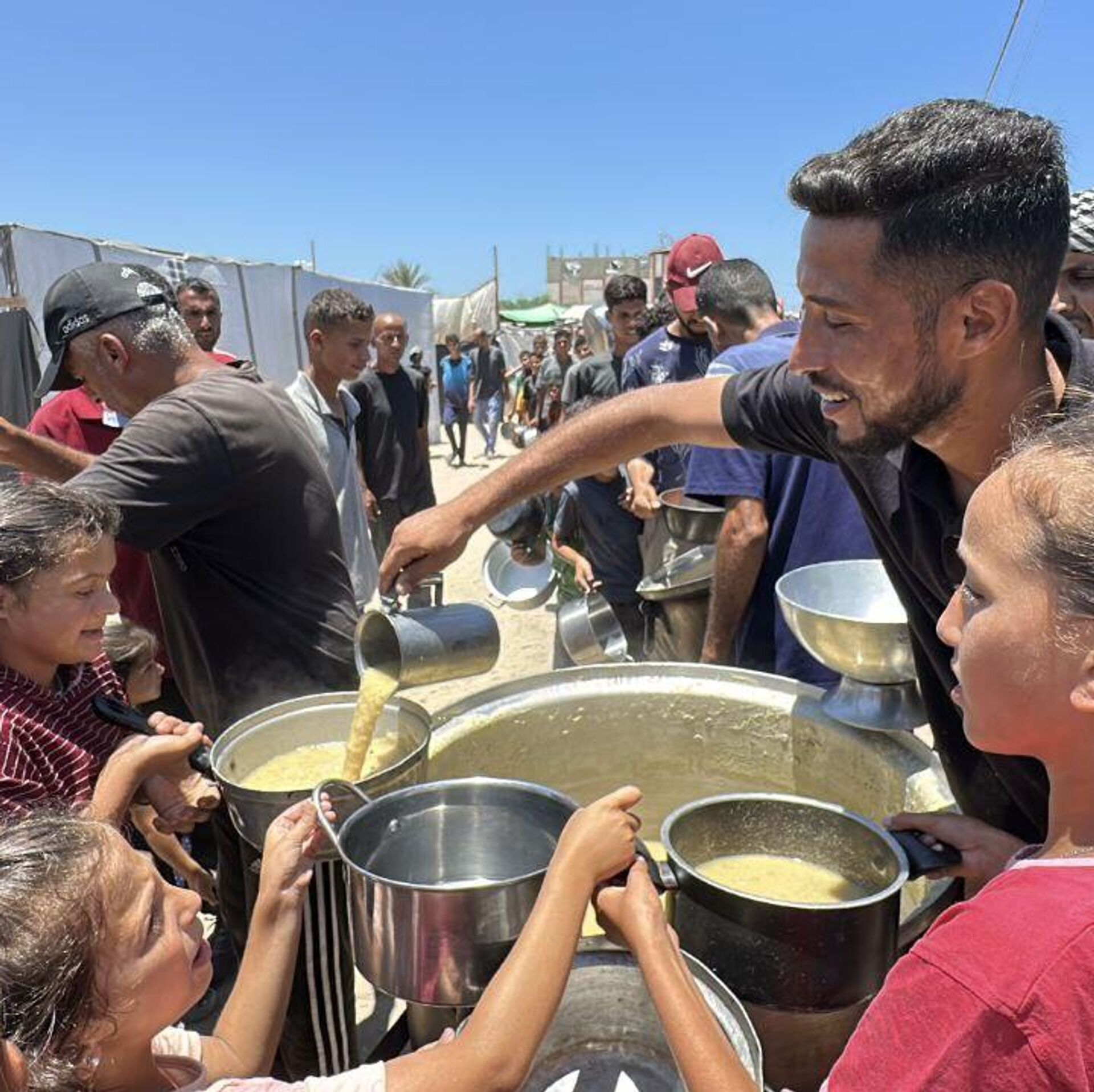 الشاب كامل محسن، واحد من النازحين الموجودين في منطقة المواصي في خان يونس جنوبي قطاع غزة، الذي أقام قبل عام مبادرة لإطعام النازحين، ولا يزال حتى اليوم يحاول الصمود في وجه الحصار لمواجهة المجاعة، وتقديم الطعام للنازحين الذين لم يعد بإمكانهم الحصول على المساعدات الإنسانية.