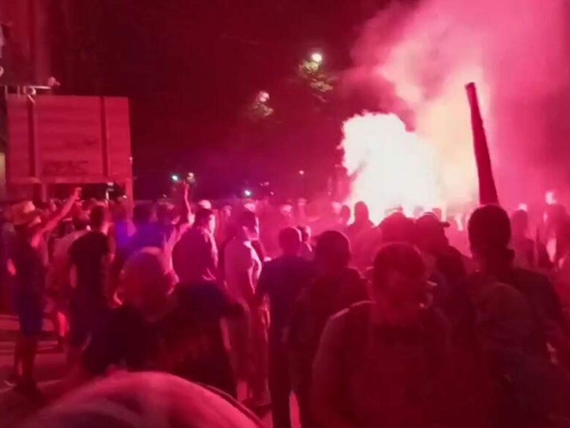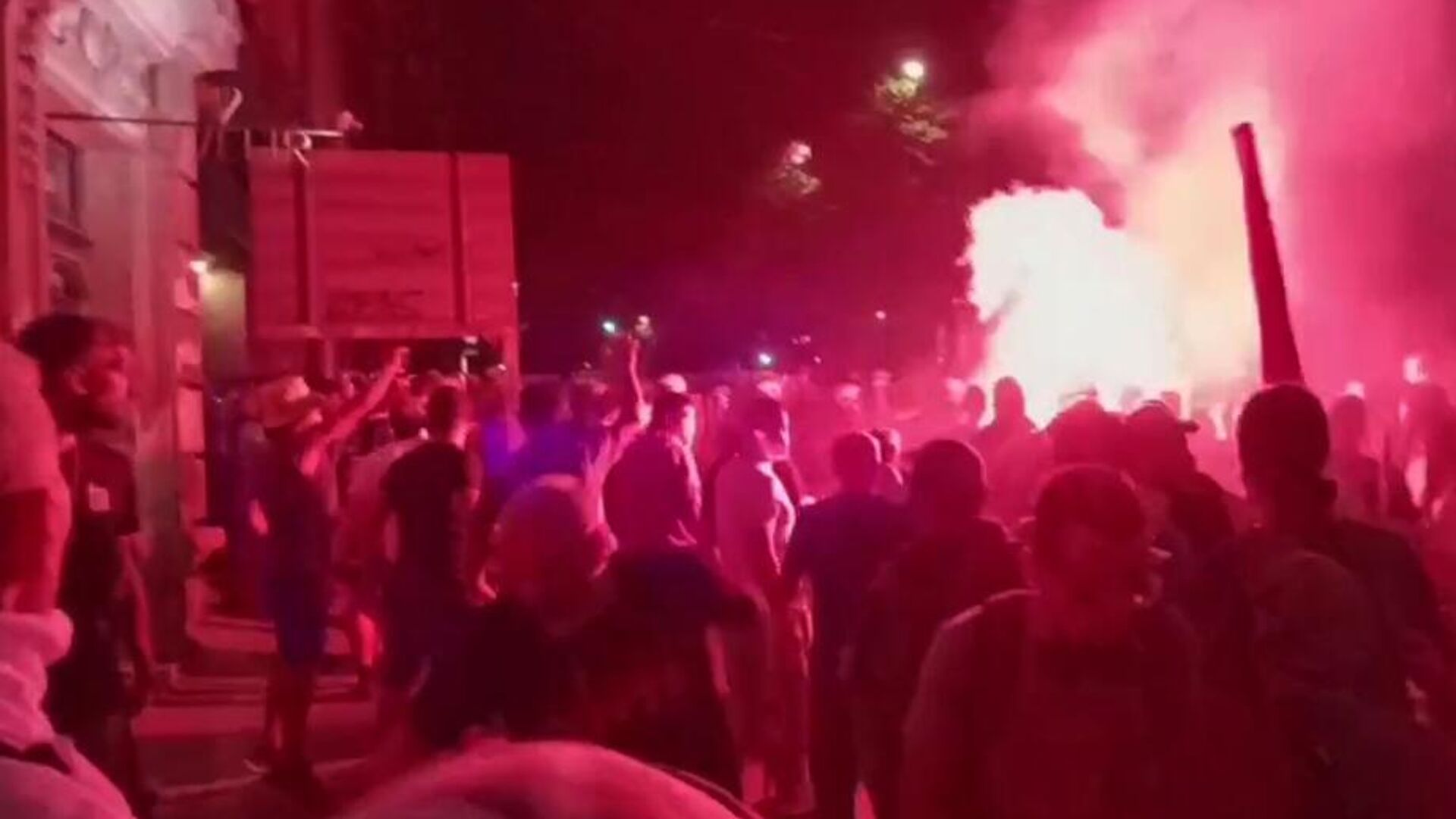 وبحلول الساعة 9:30 مساءً، تحرك المتظاهرون من ساحة "سلاڤيا" نحو صفوف الشرطة المتمركزة في شارعي "كراليا ميلانا" و"كنيزا ميلوشا" أمام مبنى الرئاسة. ورغم دعوات منظمي التظاهرة إلى التظاهر السلمي، بدأت المفرقعات والأشياء المختلفة تتطاير، وسط هتافات عدائية ومسيئة موجهة إلى السلطات.