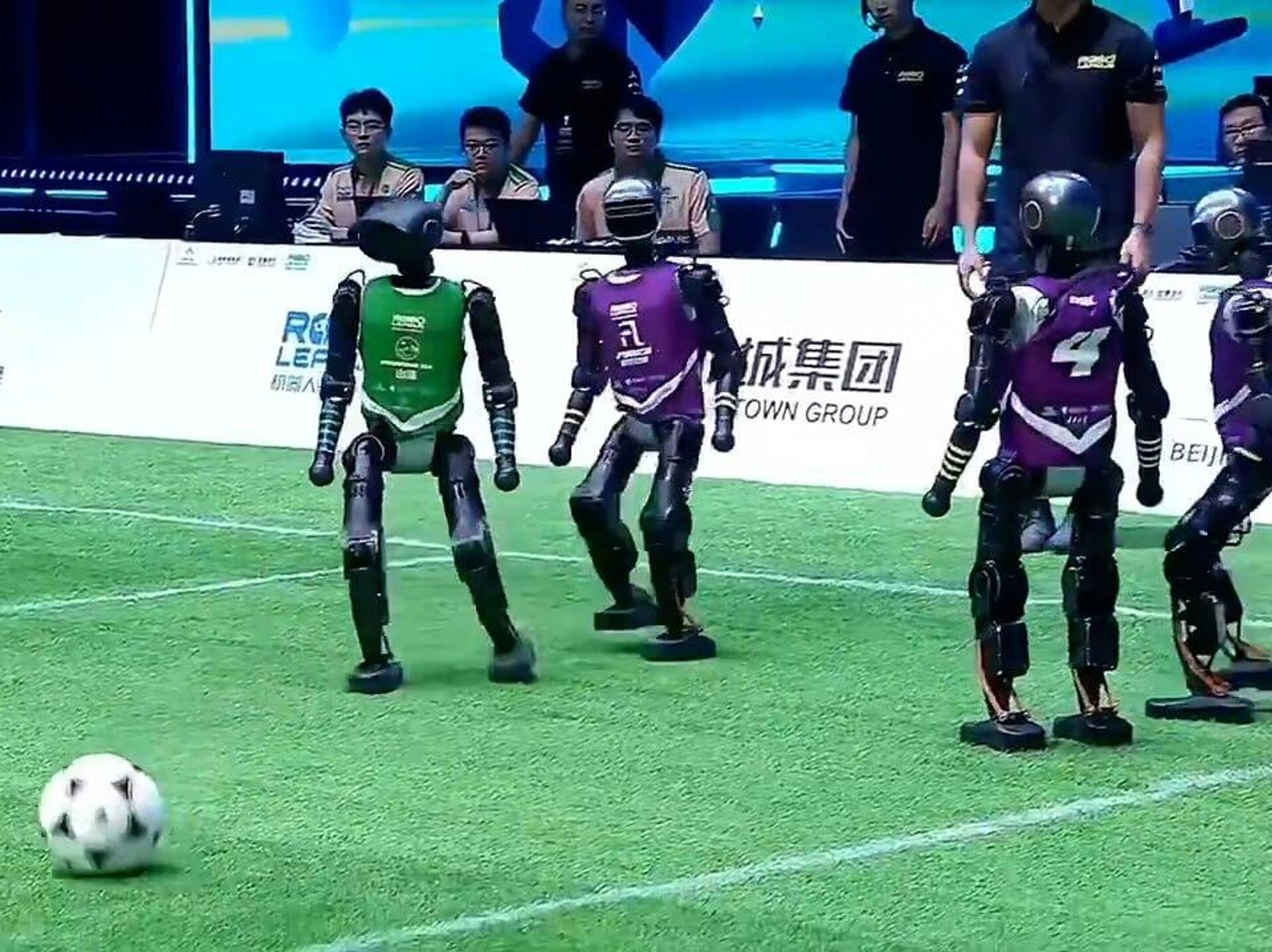 وتبين المشاهد المواجهة التي جرت بين فريقين من الروبوتات المزودة بالذكاء الاصطناعي، وذلك في أول بطولة كرة قدم ذاتية القيادة للبالغين في الصين.