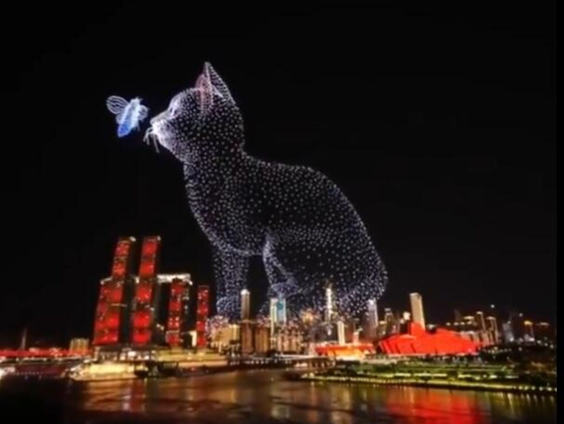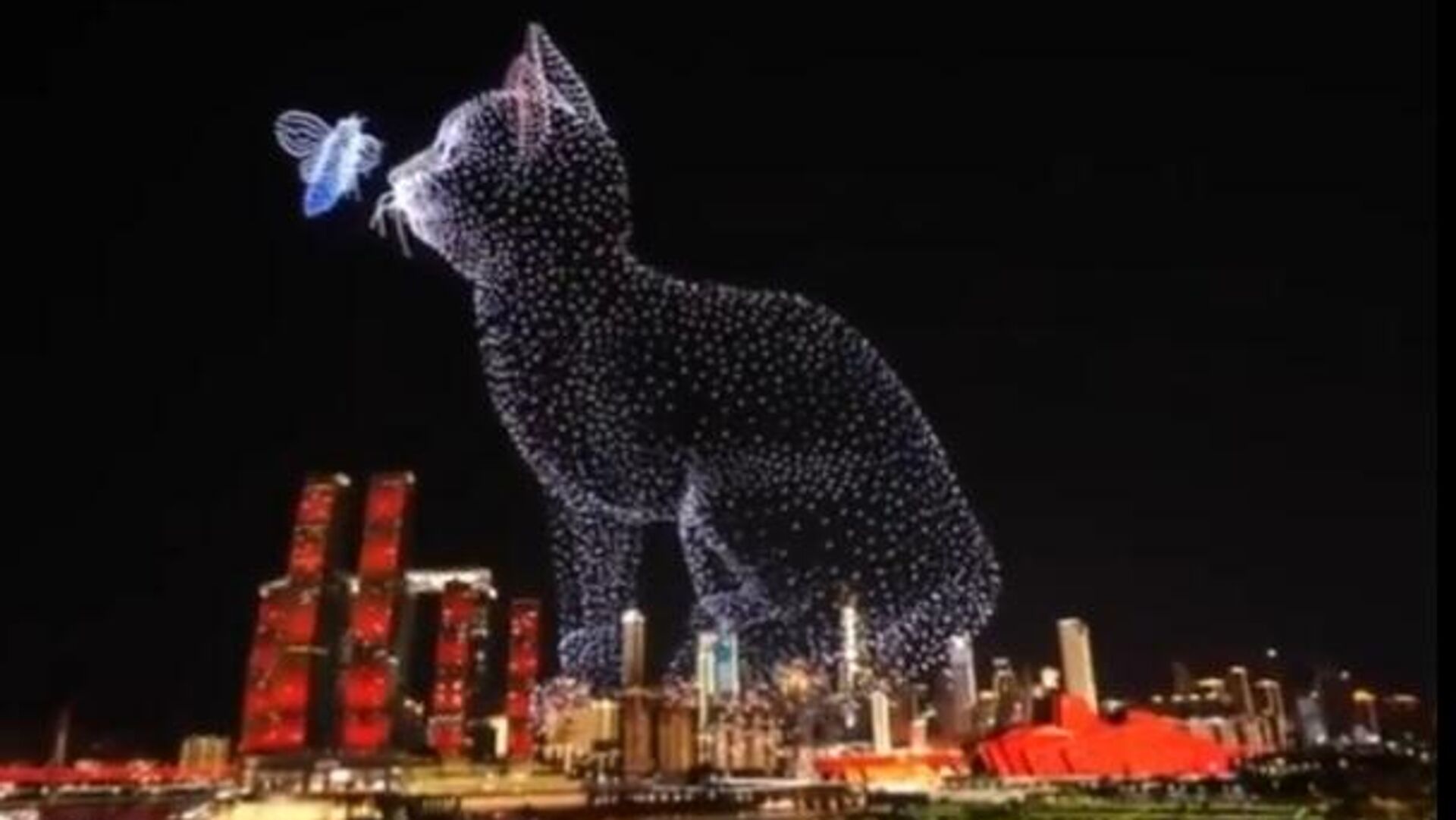 عرض ضوئي مبهر لـ1000 طائرة مسيرة على شكل قطة... فيديو