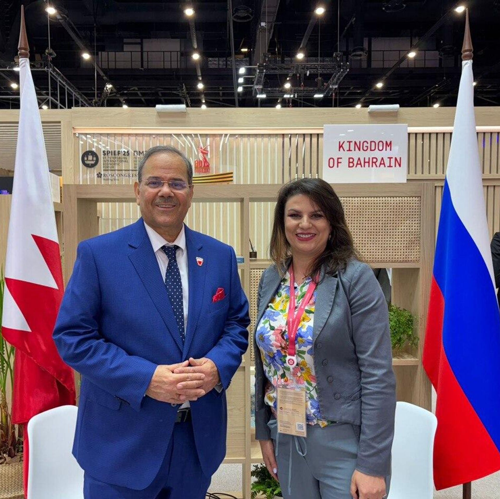 وقال سعادة السفير في خطاب وجهه إلى موفدة "سبوتنيك" إلى المنتدى، الإعلامية نغم كباس: "أتقدم إليك بجزيل الشكر والتقدير على تغطيتكم الإعلامية لمشاركة مملكة البحرين كدولة ضيف الشرف في "منتدى سانت بطرسبورغ الاقتصادي الدولي 2025".