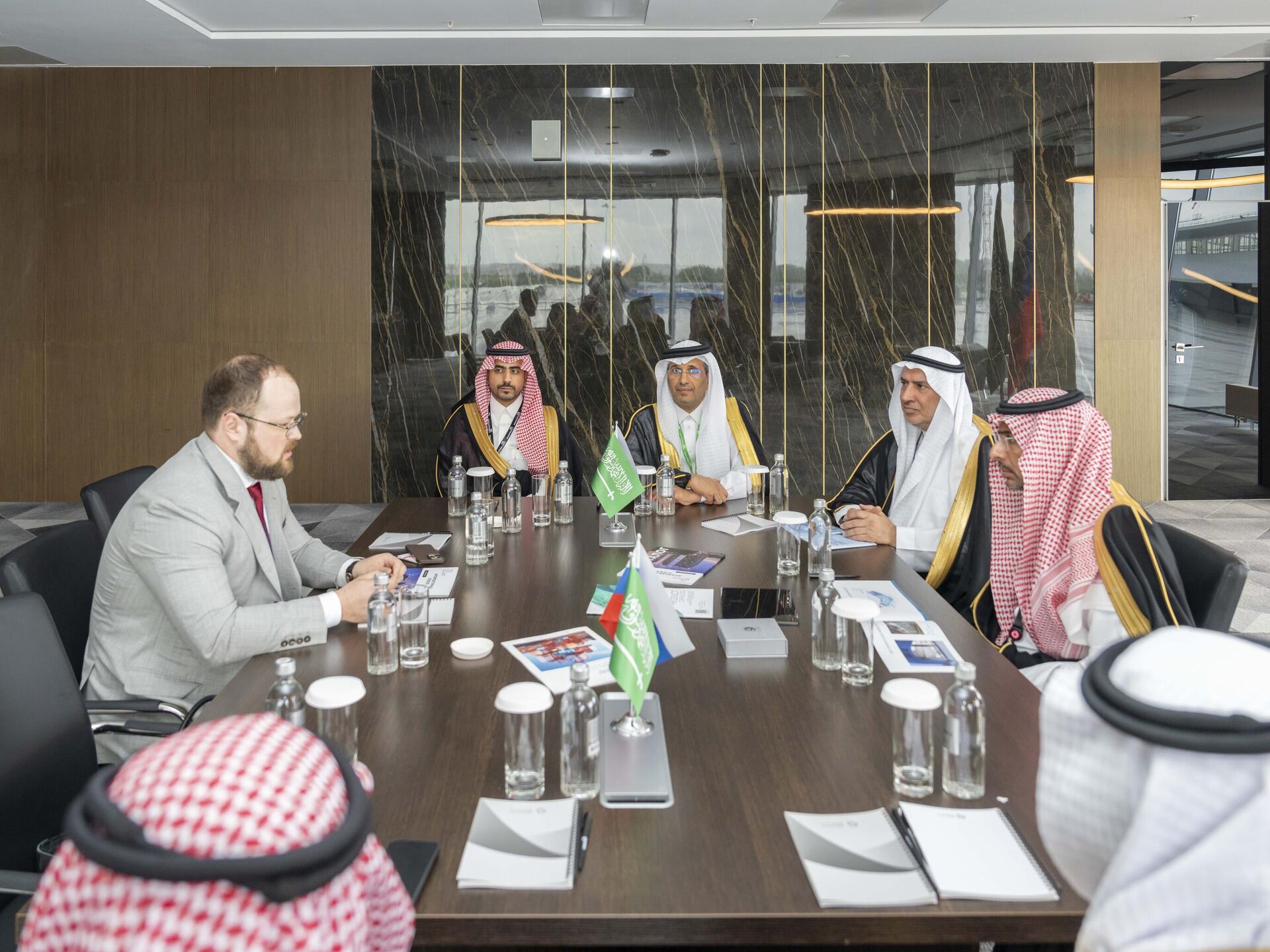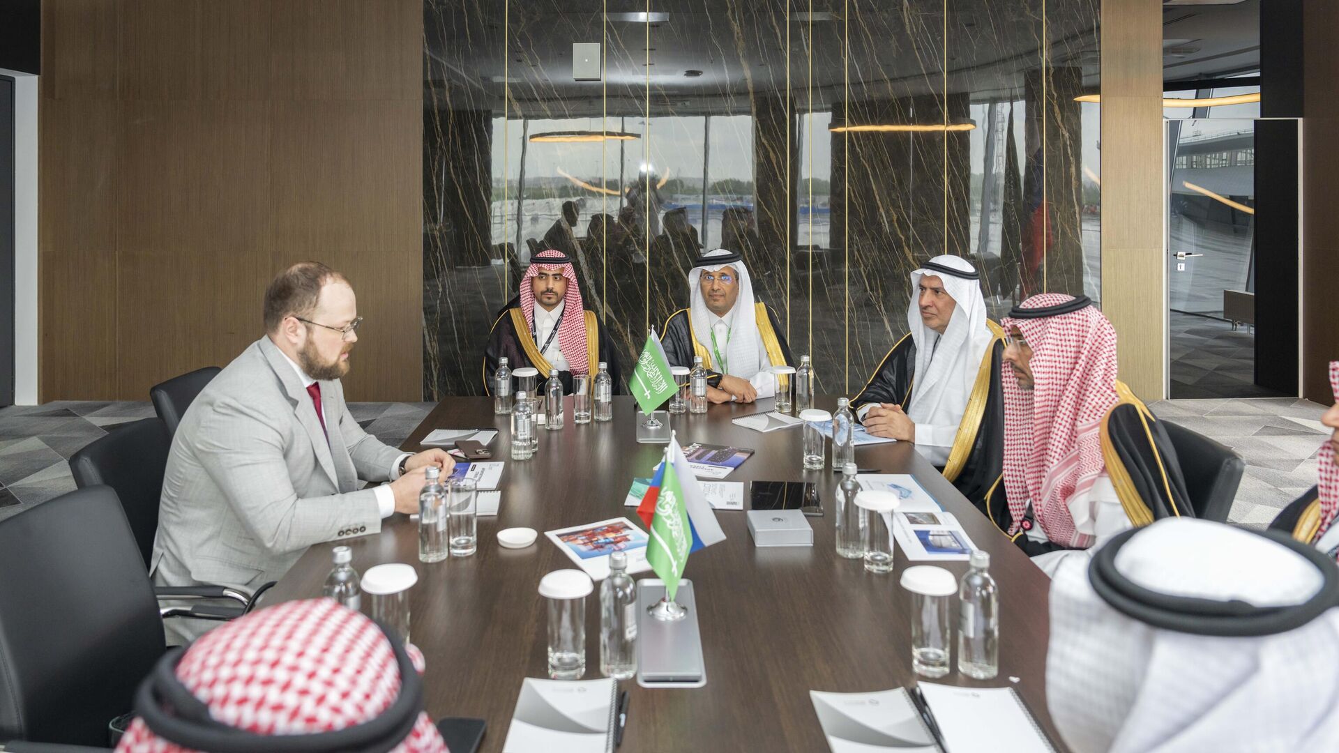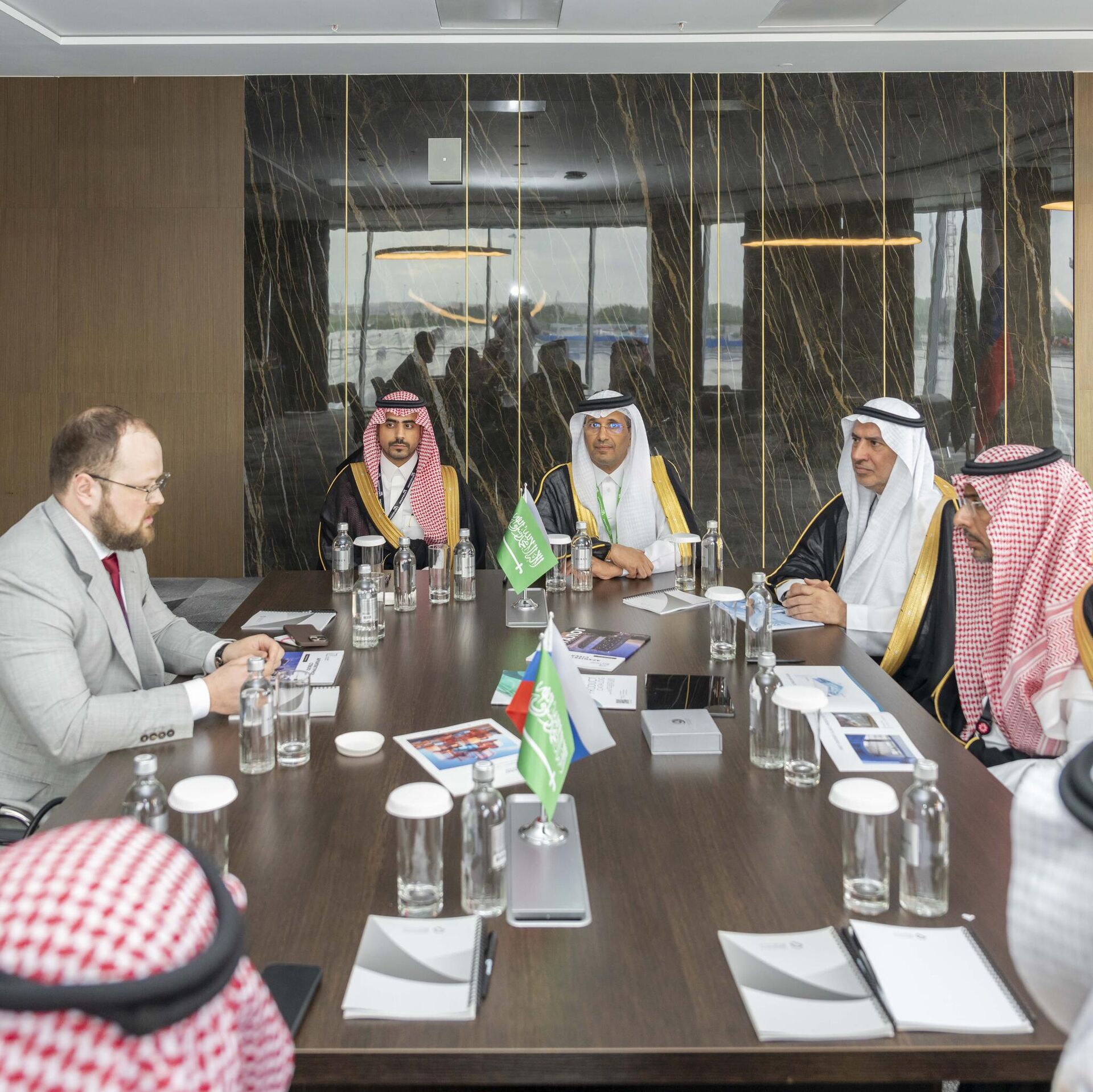 وأجرى الوزير محادثات مع رئيس مجلس إدارة شركة سالافات للزجاج، إحدى أكبر شركات إنتاج الزجاج المسطح في روسيا الاتحادية. وناقش الاجتماع التعاون في القطاع الصناعي، وفرص الاستثمار، وفرص التمويل المتاحة للشركات العالمية في المملكة.
