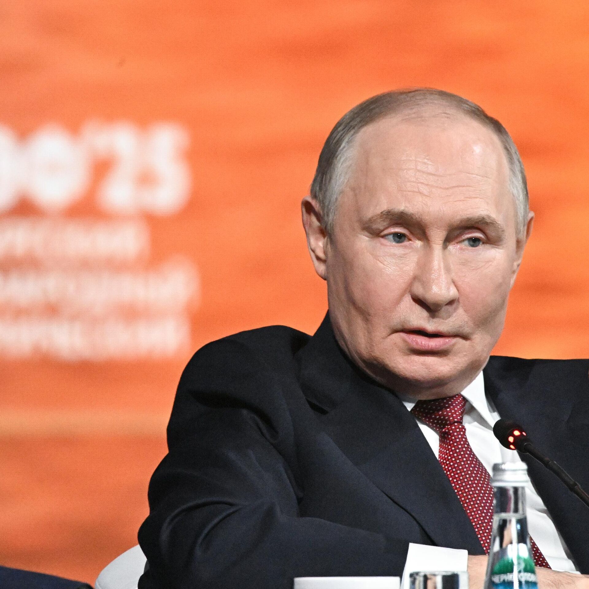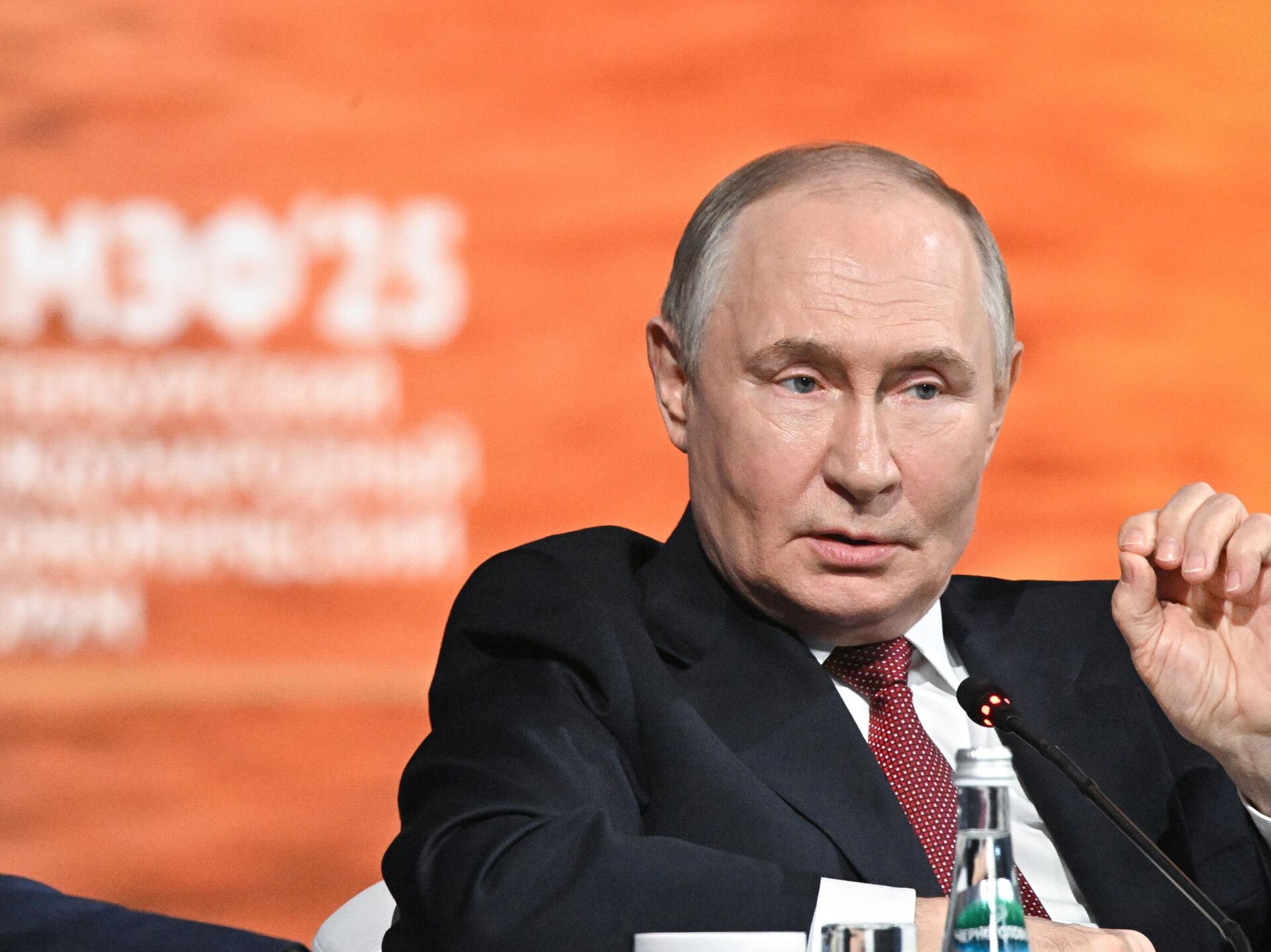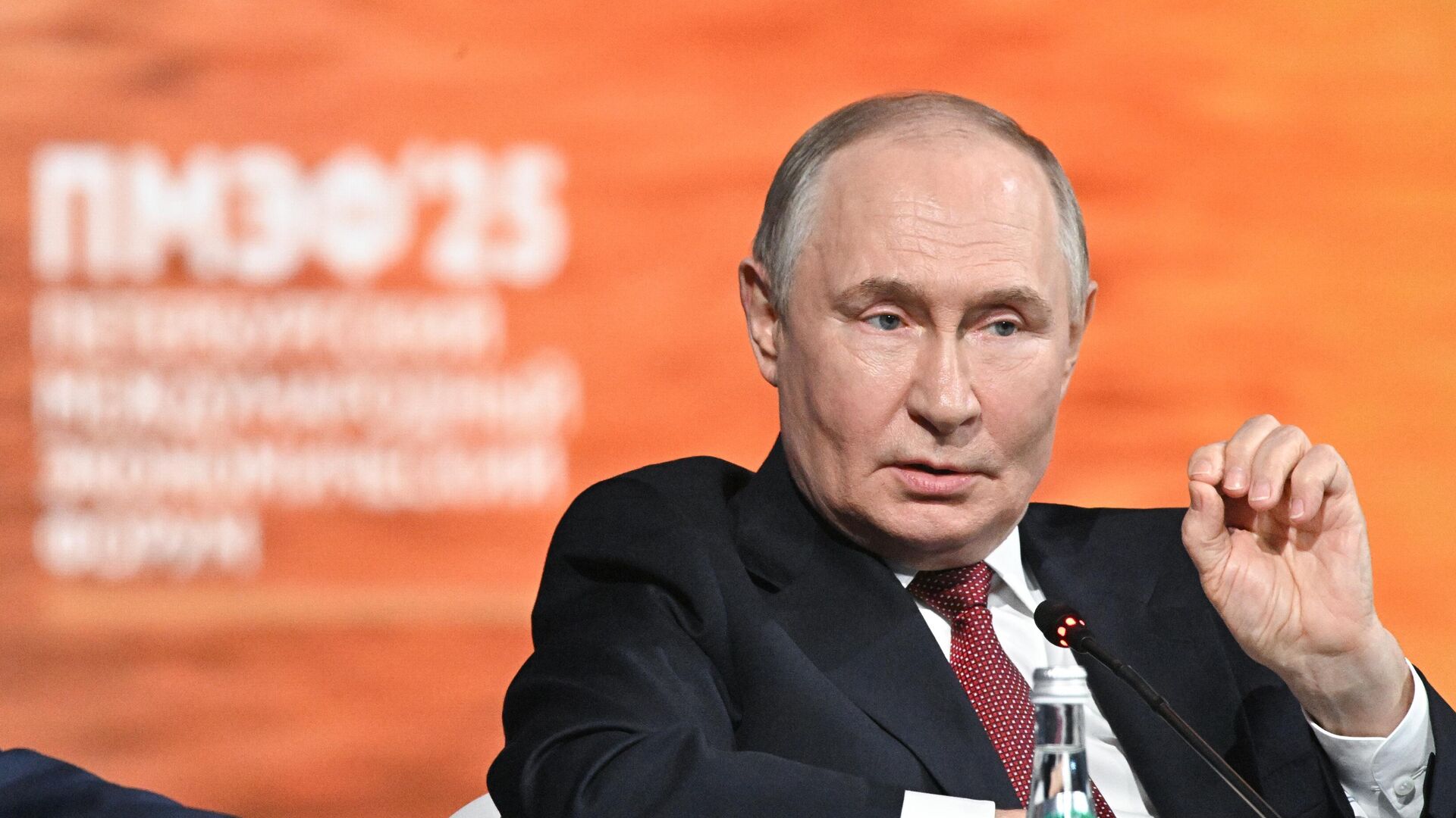 © Sputnik . Sergey Bobylev / الانتقال إلى بنك الصورالرئيس الروسي فلاديمير بوتين خلال منتدى سانت بطرسبرغ الاقتصادي الدولي 2025
