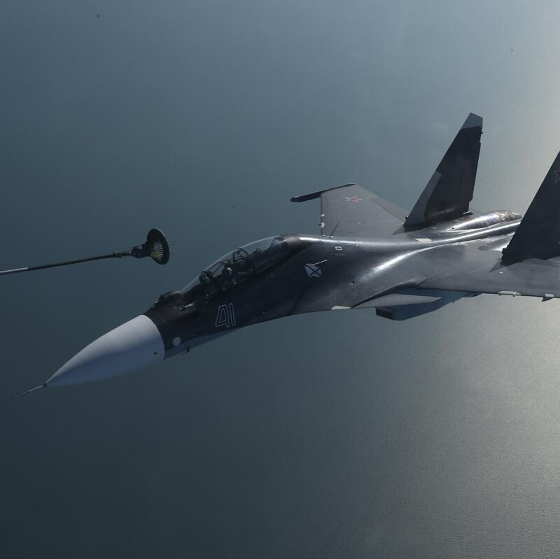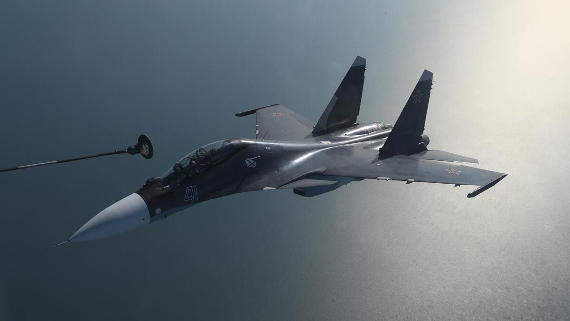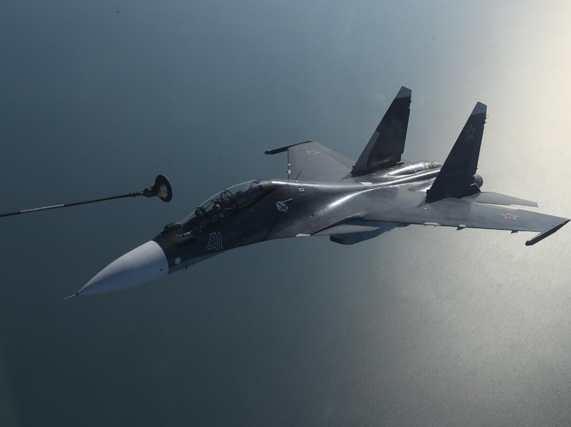 تدريب على التزود بالوقود في الجو لمقاتلة "سو-30 إس إم" التابعة للفوج 43 للطيران الهجومي البحري.