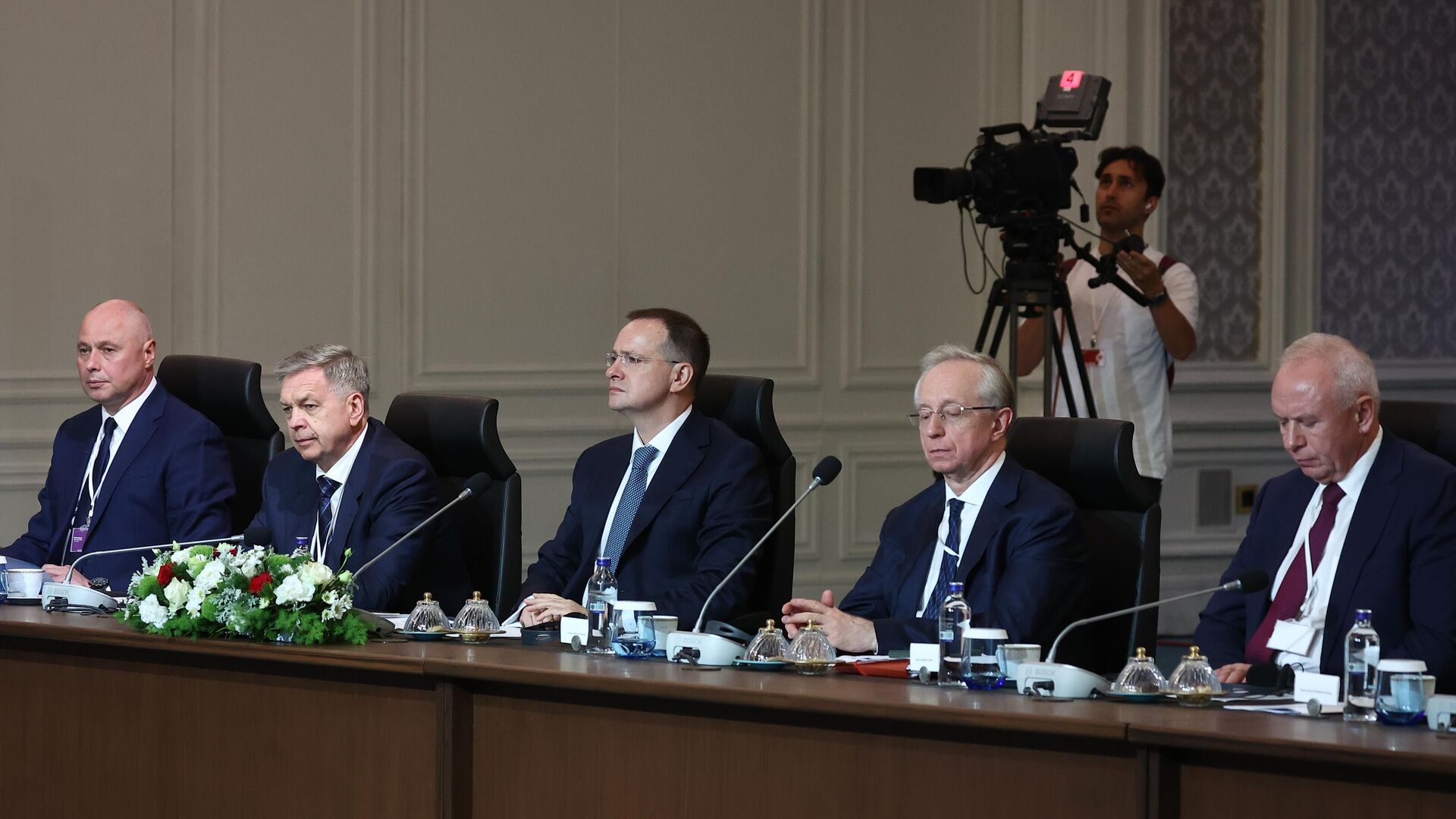 وعقد فلاديمير ميدينسكي، مساعد الرئيس الروسي، رئيس الوفد الروسي في المفاوضات مع أوكرانيا، اليوم الأربعاء، مع رئيس الوفد الأوكراني المفاوض رستم عميروف، اجتماعا ثنائيا في قصر "سيراغان" في مدينة إسطنبول التركية.