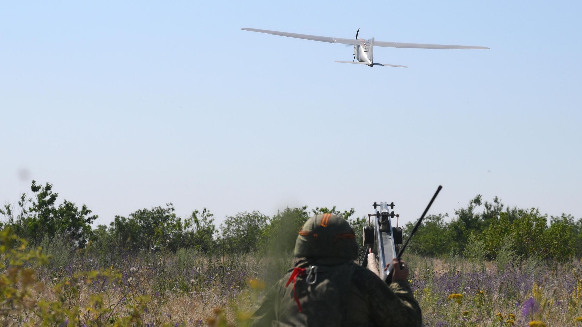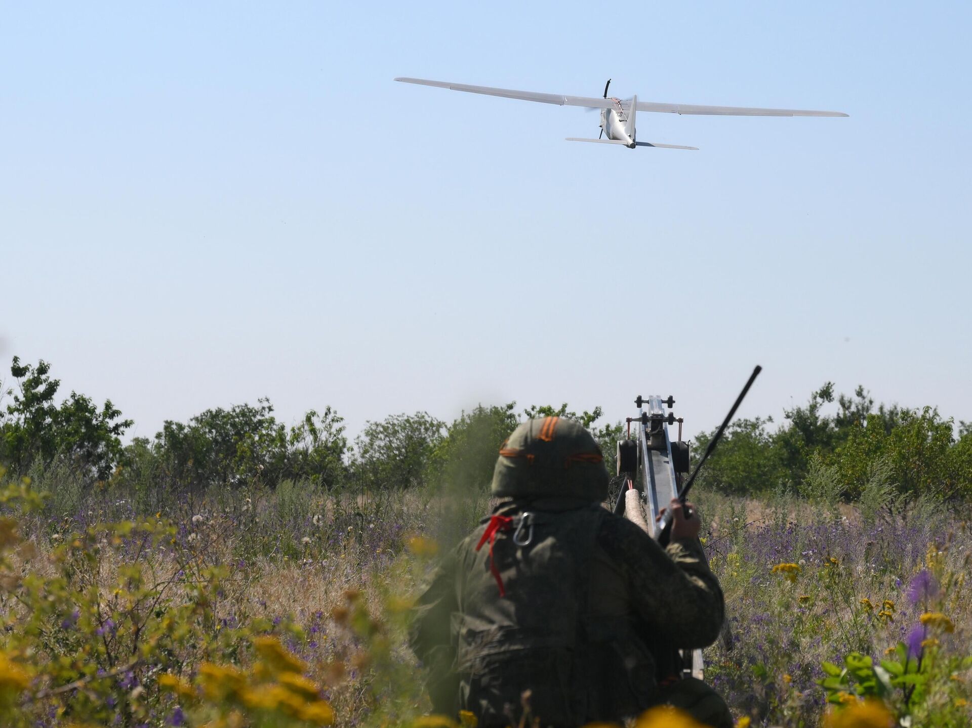 أفراد من قوات مجموعة "المركز" الروسية، يقومون بتجهيز طائرة الاستطلاع المسيرة الروسية "أورلان-10"، لإطلاقها في اتجاه كراسنوارميسكي، في إطار العملية العسكرية الخاصة