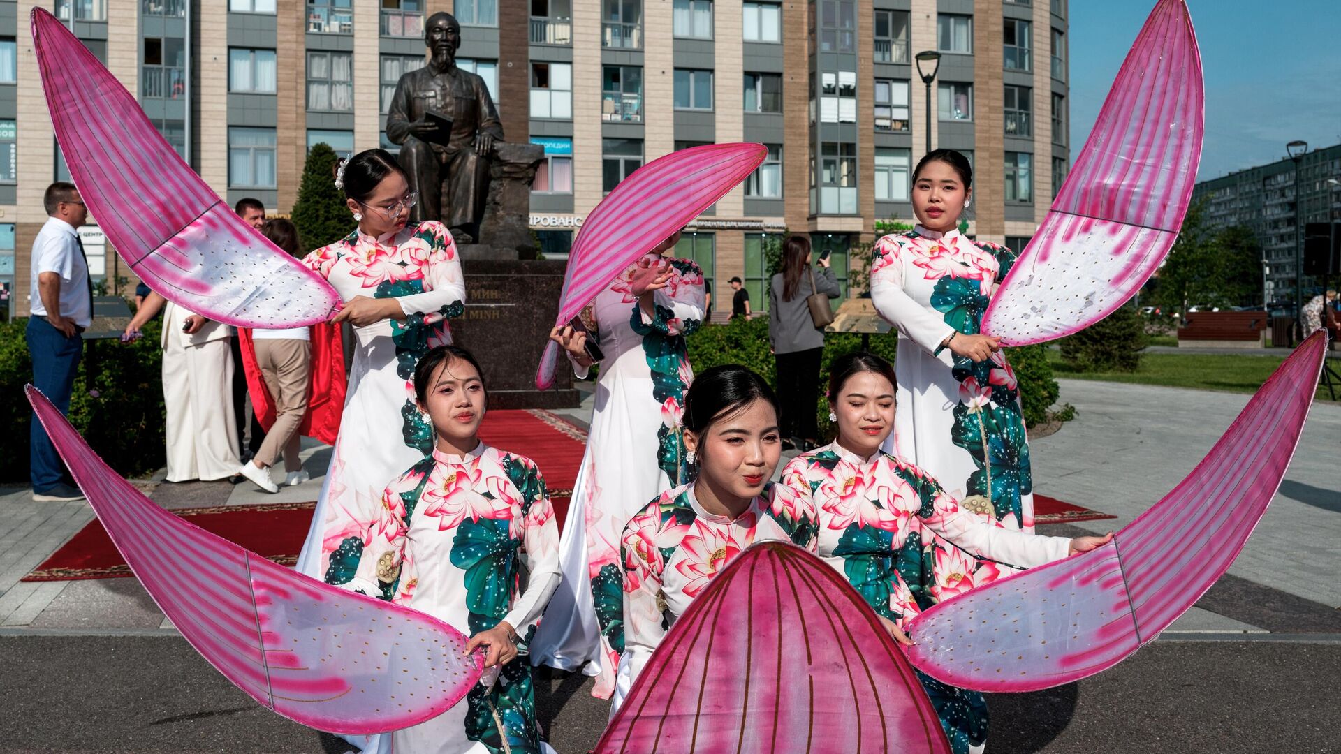 اختار لكم فريق تحرير وكالة "سبوتنيك"، مجموعة من الصور الجميلة لحفل افتتاح ساحة "هو تشي منه" (الرئيس الأول لفيتنام الشمالية) في حي فيبورغ بمدينة سانت بطرسبورغ الروسية، ويكرّس هذا الحدث للاحتفال بالذكرى الخامسة والسبعين لتأسيس العلاقات الدبلوماسية بين روسيا وفيتنام.