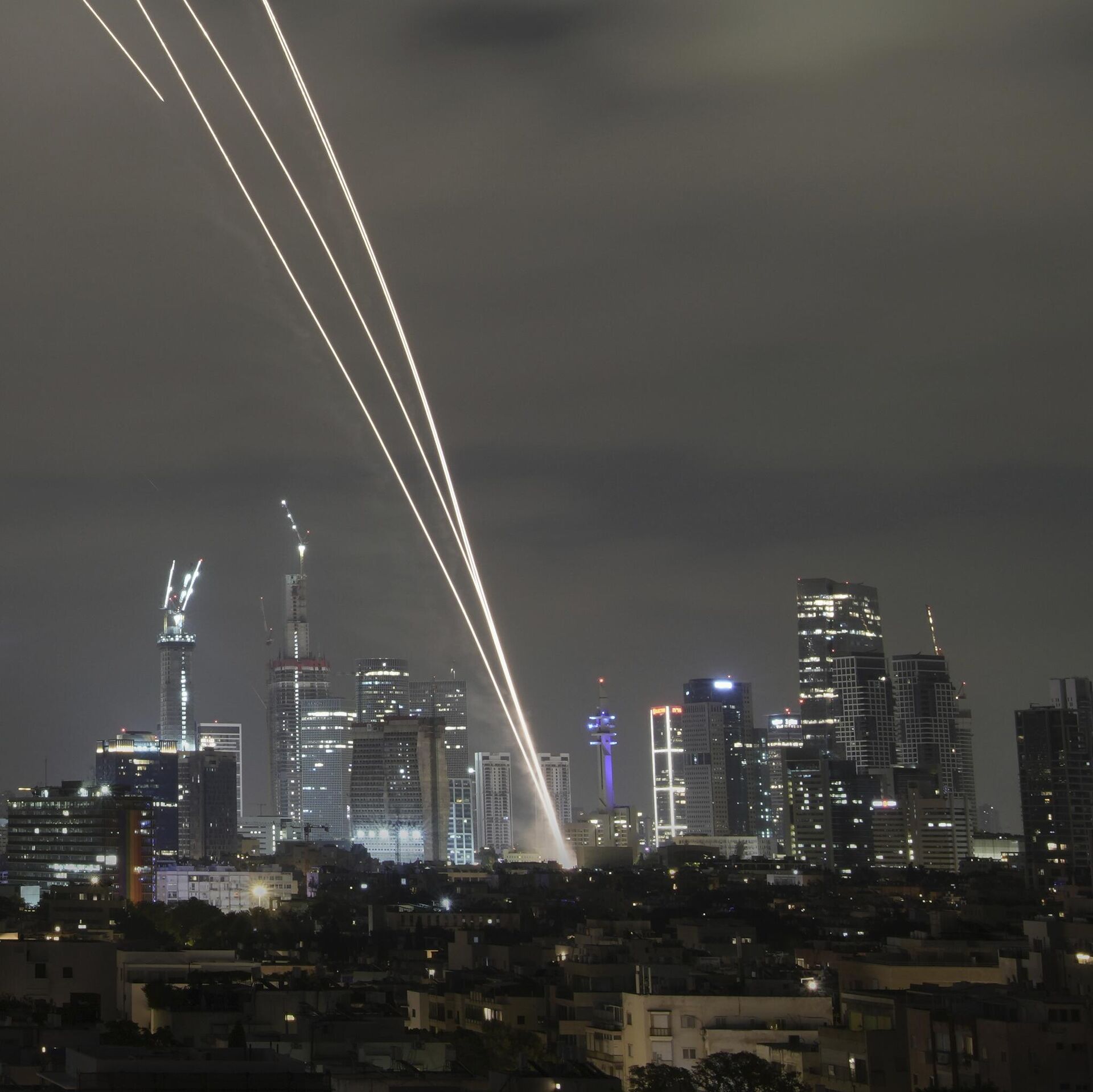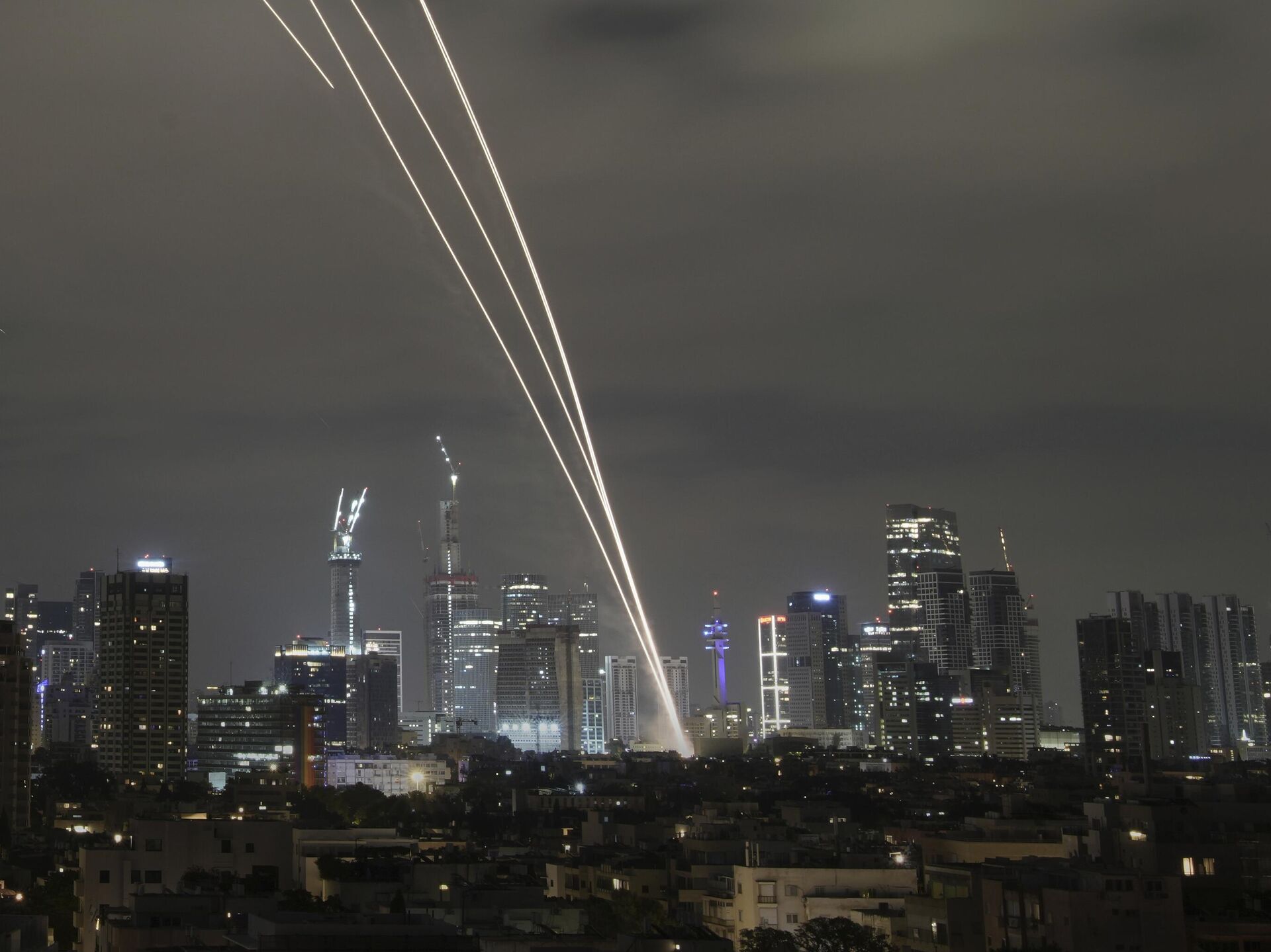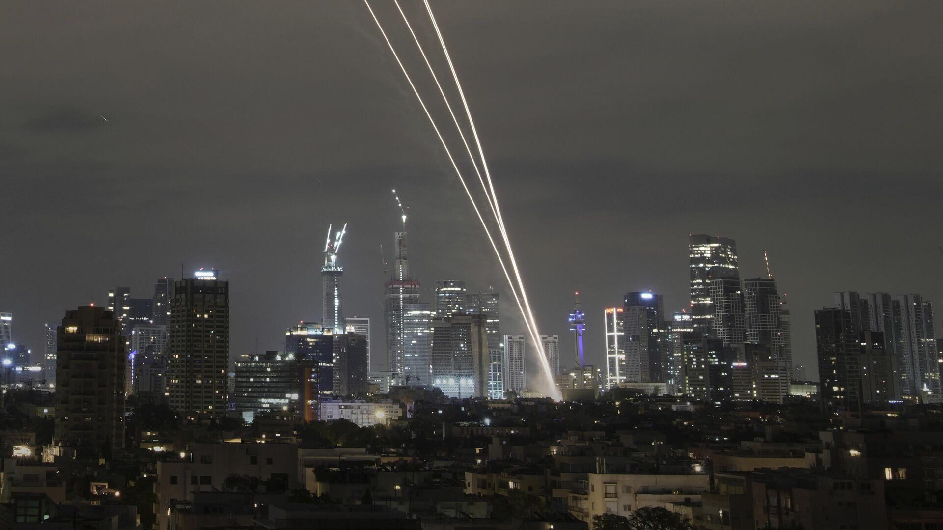 © AP Photoمحاولات إسرائيلية لاعتراض صواريخ إيرانية فوق تل أبيب