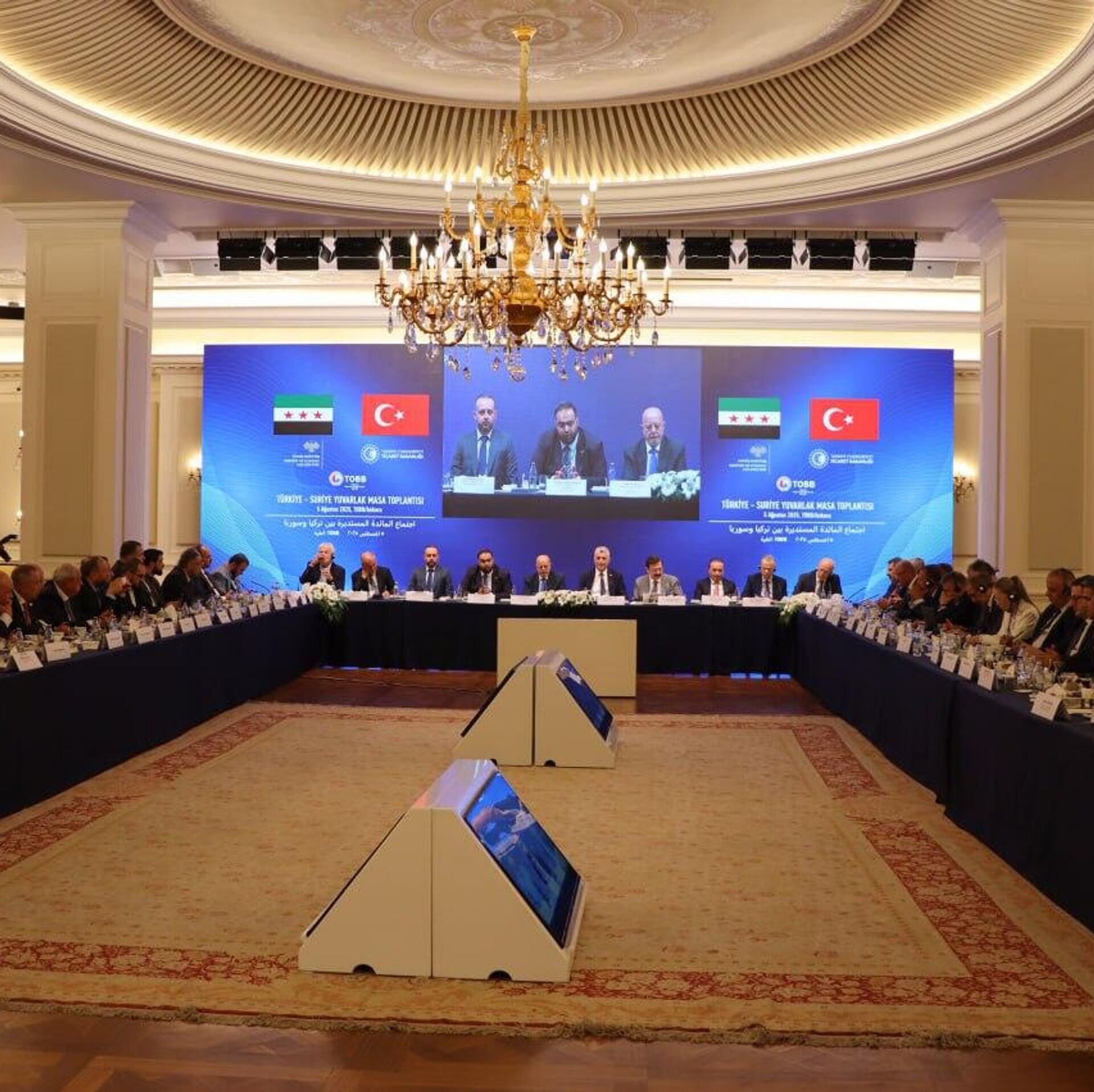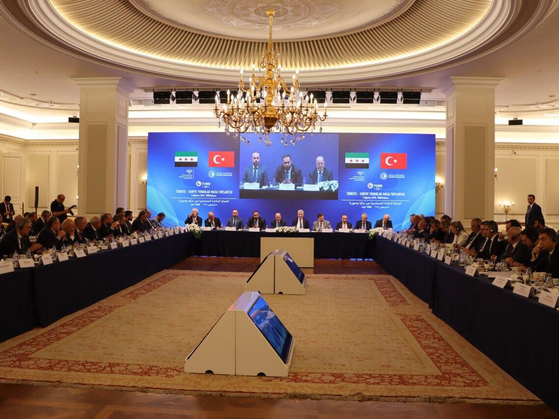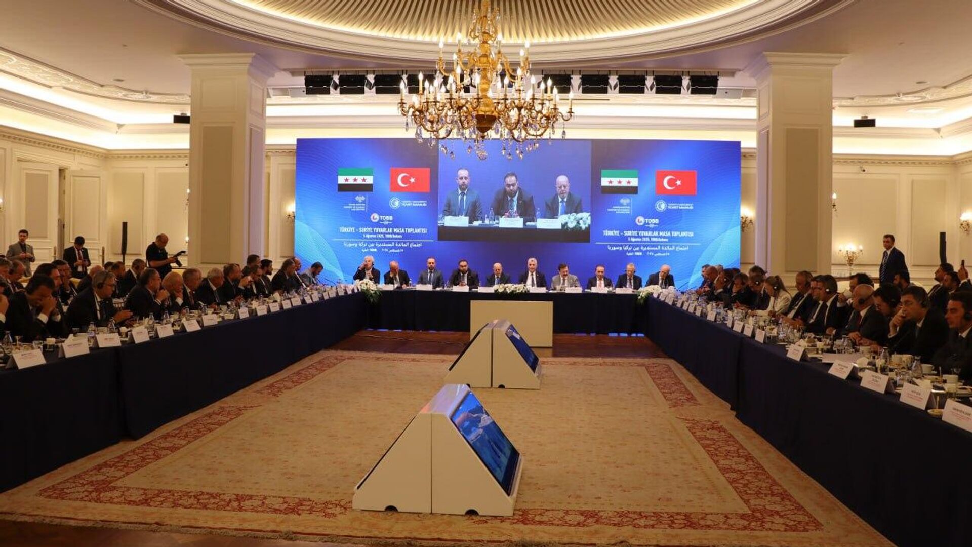 13:56 GMT 05.08.2025 (تم التحديث: 14:19 GMT 05.08.2025) وقعت سوريا وتركيا، اليوم الثلاثاء، أكثر من 10 اتفاقيات ومذكرة تفاهم، إلى جانب بروتوكول لإنشاء لجنة اقتصادية وتجارية مشتركة، بهدف رفع التبادل التجاري بين البلدين إلى 5 مليارات دولار.