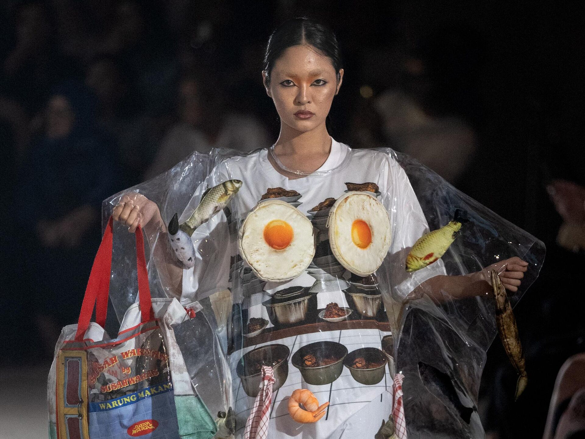 © Getty Images / Robertus Pudyanto عارضة أزياء تسير على منصة عرض ضمن فعاليات مهرجان جاكرتا للأزياء، في إندونيسيا.