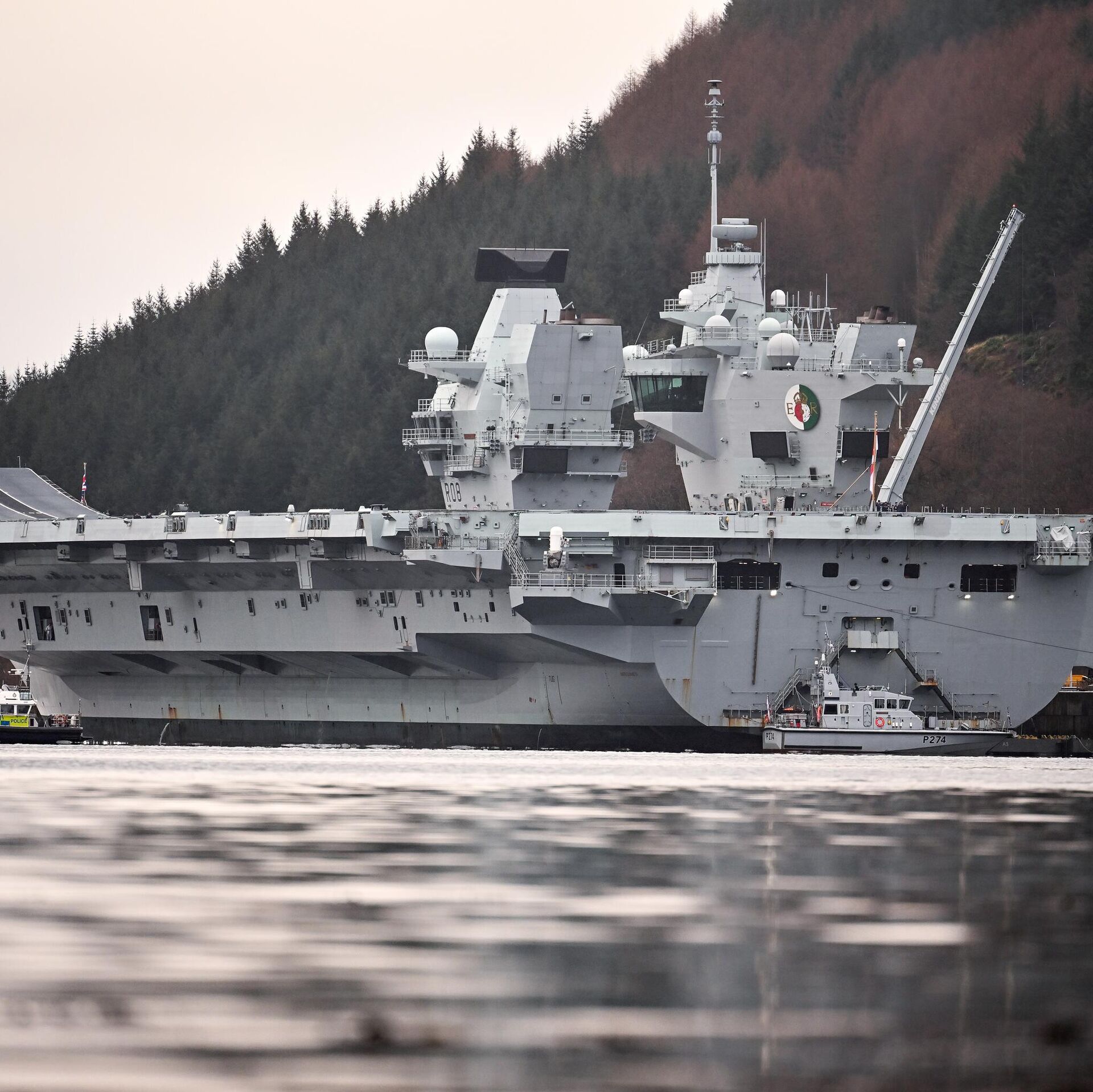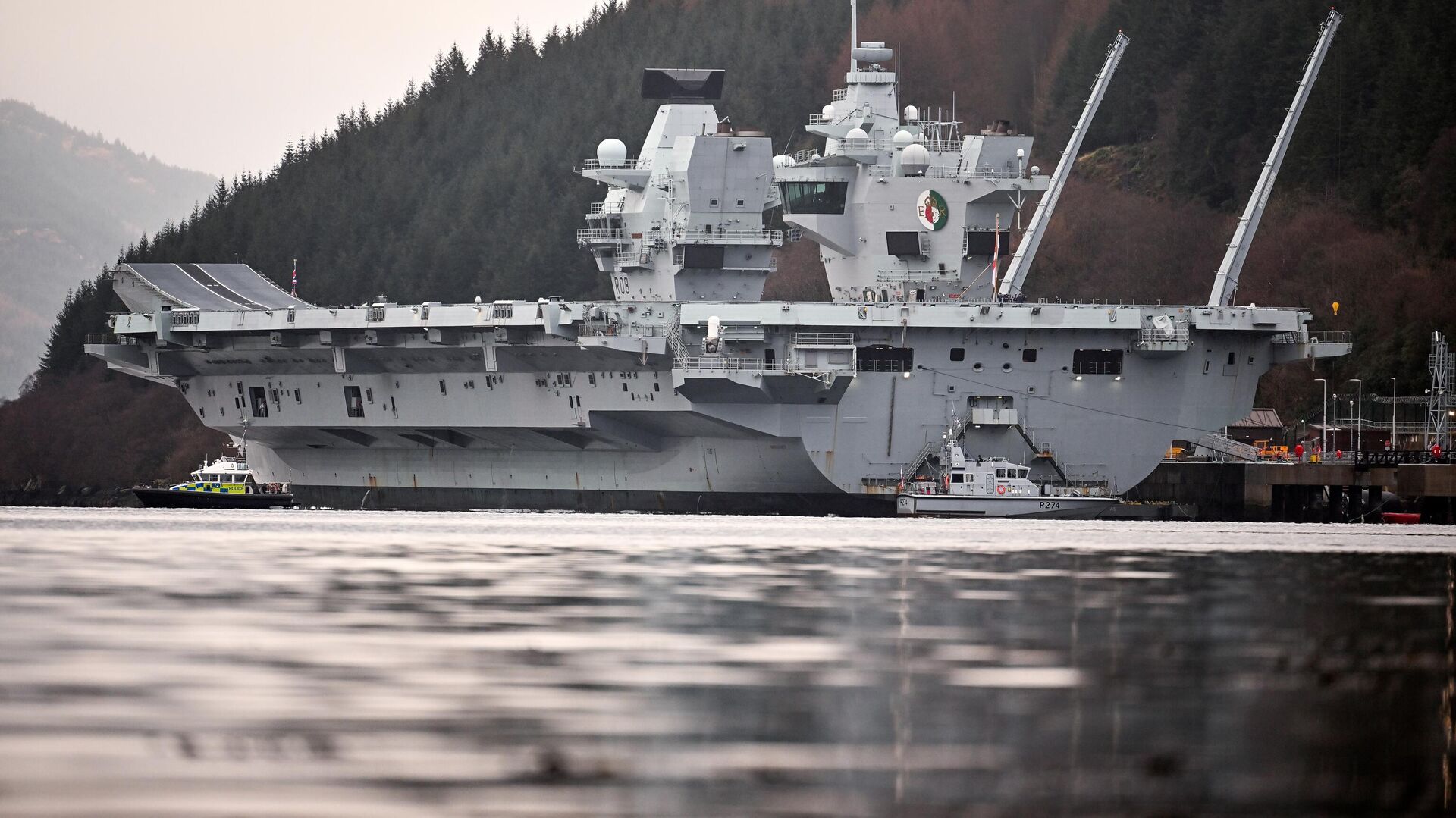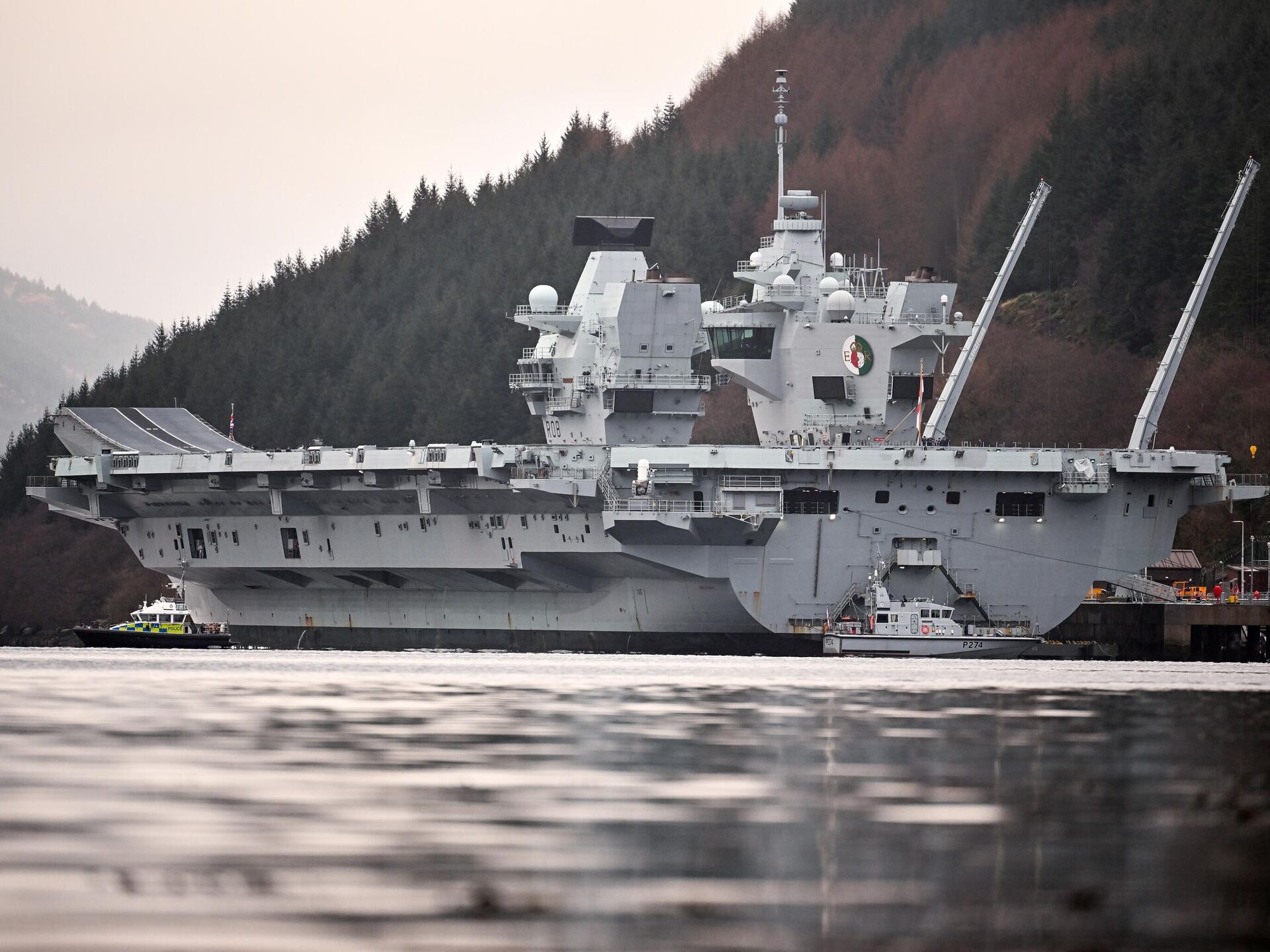 © Getty Images / Jeff J Mitchellأكبر سفينة حربية بريطانية تزور رصيف "غلين مالان" على بحيرة لونغ في اسكتلندا.