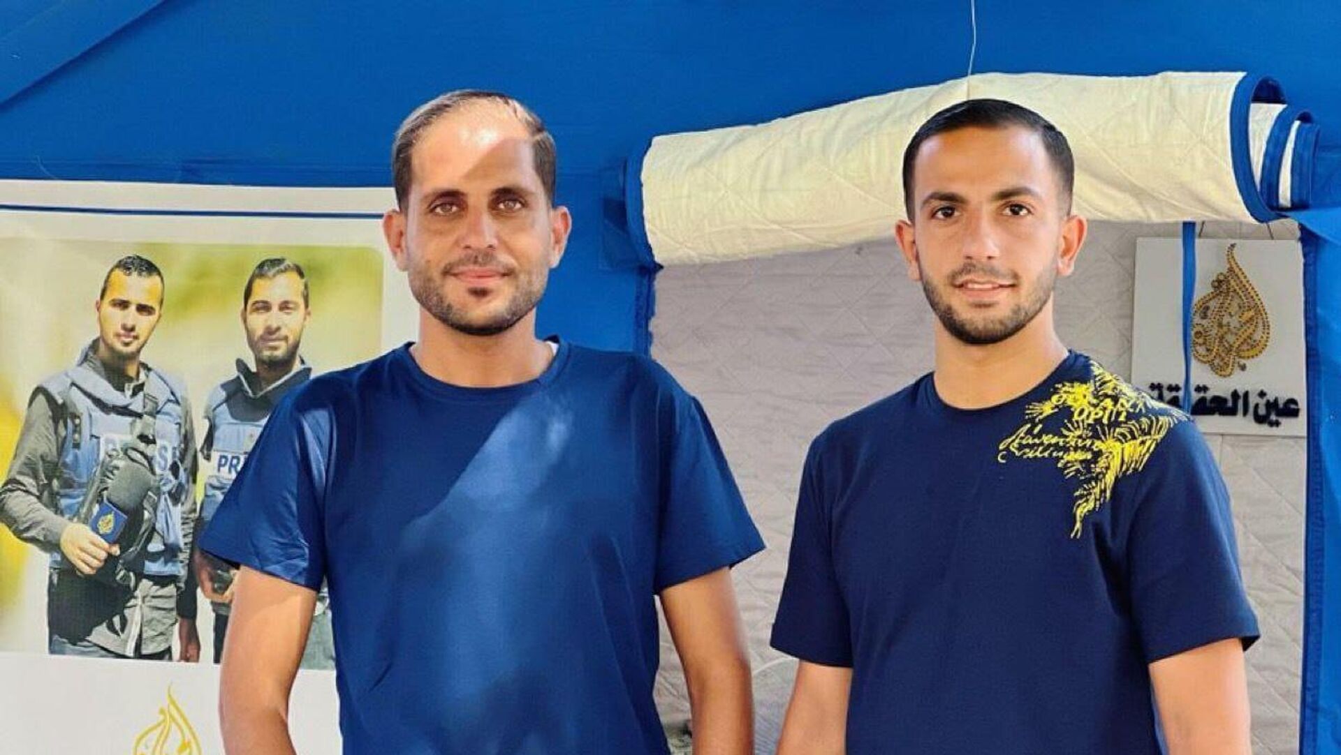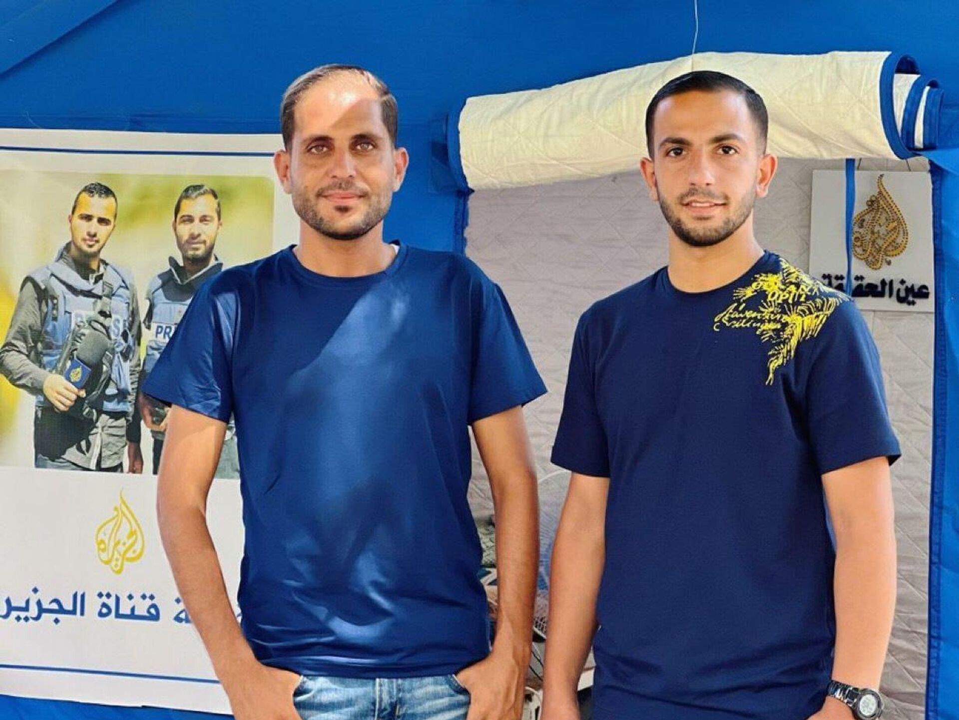 مراسلا الجزيرة أنس الشريف ومحمد قريقع، والمصوران إبراهيم ظاهر ومحمد نوفل، بقصف بغزة".