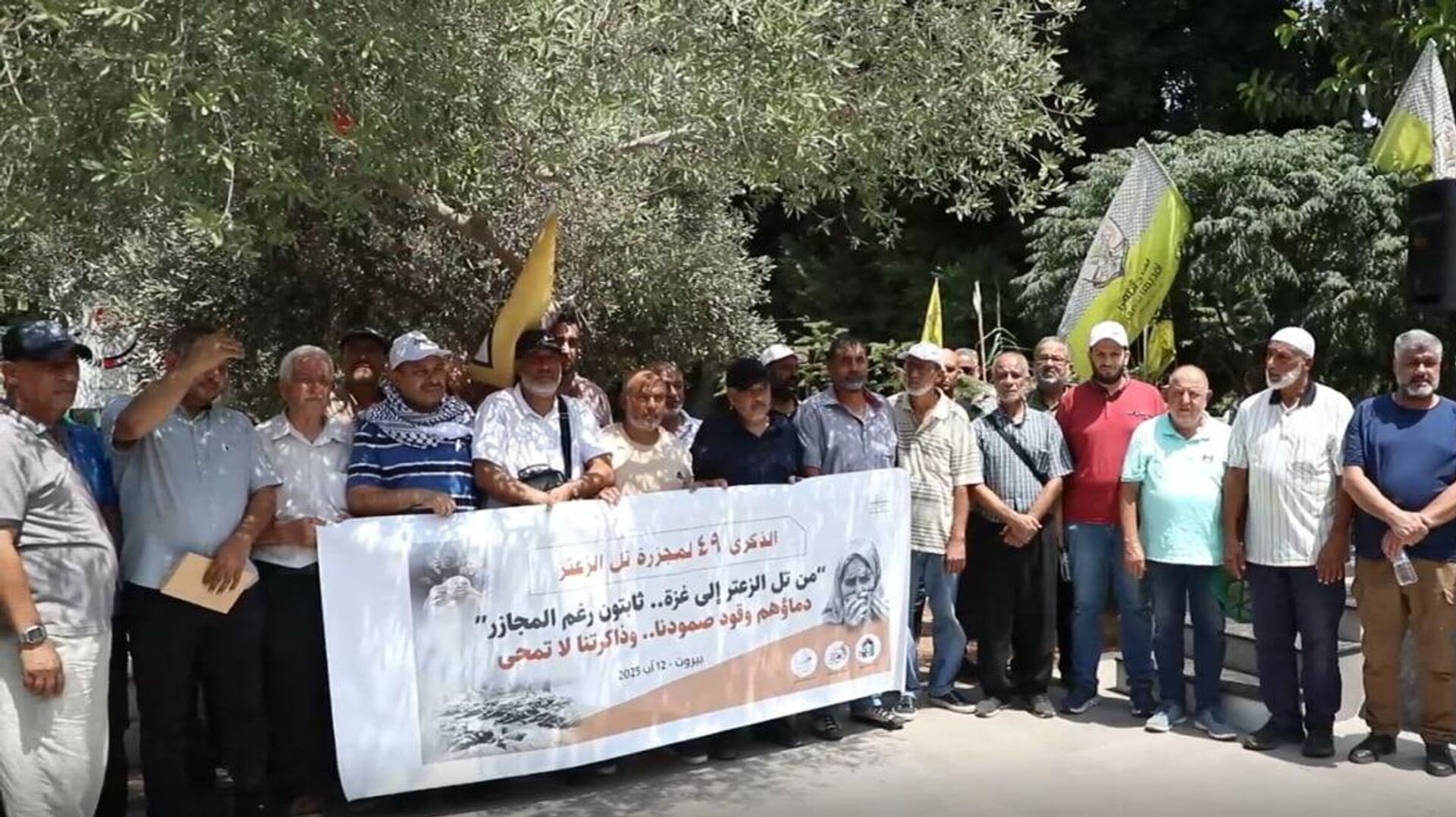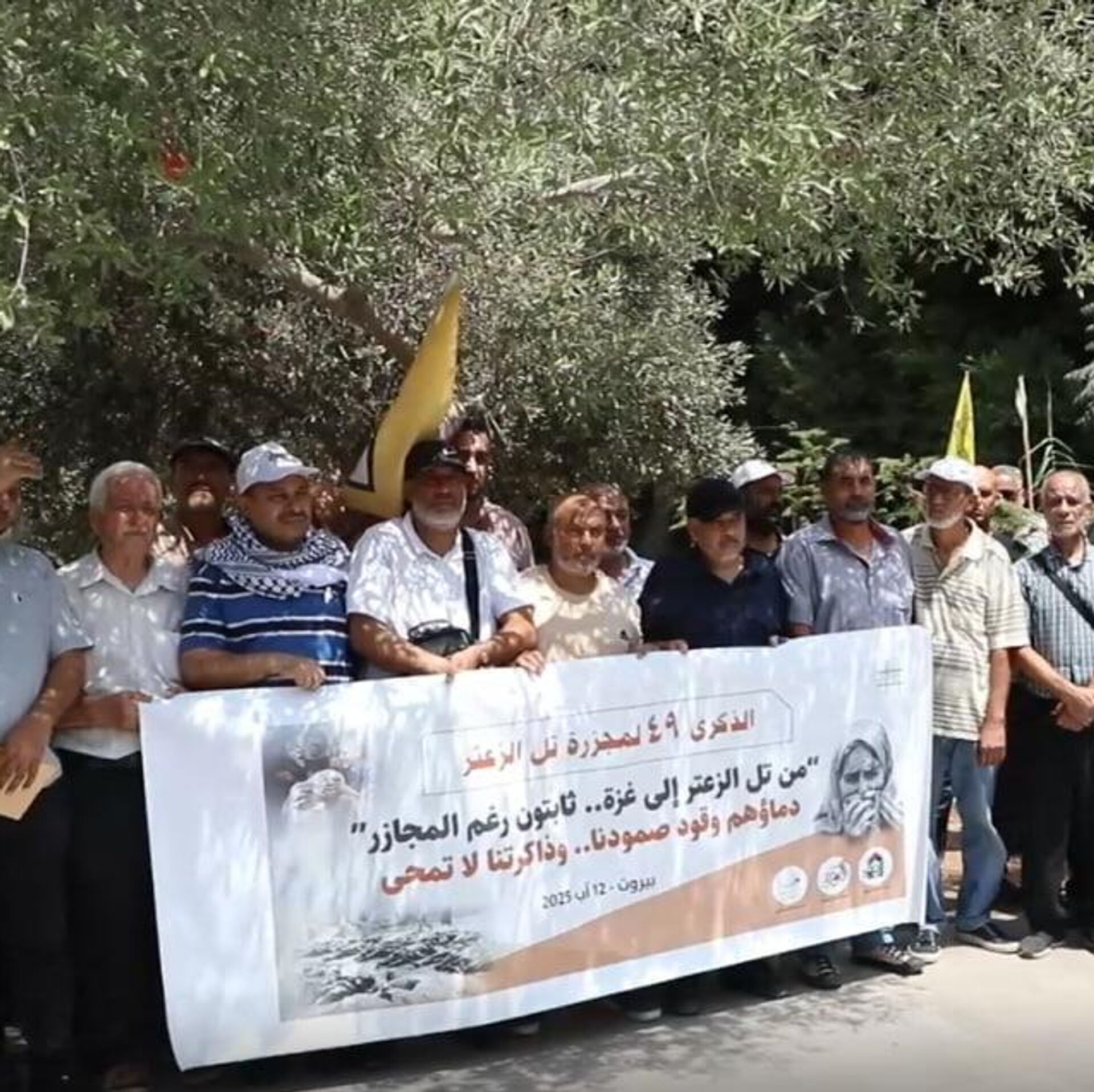 في الذكرى التاسعة والأربعين لـ"مجزرة تل الزعتر"، نُظمت وقفة شعبية أمام "مقبرة شهداء الثورة الفلسطينية" في بيروت، تحت شعار "من تل الزعتر إلى غزة.. ثابتون رغم المجازر".