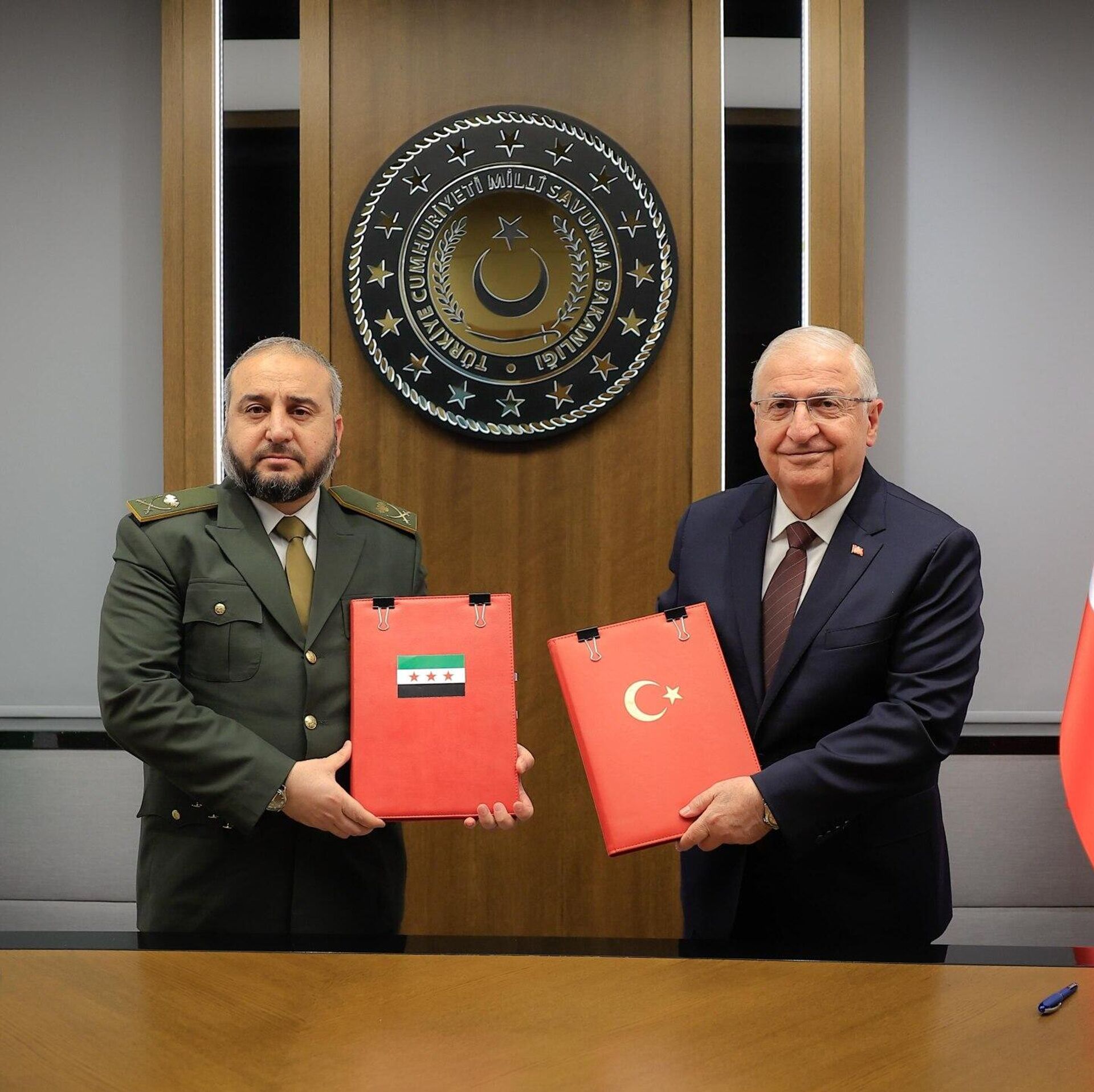 وقعت وزارتا الدفاع في سوريا وتركيا، اليوم الأربعاء، اتفاقية تعاون عسكري مشترك، تهدف إلى تطوير قدرات الجيش العربي السوري، وتحديث مؤسساته وهيكليته، ودعم عملية إصلاح قطاع الأمن بشكل شامل.