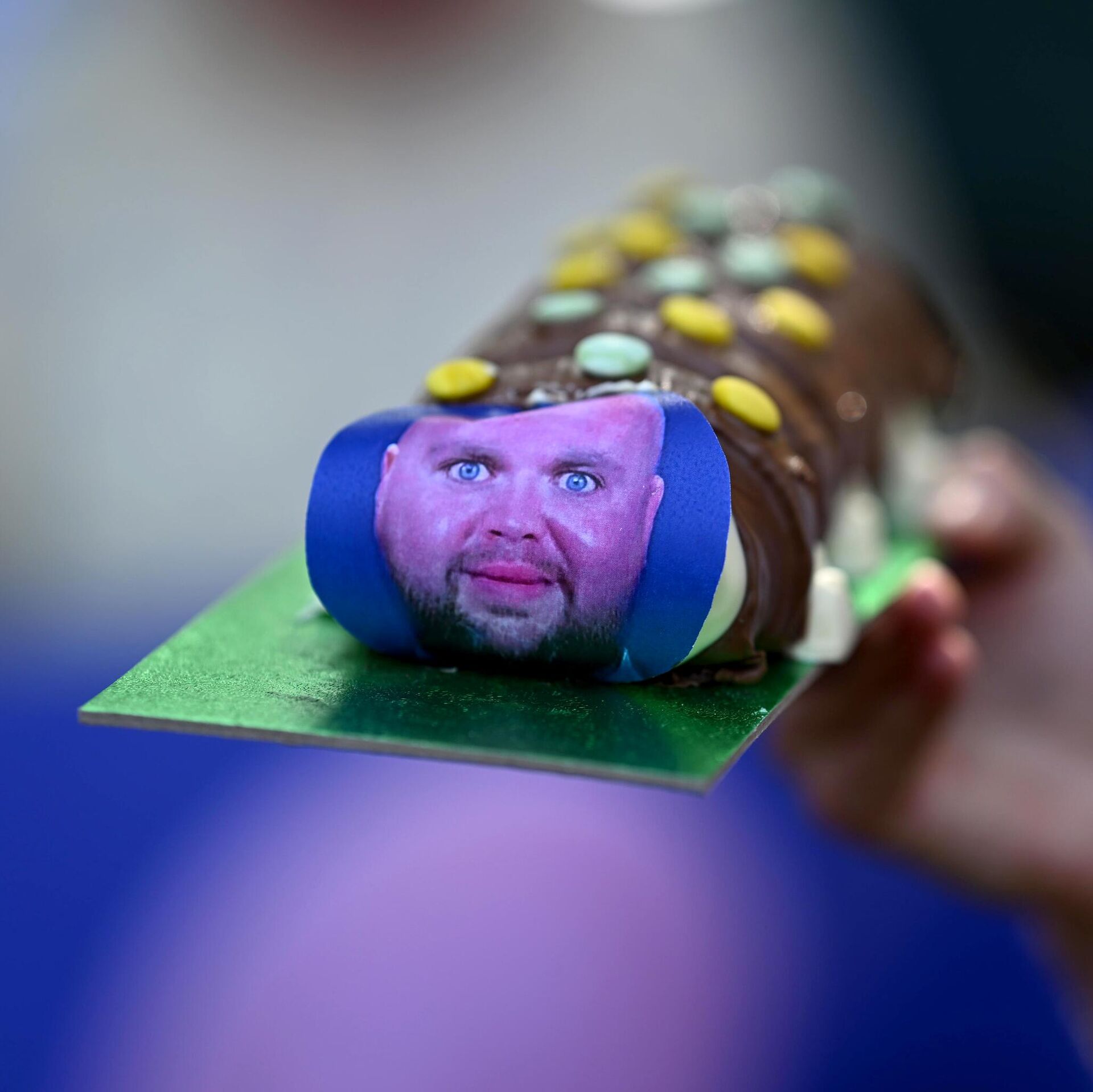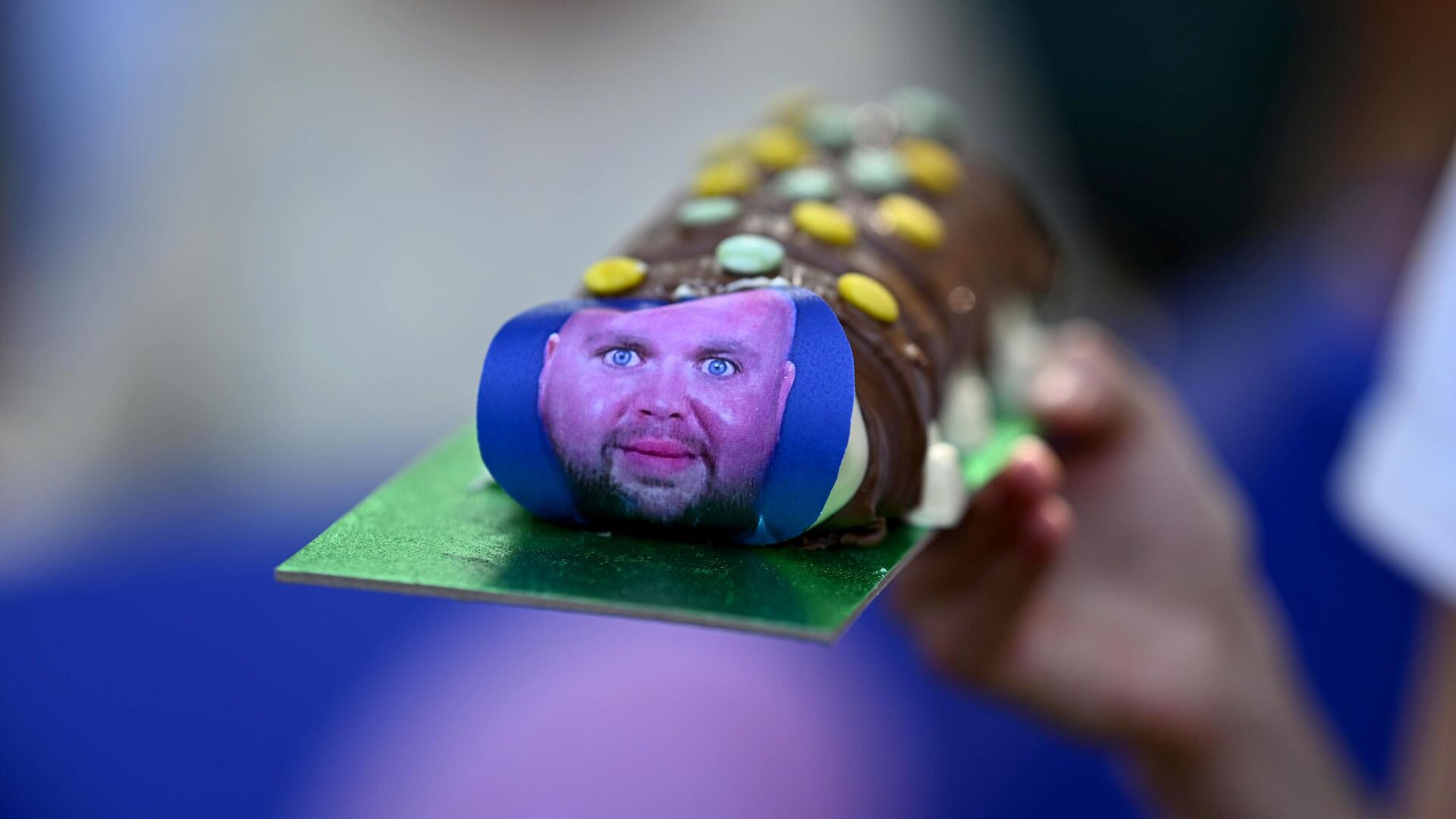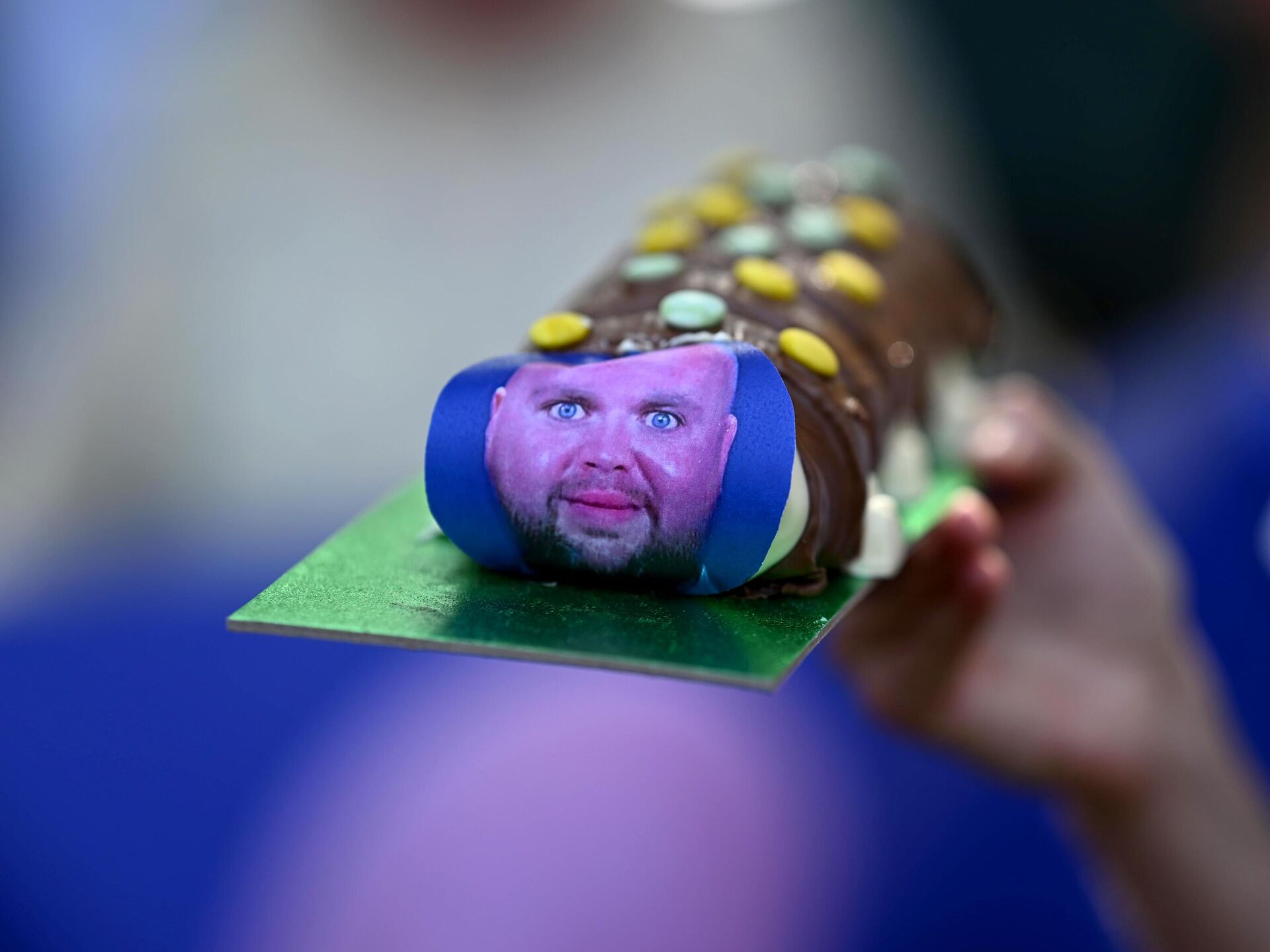 © Getty Images / Leon Neal صورة ساخرة لنائب الرئيس الأمريكي، جيه دي فانس، على كعكة خلال حفل "فانس غير مرحب به"، الذي نظمه أنصار تحالف "أوقفوا ترامب" في شارلبوري، الولايات المتحدة.