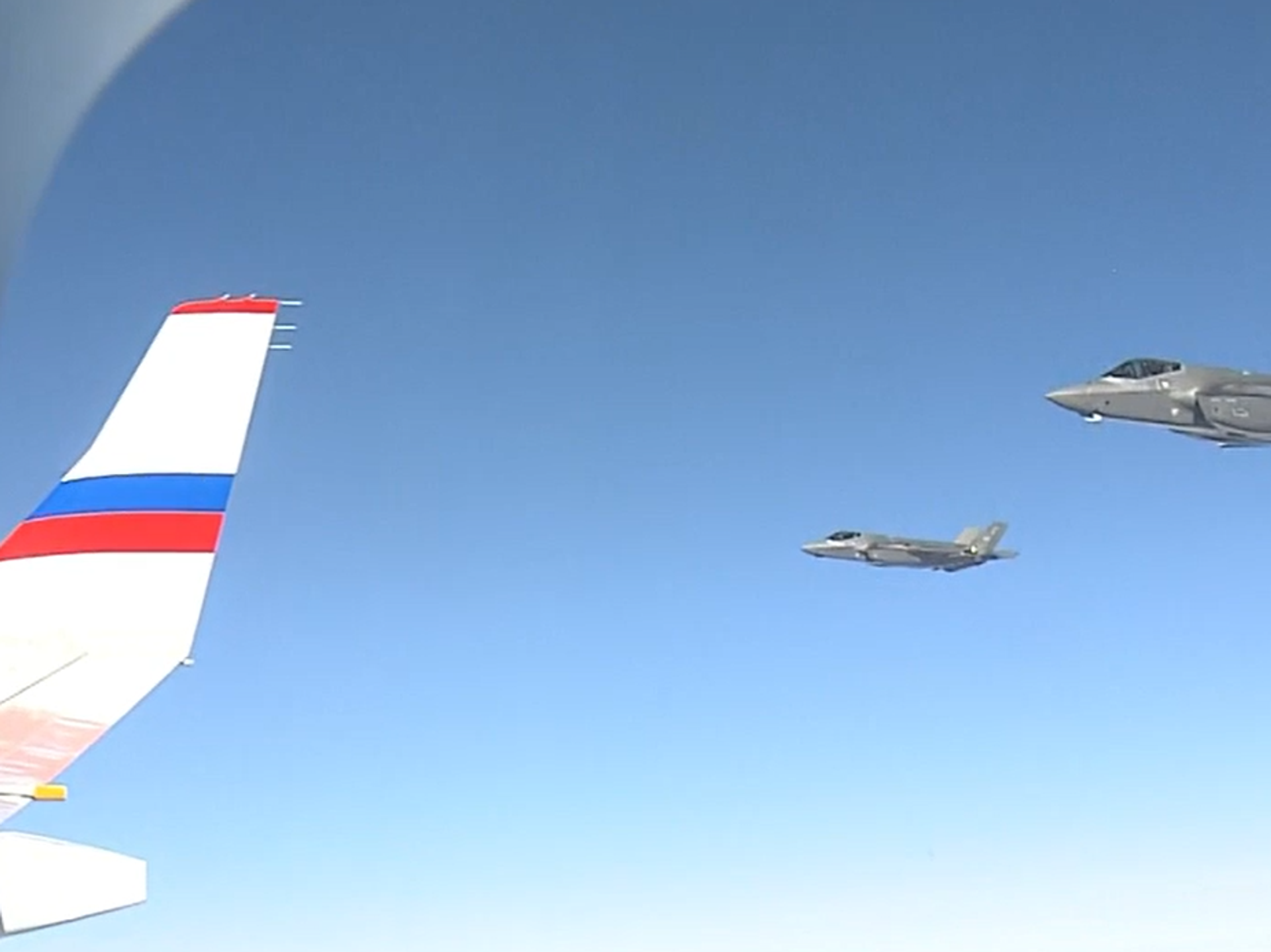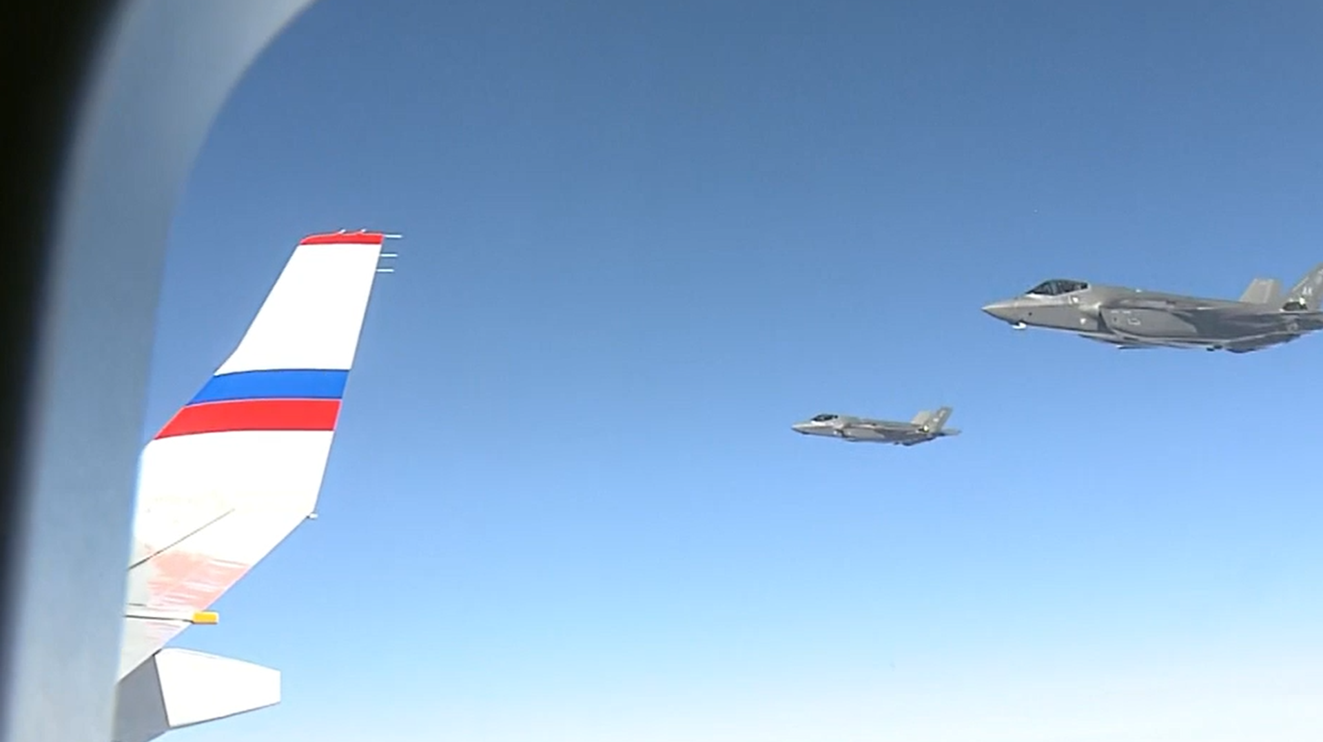 ونشر الكرملين مقطع فيديو عبر قناته على تطبيق "تلغرام"، معلقا عليه: "رافقت مقاتلات "إف-22" طائرة الرئيس الروسي في طريقها من ألاسكا إلى روسيا".