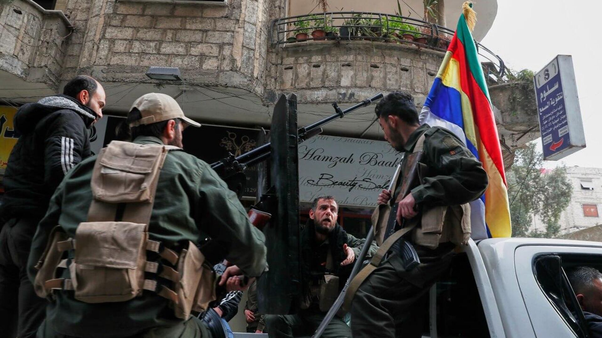 © AP Photo / Omar Sanadikiمقاتلون دروز في شوارع مدينة جرمانا، في ضواحي العاصمة دمشق، سوريا.