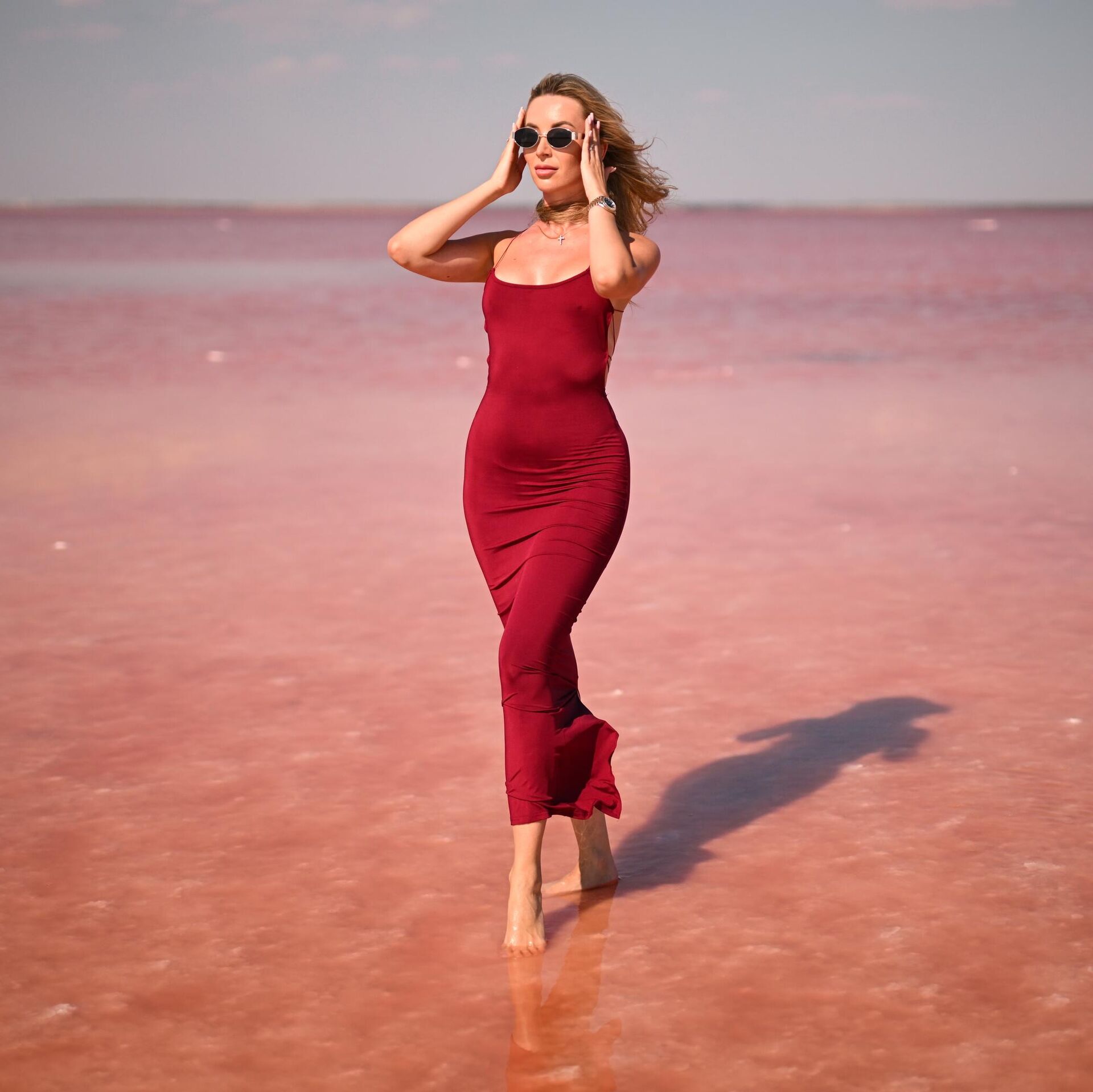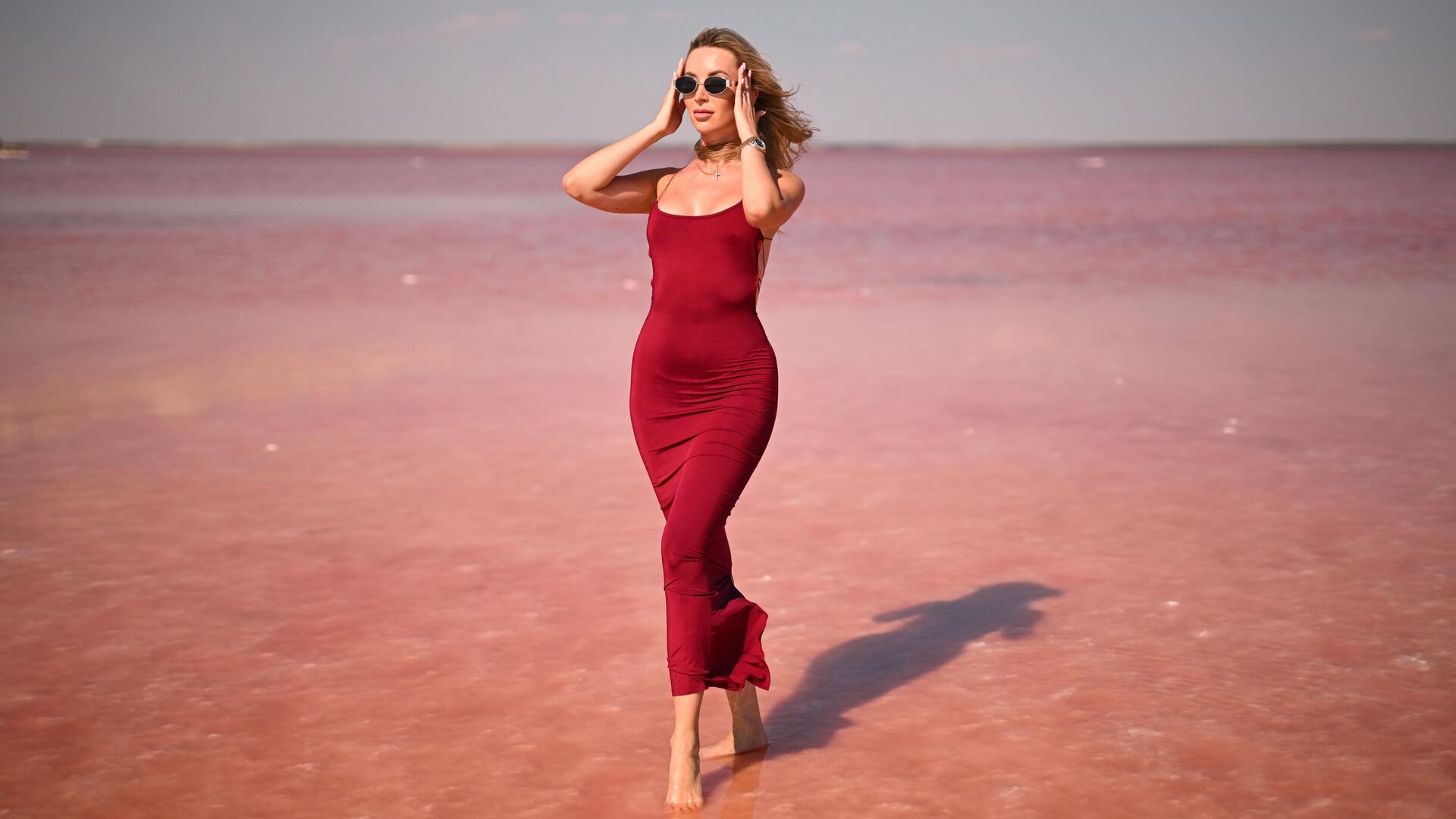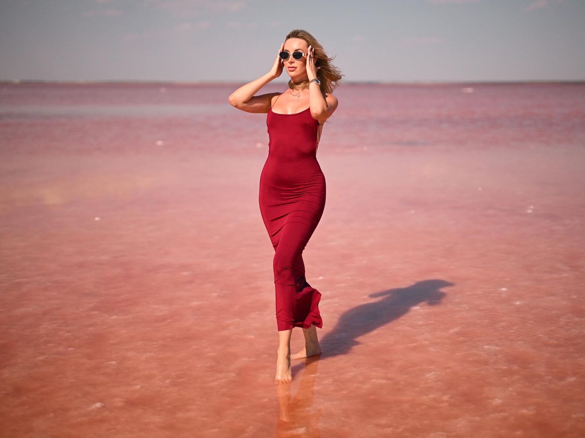 امرأة تلتقط صورة على بحيرة ساسيك سيفاش في شبه جزيرة القرم.