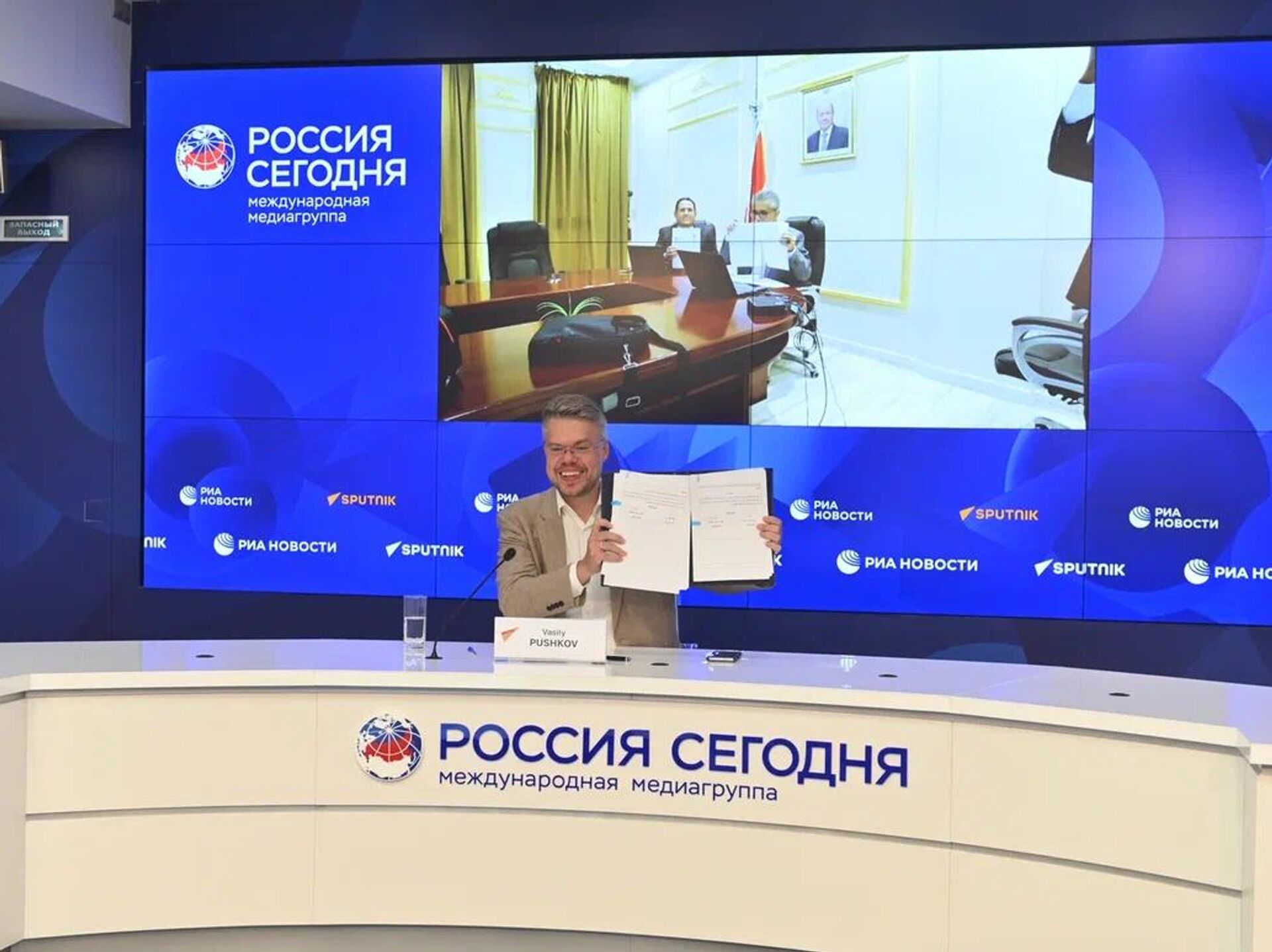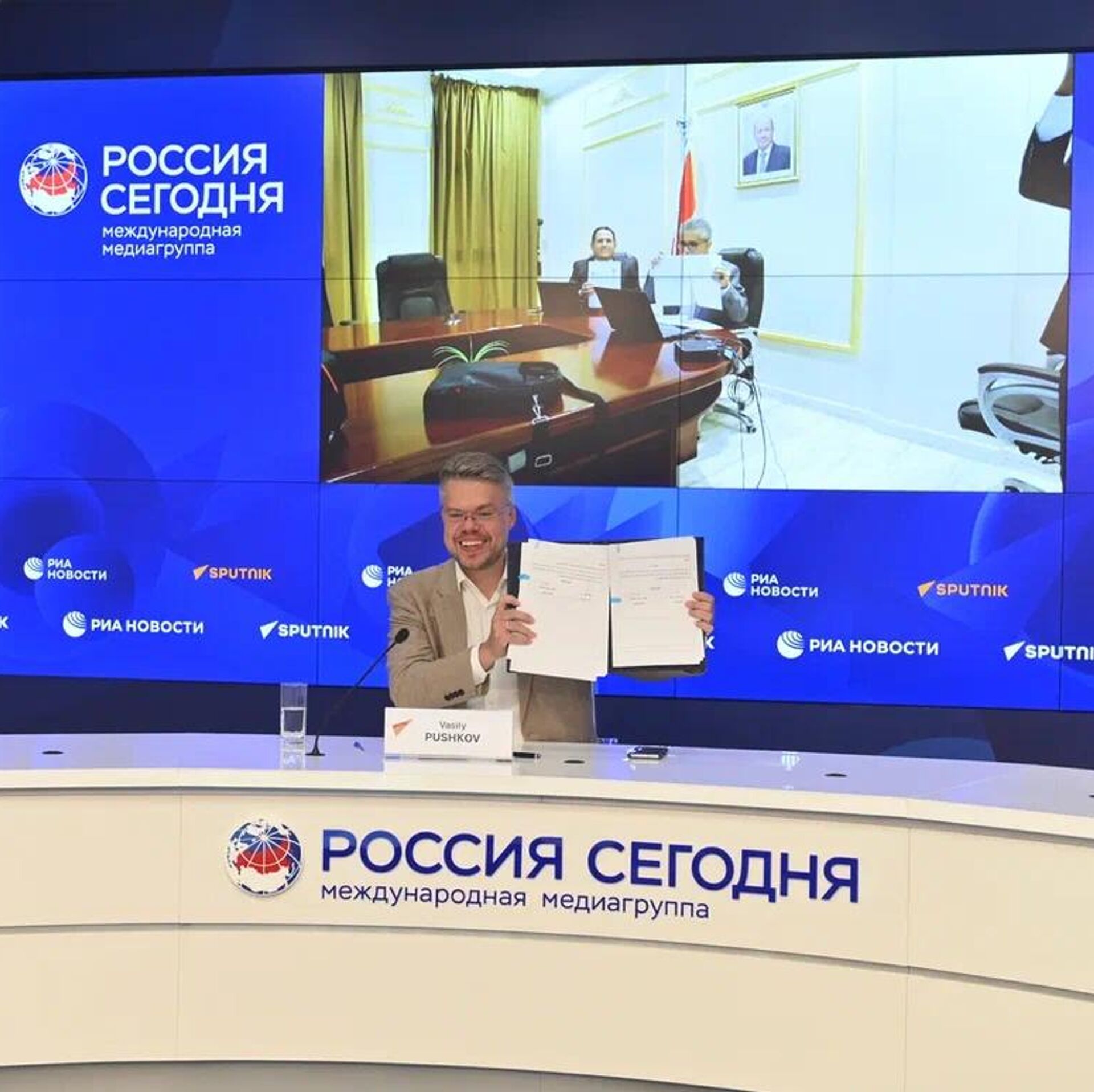 ووقع الاتفاقية عن الجانب الروسي، مدير إدراة التعاون الدولي، فاسيلي بوشكوف، وعن الجانب اليمني، المدير العام ورئيس التحرير، عبد الله حزام.