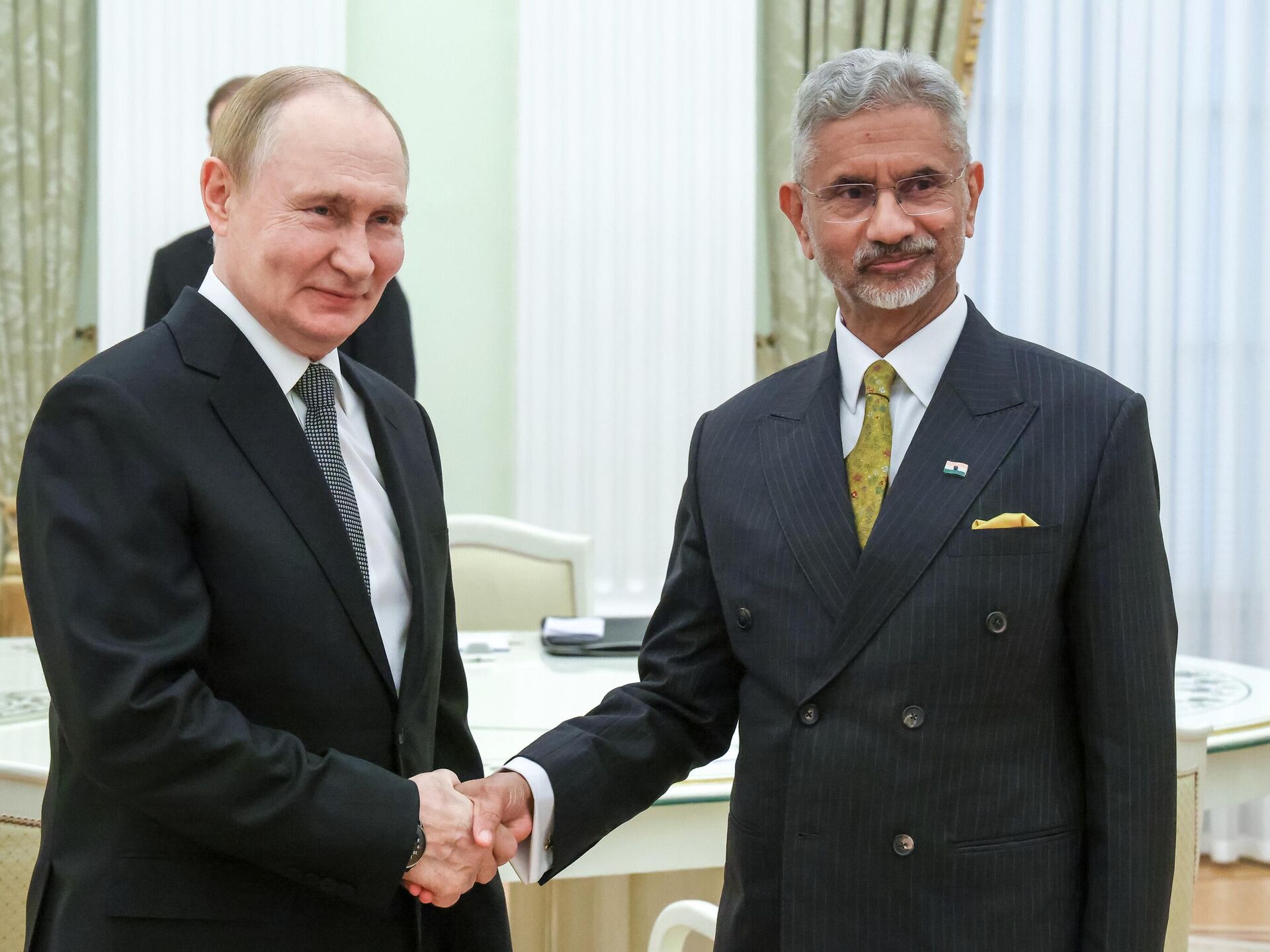وقال المكتب الصحفي للكرملين: "الرئيس الروسي فلاديمير بوتين يستقبل وزير خارجية الهند، سوبرامانيام جيشانكار، في الكرملين".