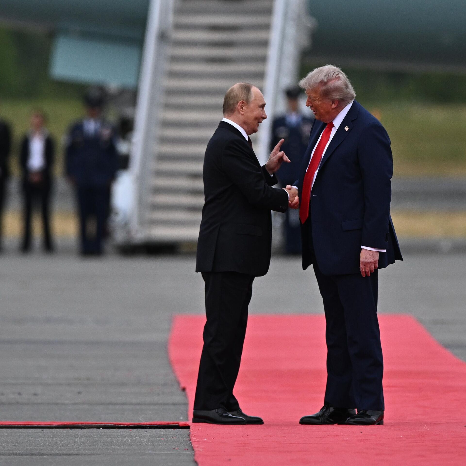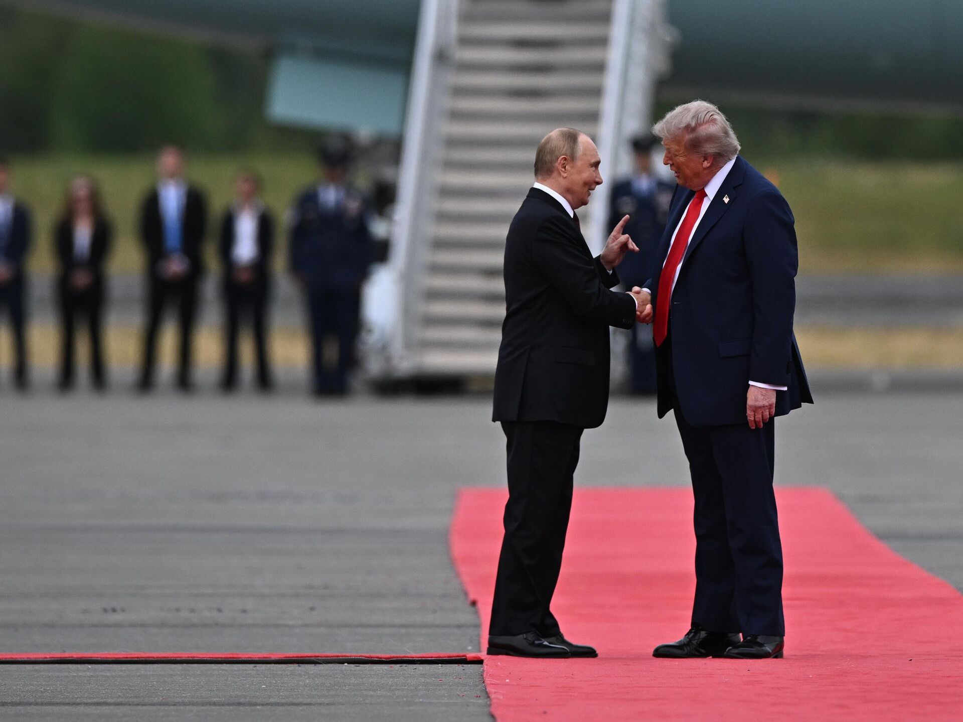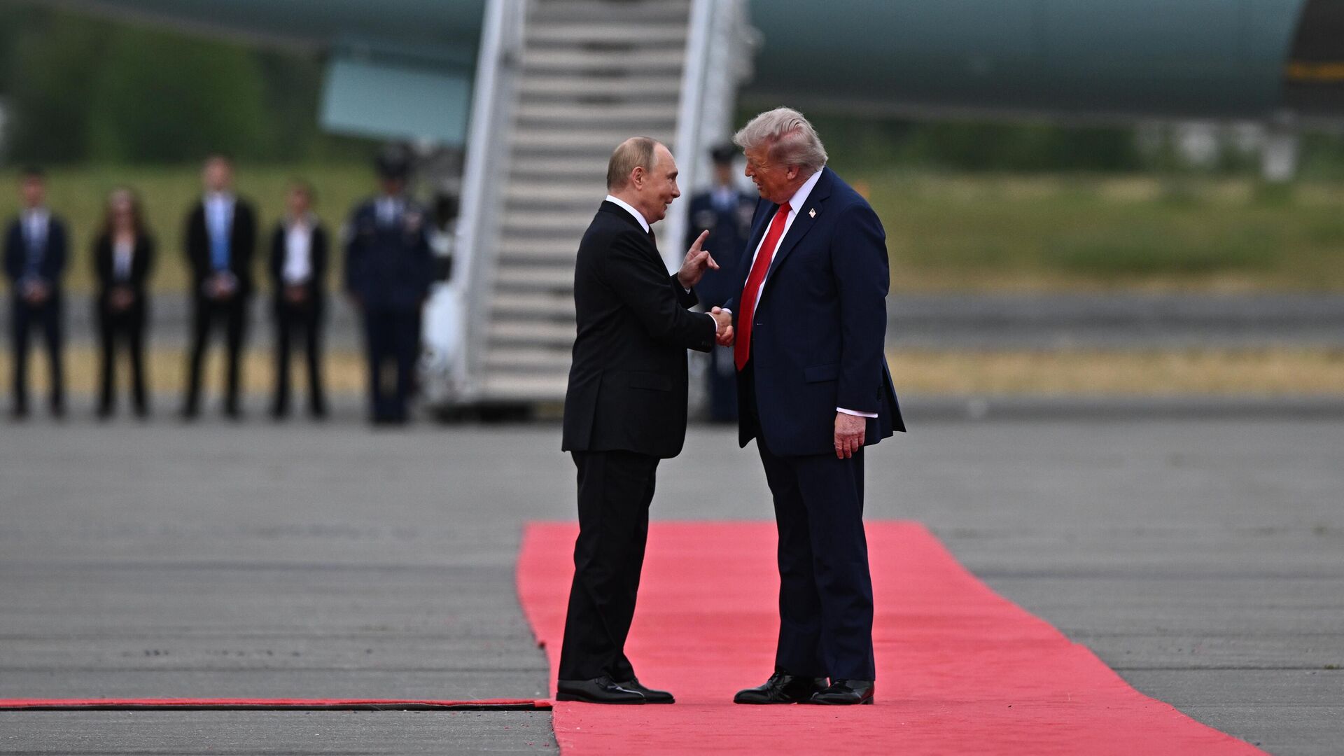 لقطة طريفة بين الرئيس الروسي فلاديمير بوتين، والرئيس الأمريكي دونالد ترامب، خلال اجتماع في قاعدة "إلمندورف - ريتشاردسون" العسكرية في ألاسكا