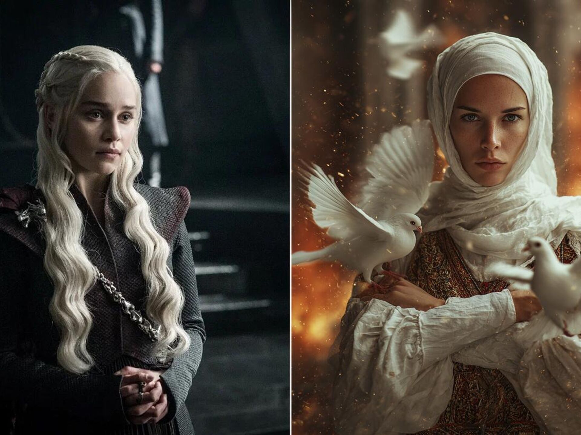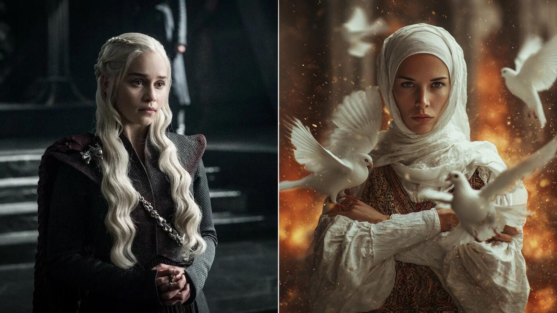 دينيريس تارغريان من مسلسل "صراع العروش". صورتها كحاكمة ذكية، ماكرة، وقاسية، تصعد إلى السلطة، تشبه بشكل مدهش مصير الأميرة أولغا، أول حاكمة لروسيا القديمة. تروي الأساطير كيف انتقمت لمقتل زوجها بمكر ووحشية، ثم أجرت أول إصلاح مالي في تاريخ روسيا.