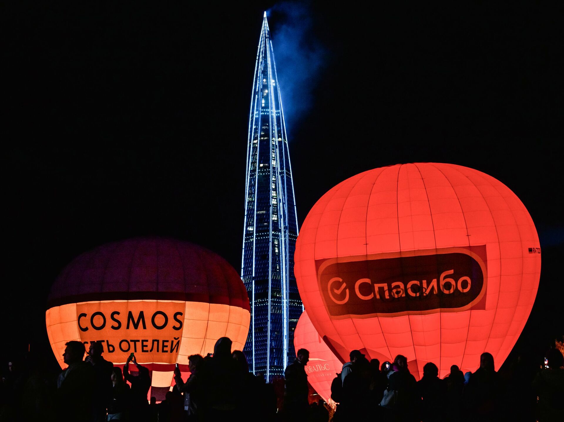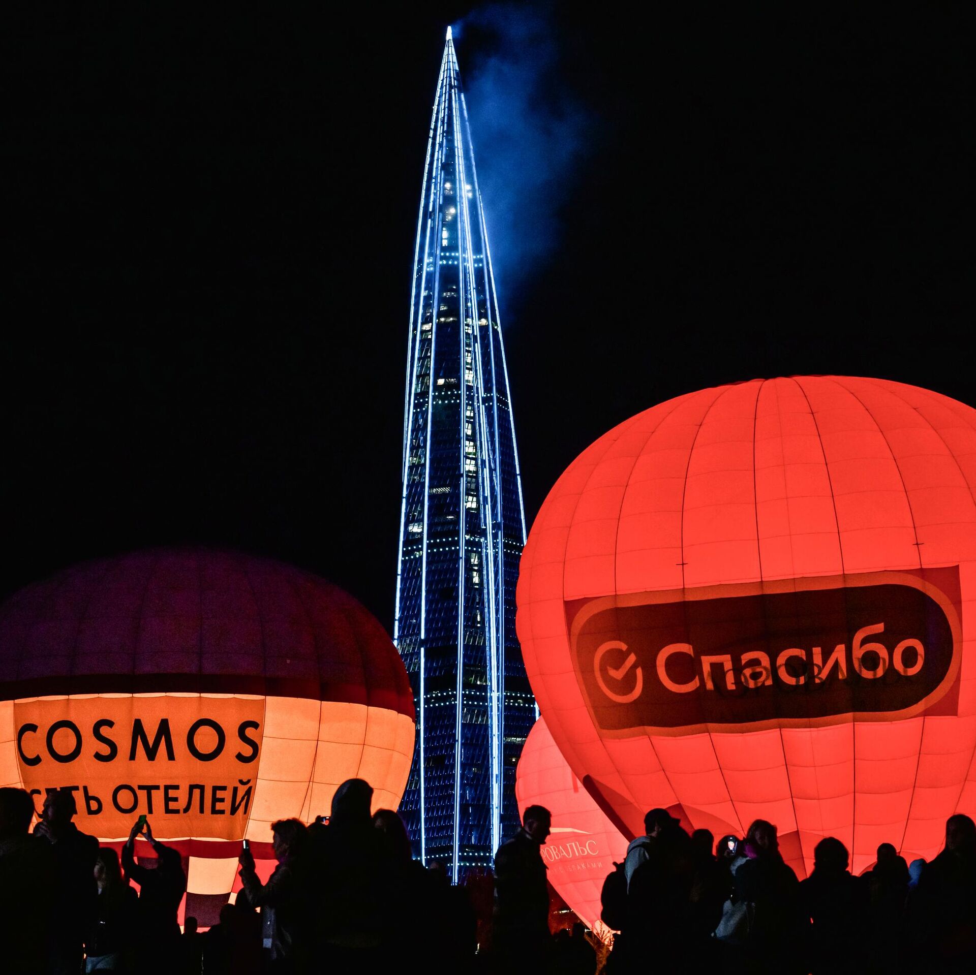 تشارك فرق مناطيد الهواء الساخن في عرض ضوئي تضيء فيه مناطيد الهواء الساخن سماء المساء في مهرجان "احلم! حلق!"، وذلك بمناسبة الذكرى السنوية الـ 300 لتأسيس حديقة سانت بطرسبرغ.