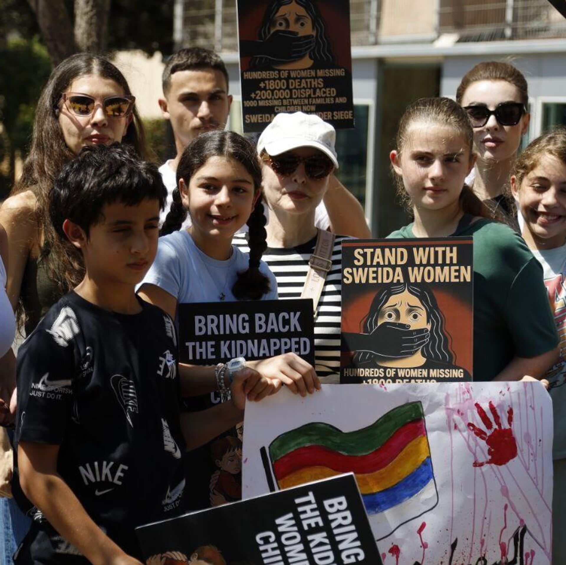 نفذ عشرات الناشطين وقفة تضامنية أمام مقر الأمم المتحدة "الإسكوا" في بيروت، اليوم الثلاثاء، للمطالبة بفك الحصار عن محافظة السويداء، وفتح ممرات إنسانية، إضافة إلى إعادة المخطوفين ومحاسبة المسؤولين عن الجرائم المرتكبة.